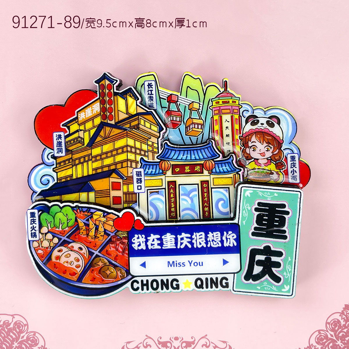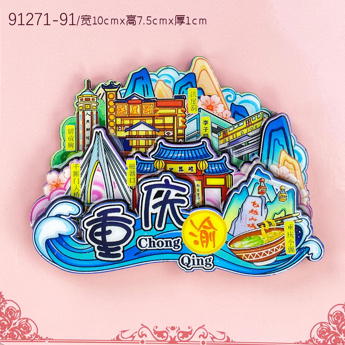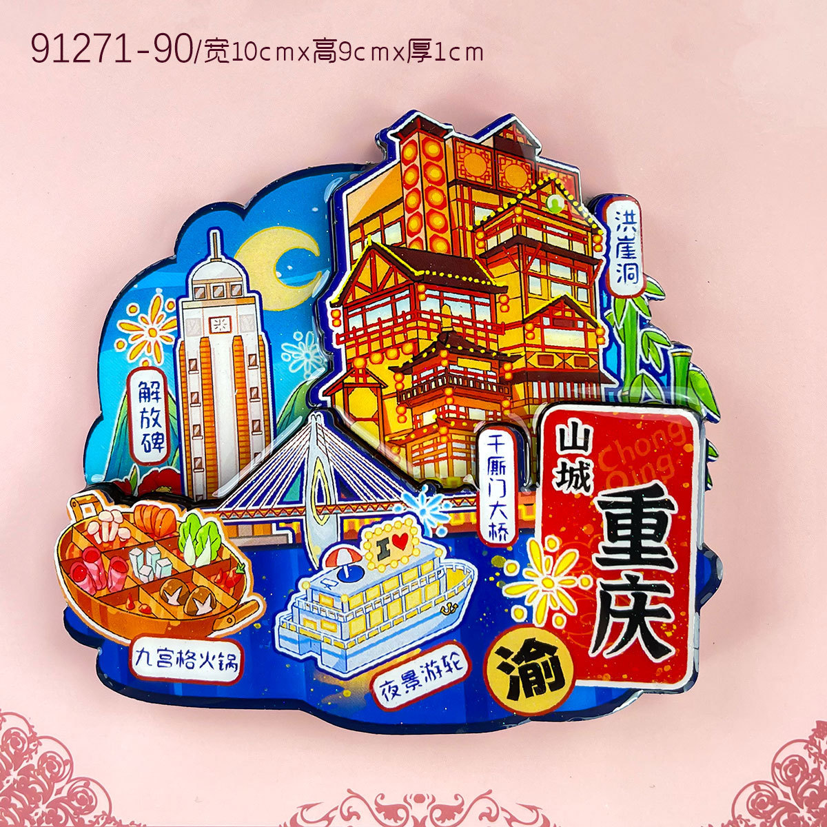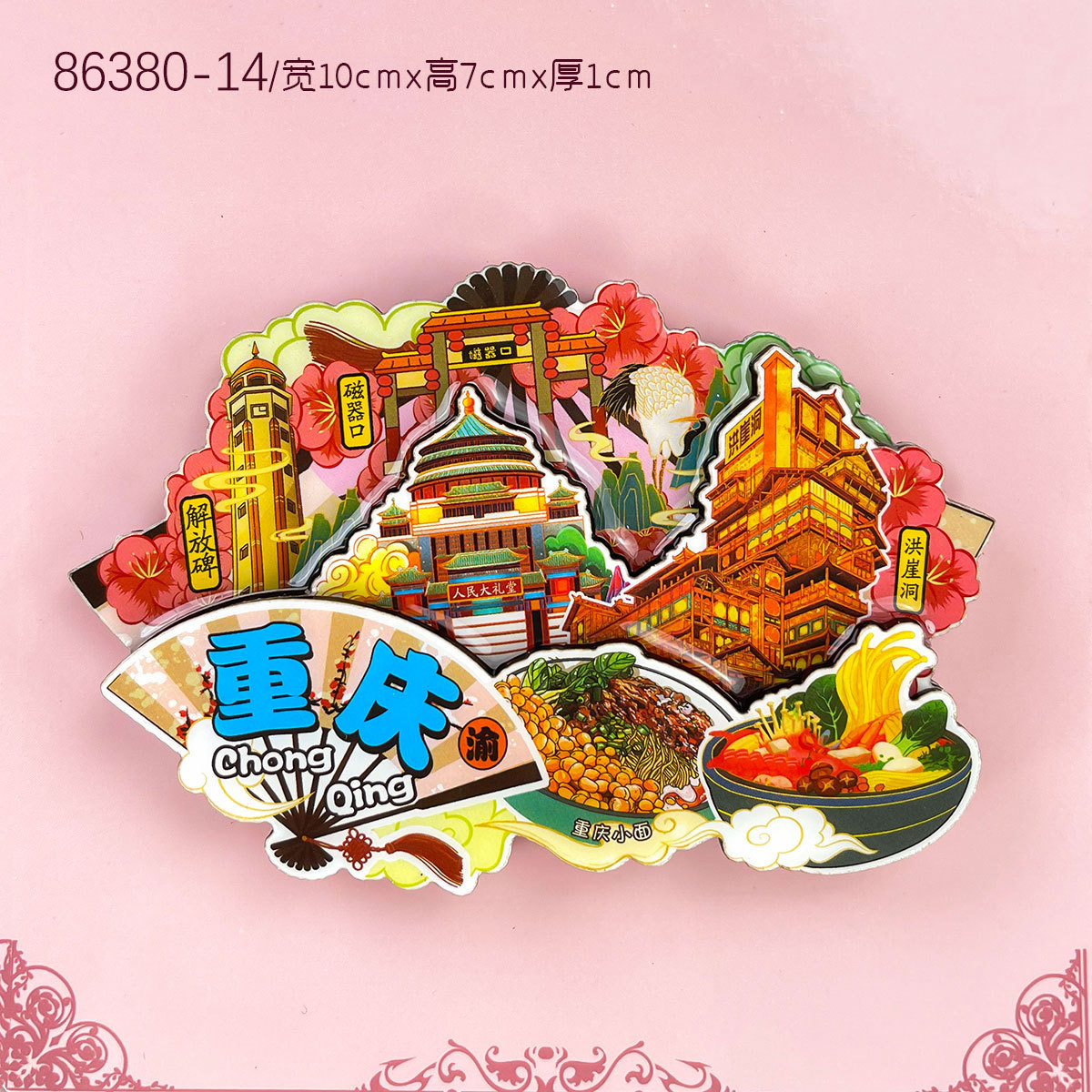 Чунцин Серия деревянных текстильных трехмерных магнитных холодильников наклеить креативный городской туристический сувенир холодильник наклеить оптом