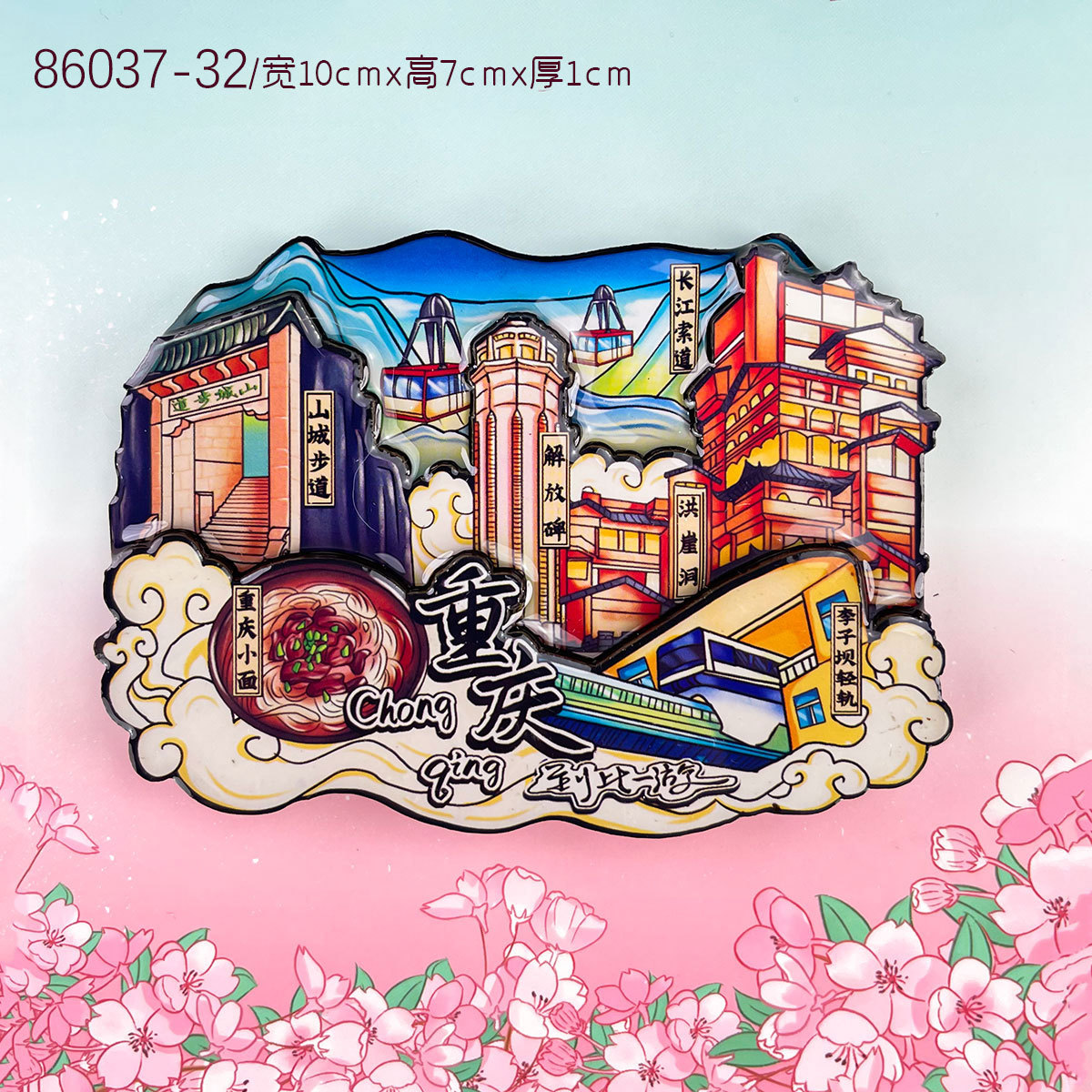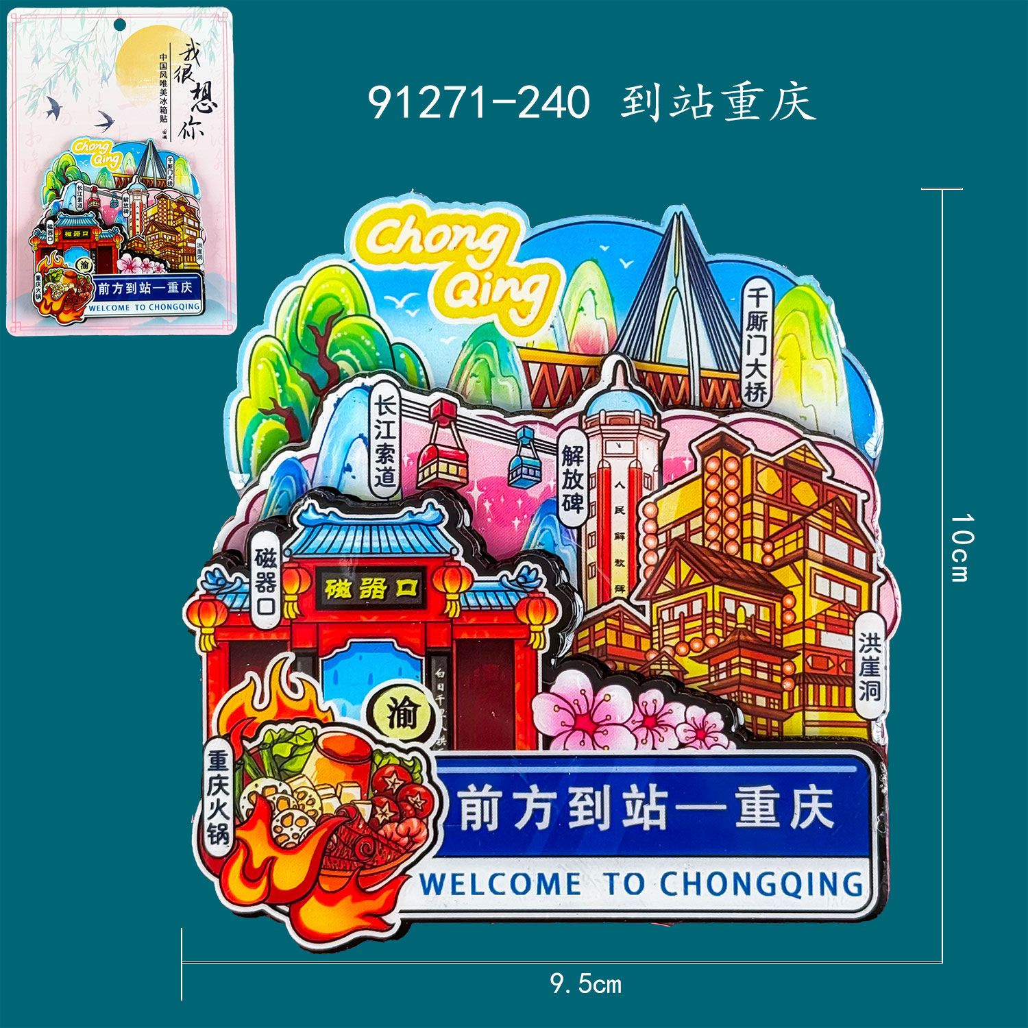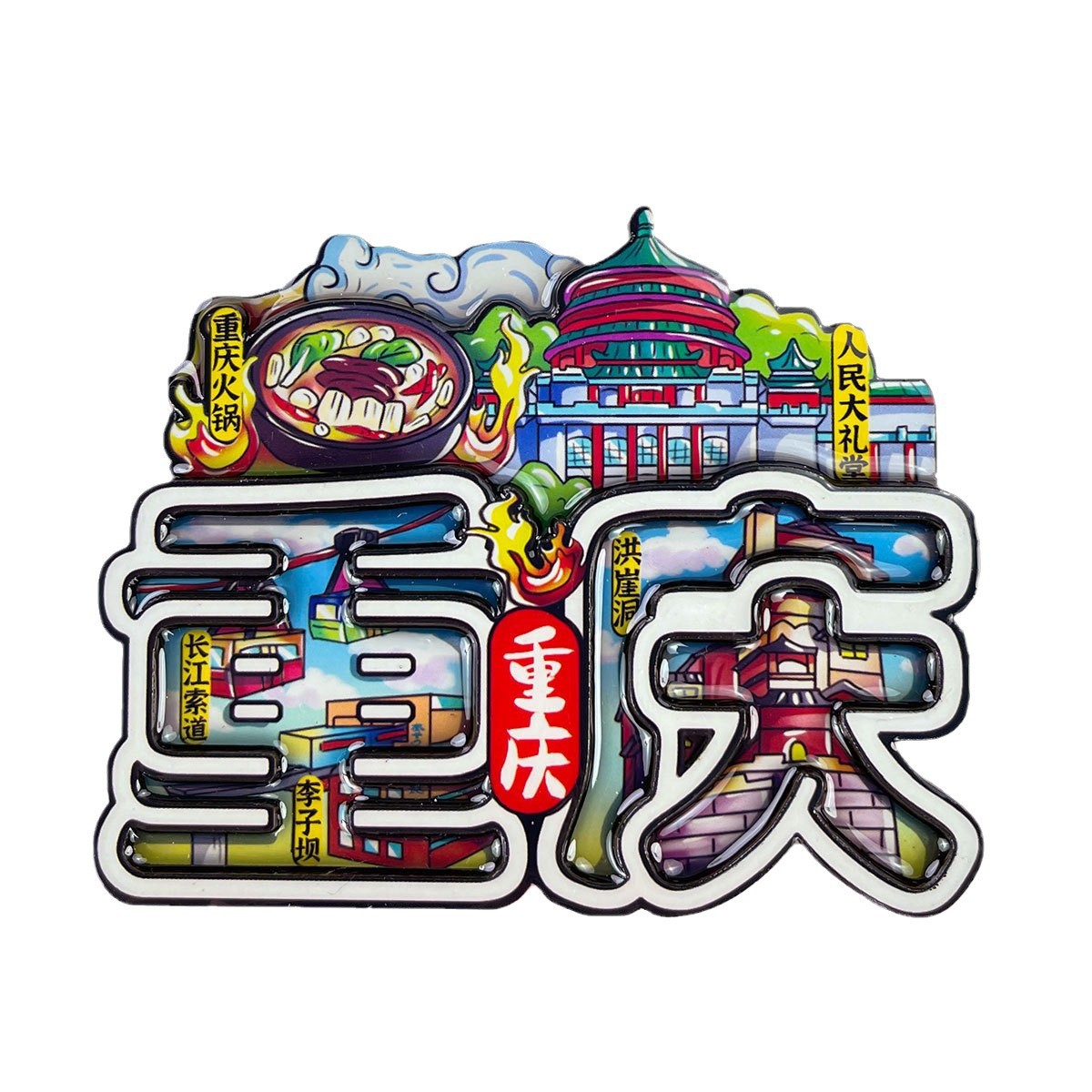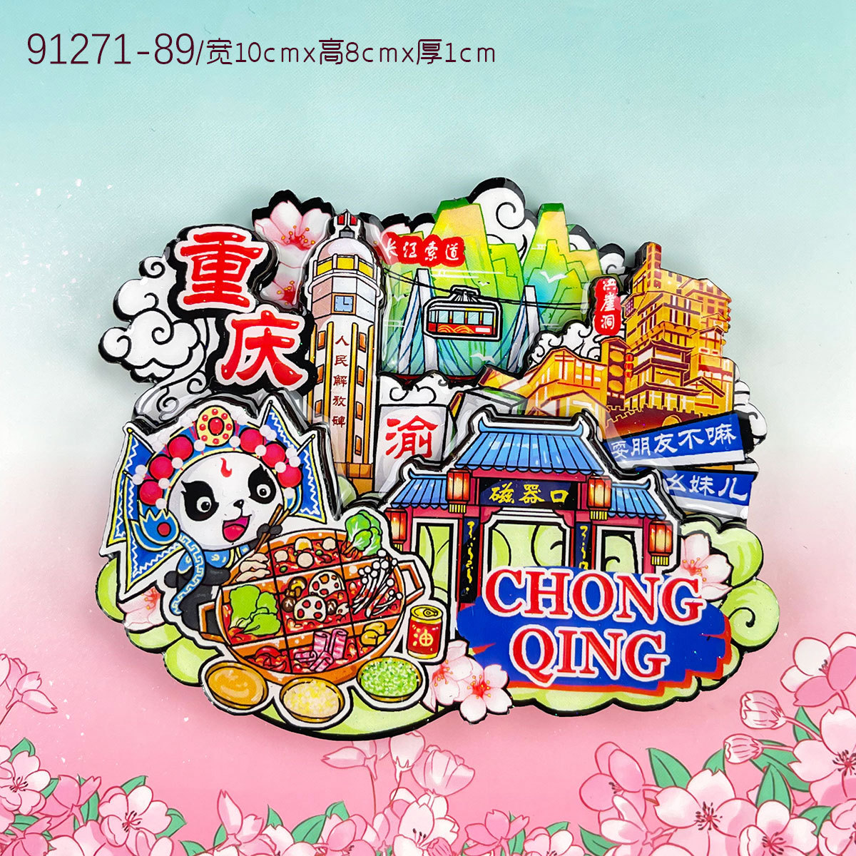Чунцин Серия деревянных текстильных трехмерных магнитных холодильников наклеить креативный городской туристический сувенир холодильник наклеить оптом