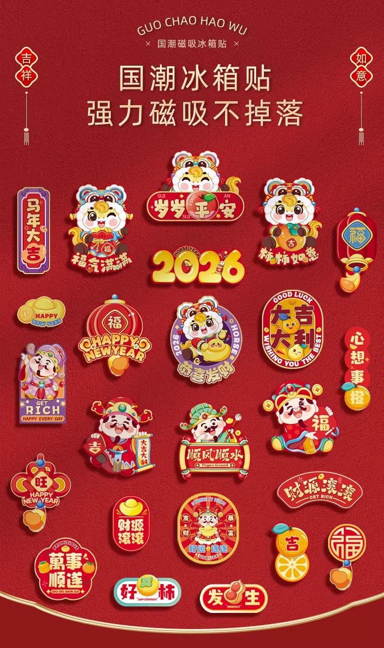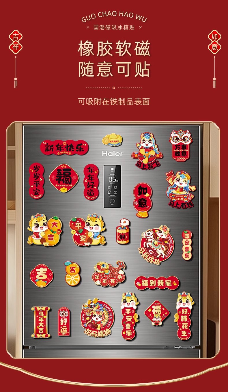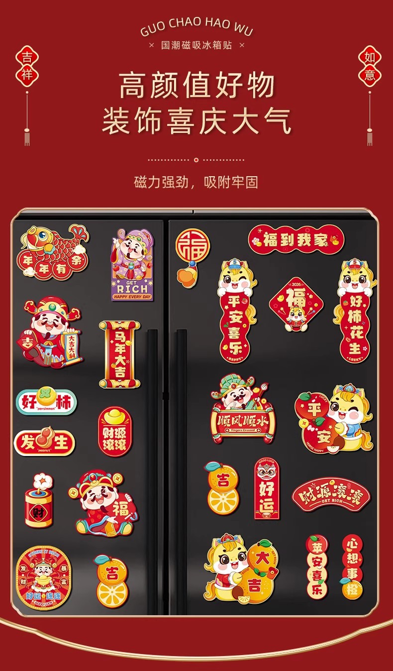 新款磁吸冰箱贴2026创意过年磁吸冰箱门贴福字贴过年布置装饰用品