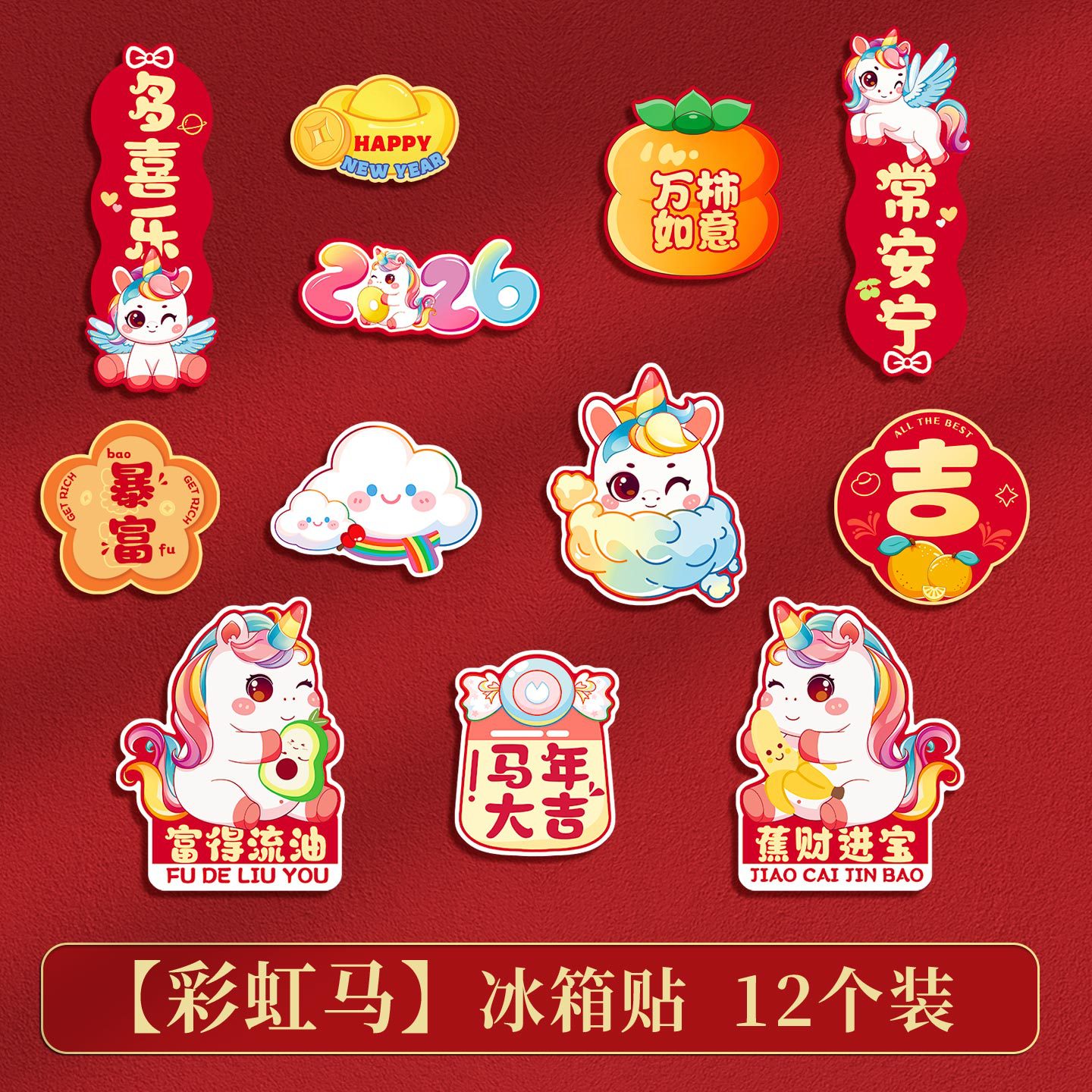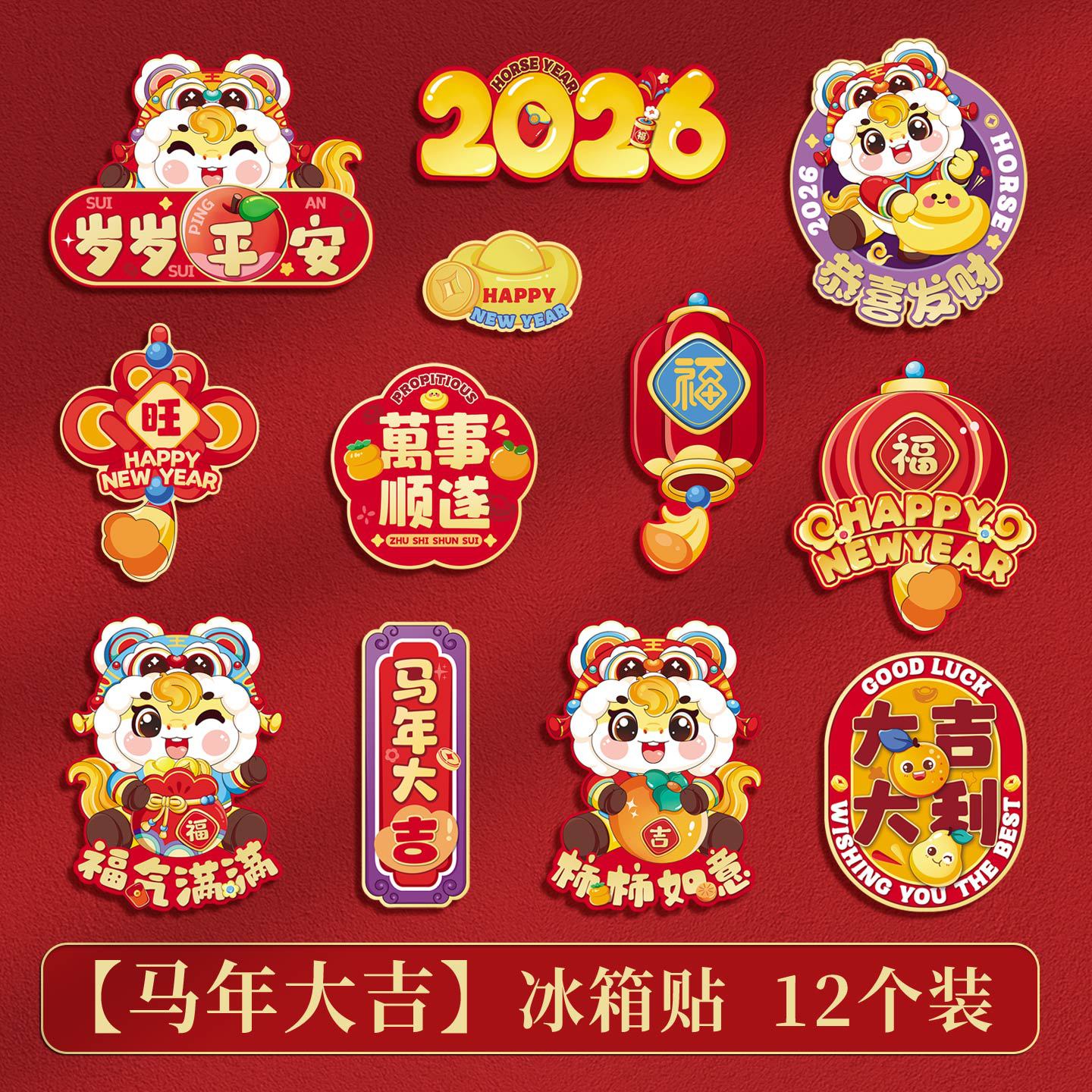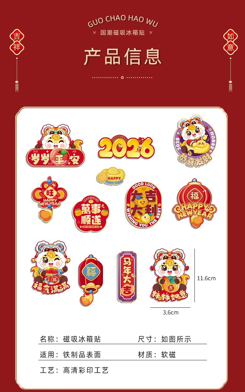 新款磁吸冰箱贴2026创意过年磁吸冰箱门贴福字贴过年布置装饰用品