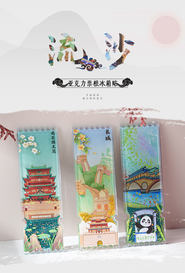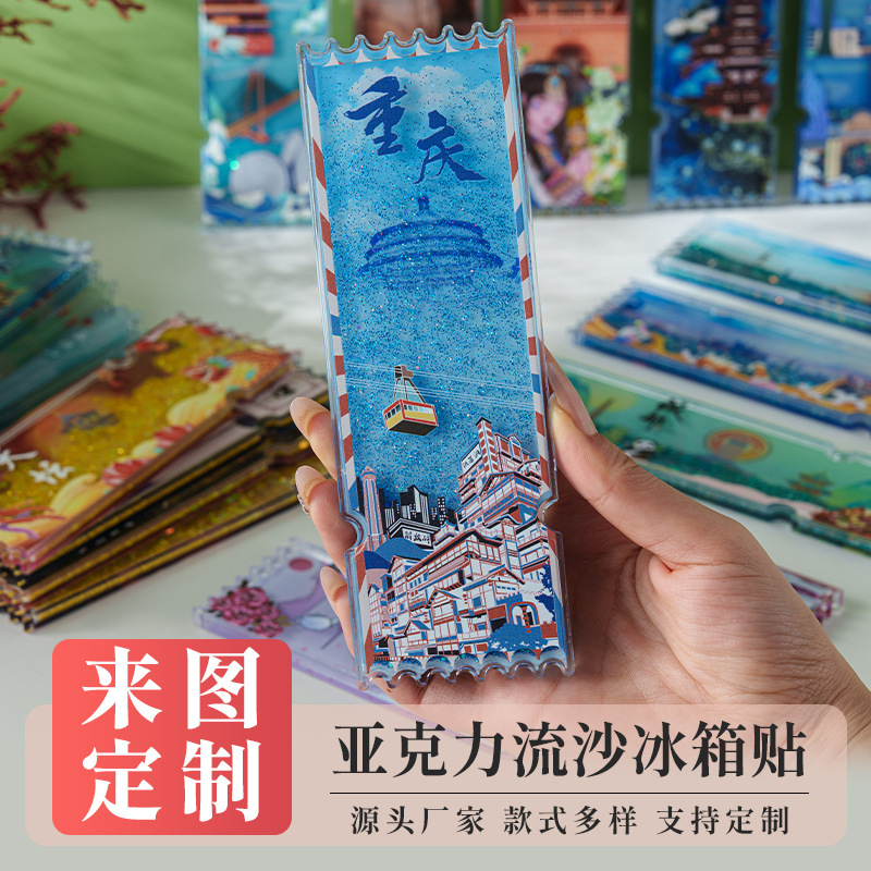Городские достопримечательности Акрил Пещерный песок Холодильник Настройка Пещерный песок Капли Холодильник