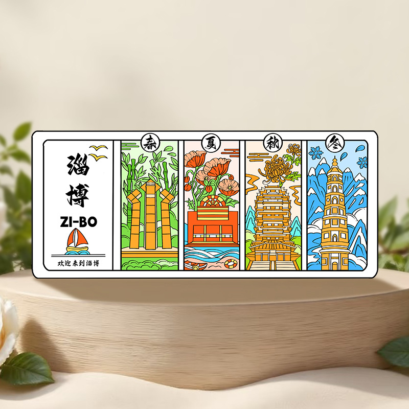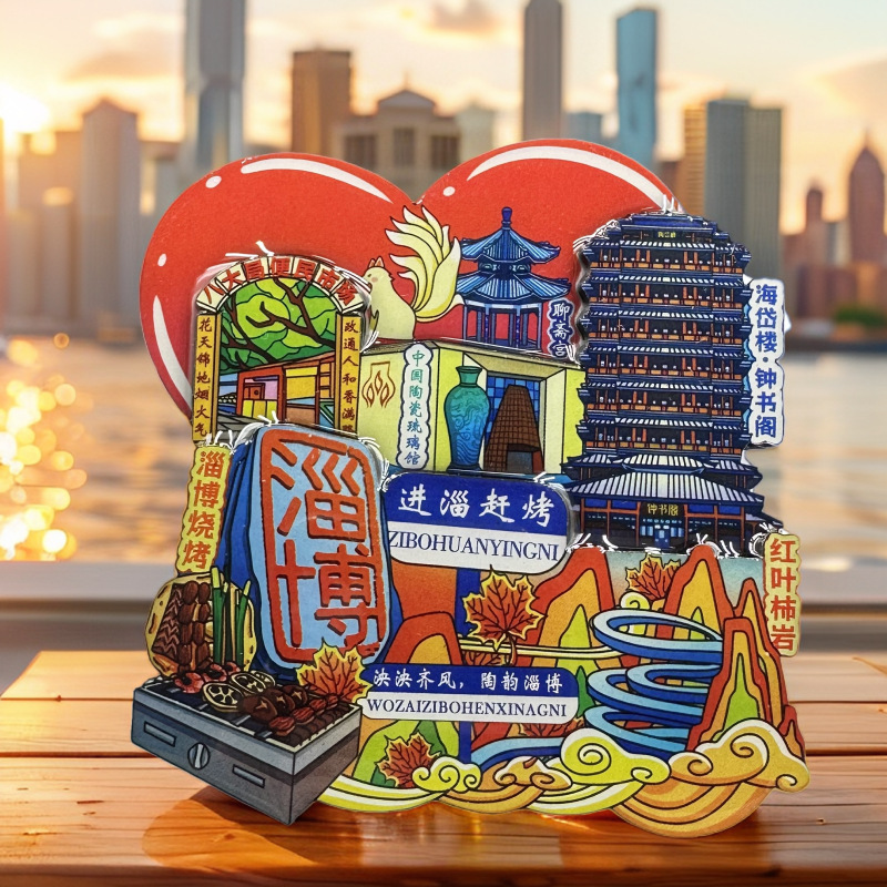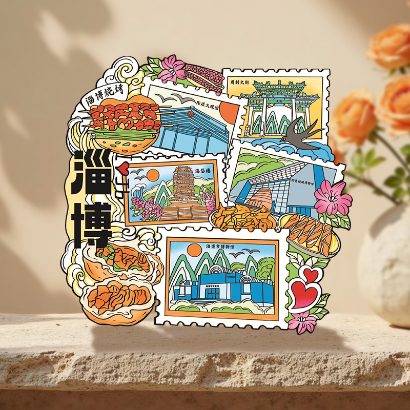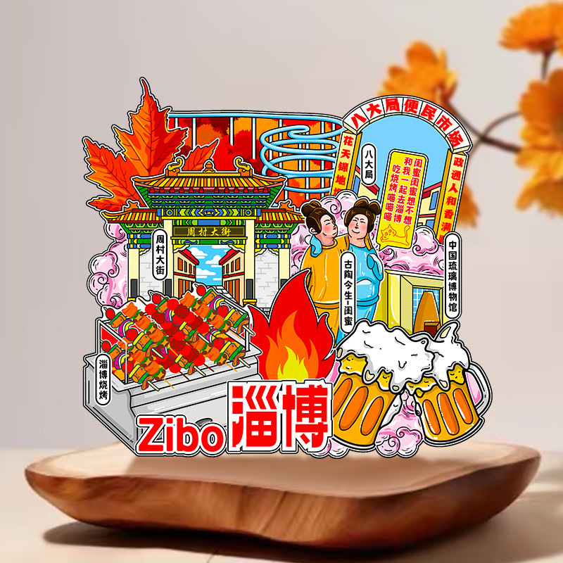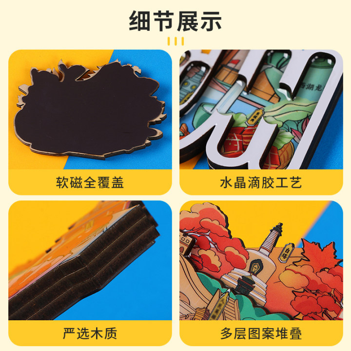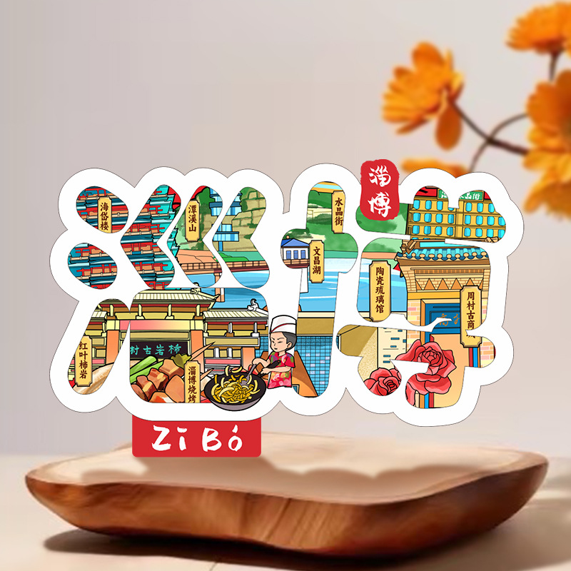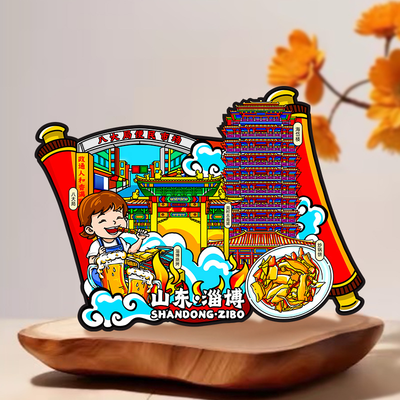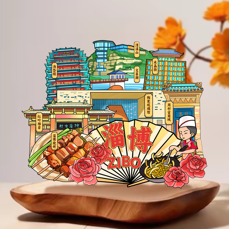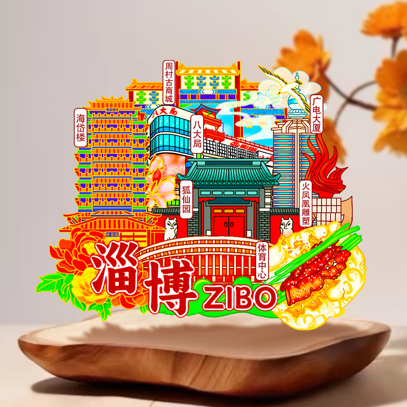 Zibo refrigerator stickers, city attractions, wooden magnetic refrigerator stickers, Shandong tourism, cultural and creative souvenirs, wholesale of handicrafts