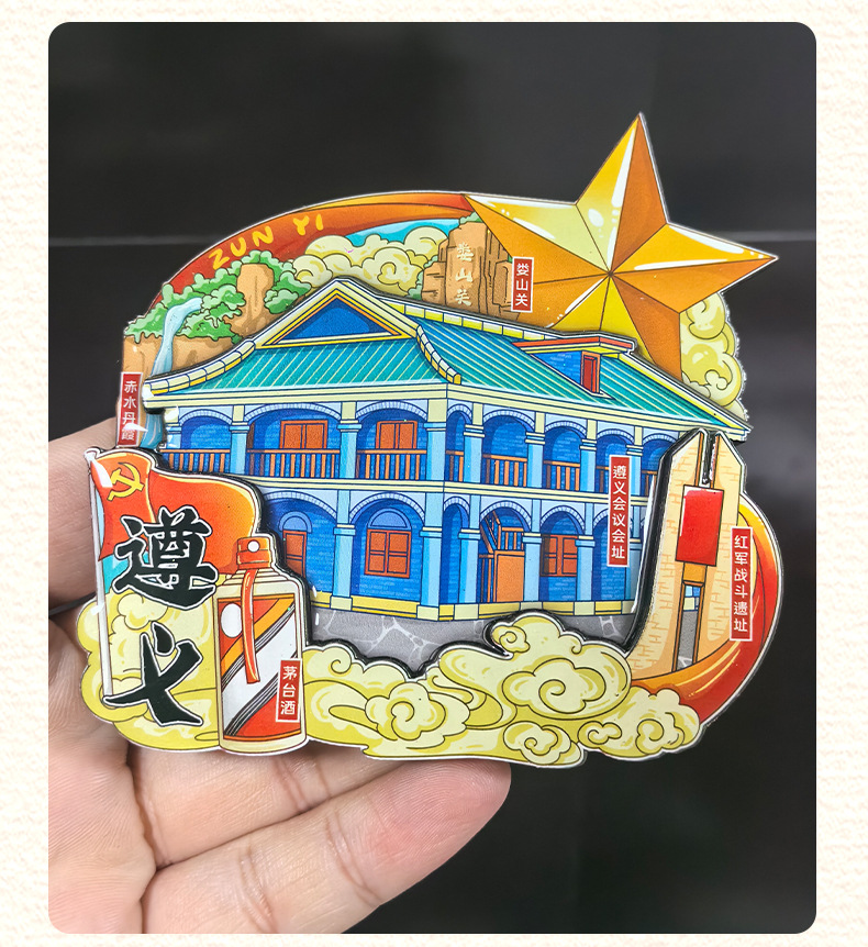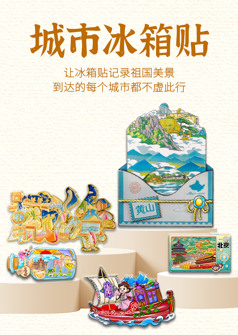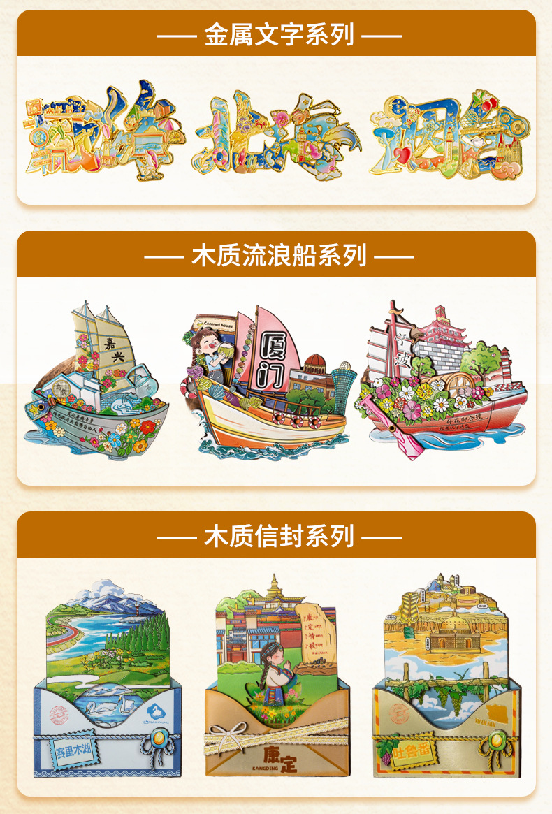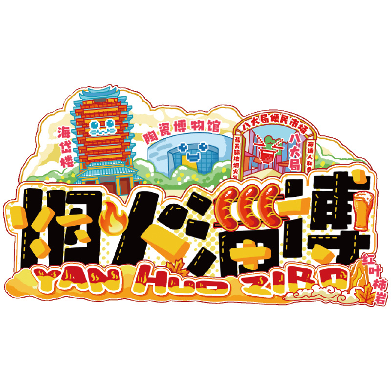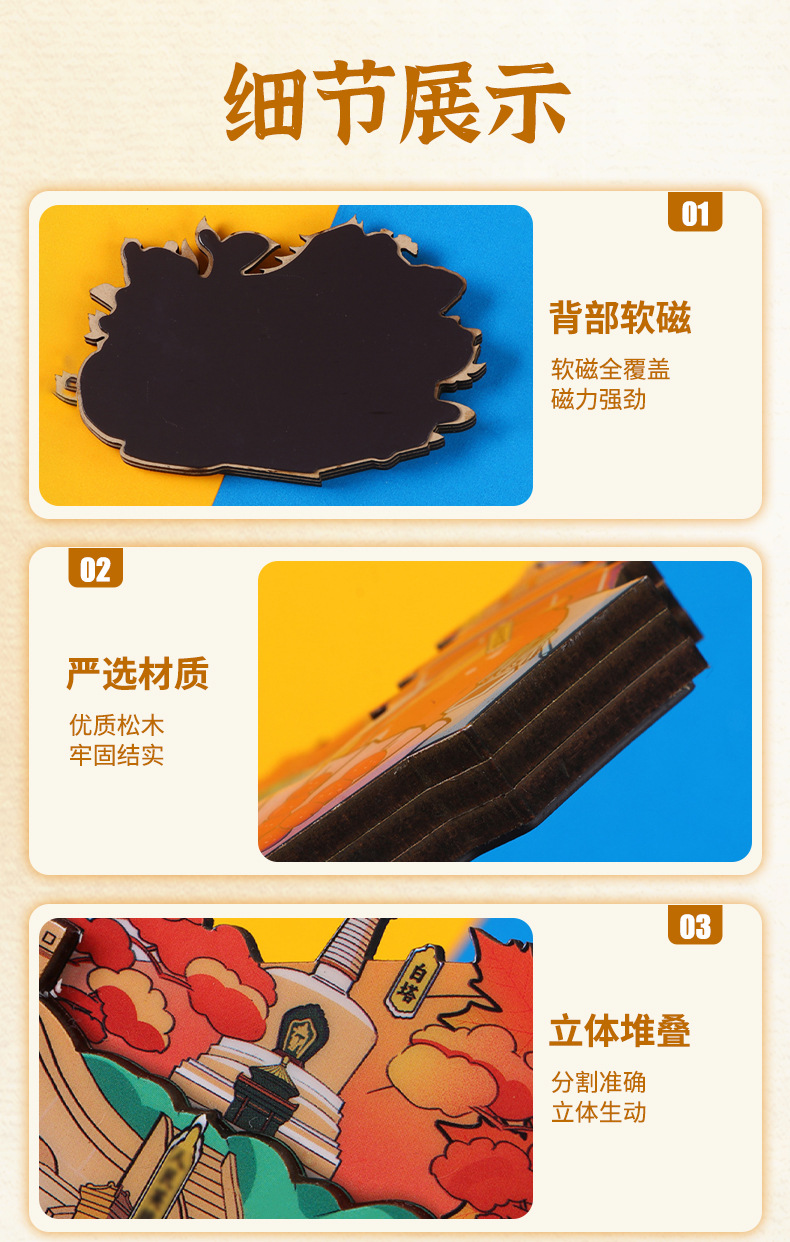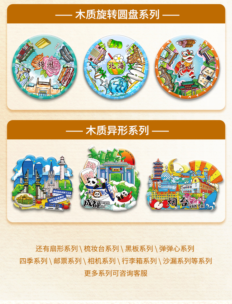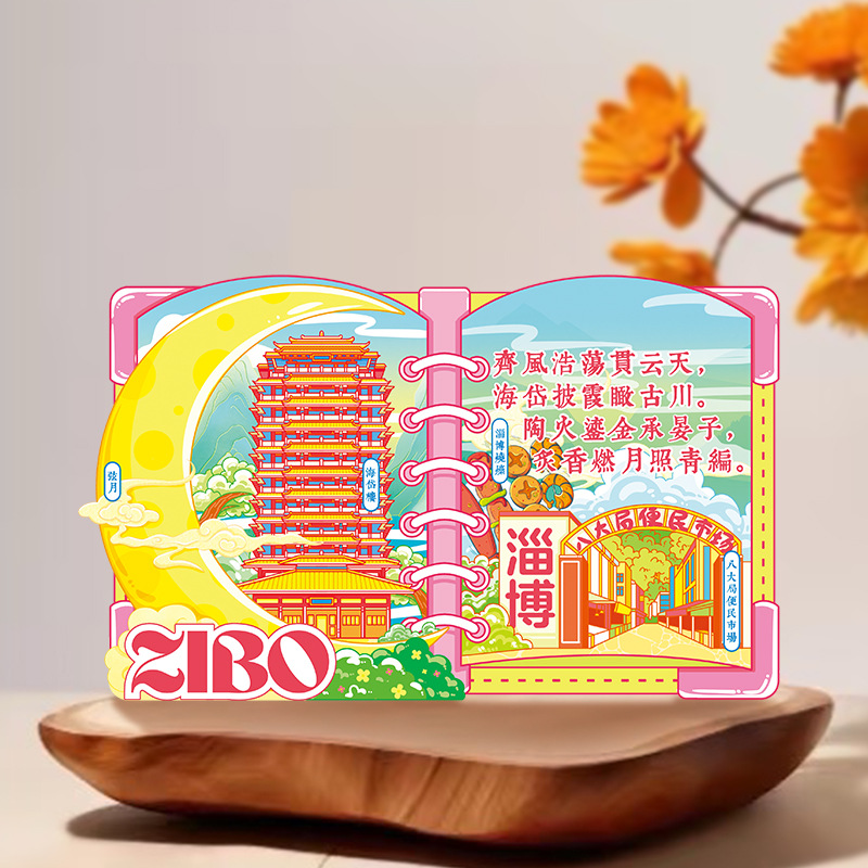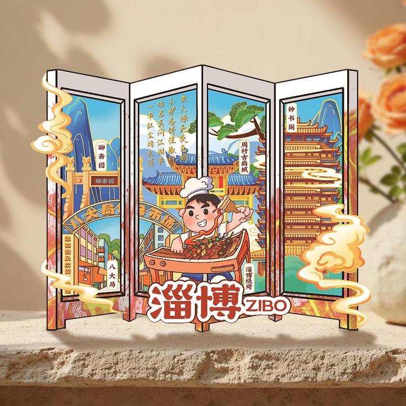 Zibo refrigerator stickers, city attractions, wooden magnetic refrigerator stickers, Shandong tourism, cultural and creative souvenirs, wholesale of handicrafts