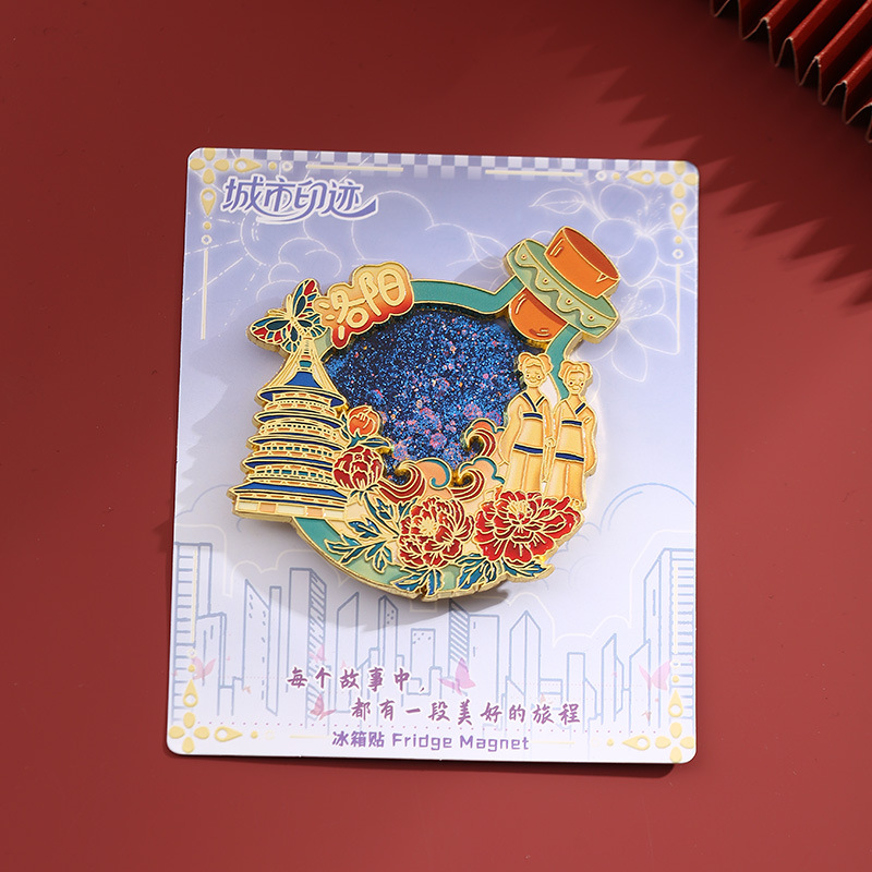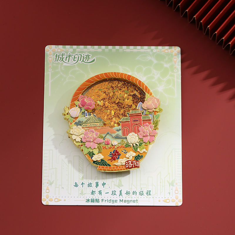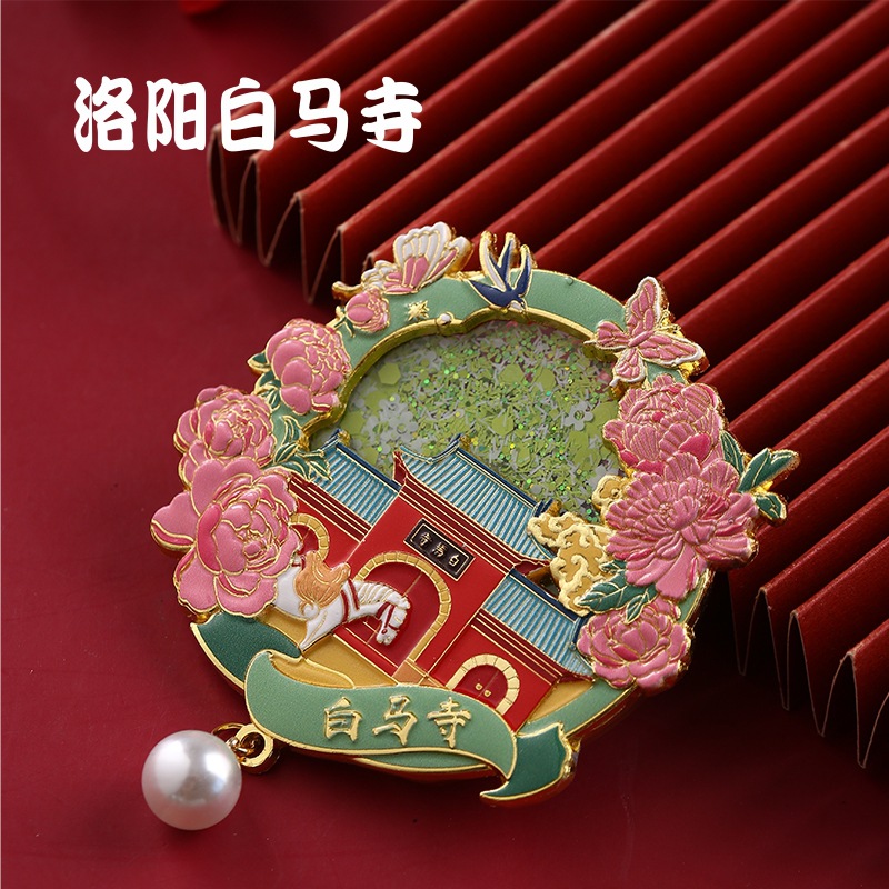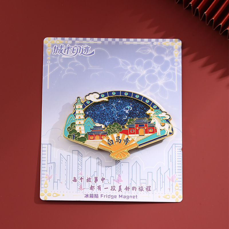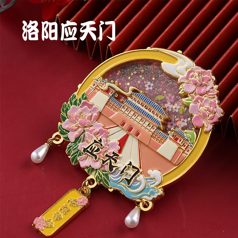 Metal refrigerator with flowing sand magnetic suction for city tourism, Kaifeng, Changsha, Luoyang, Laojun Mountain, Baima Temple, Yingtian Gate, cultural and creative