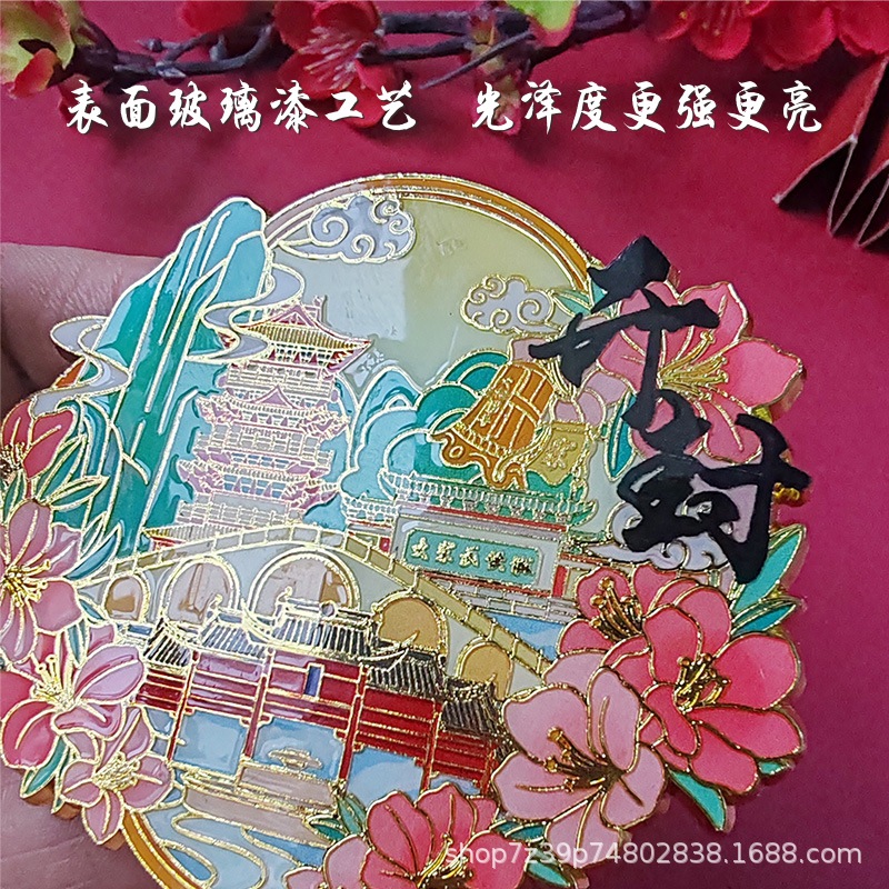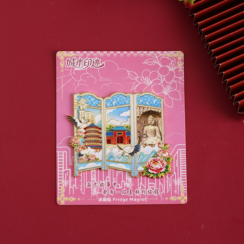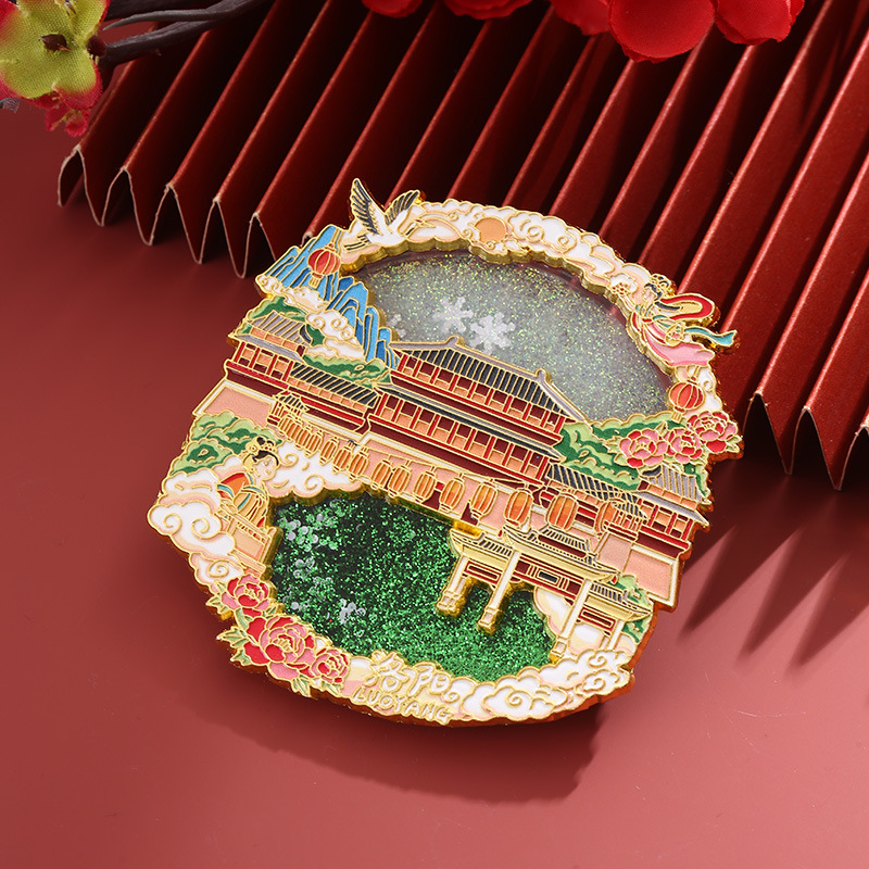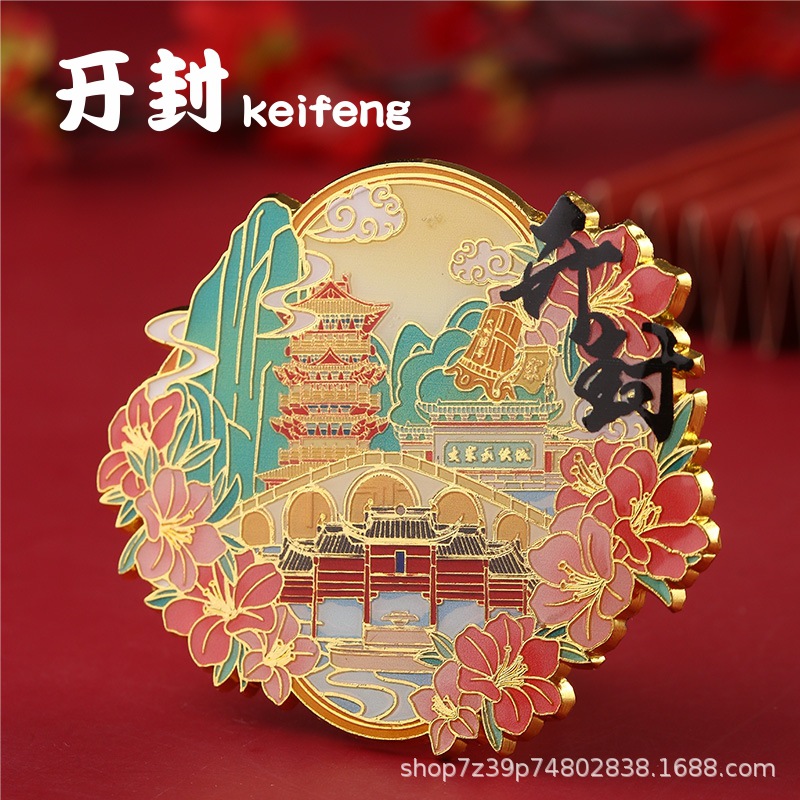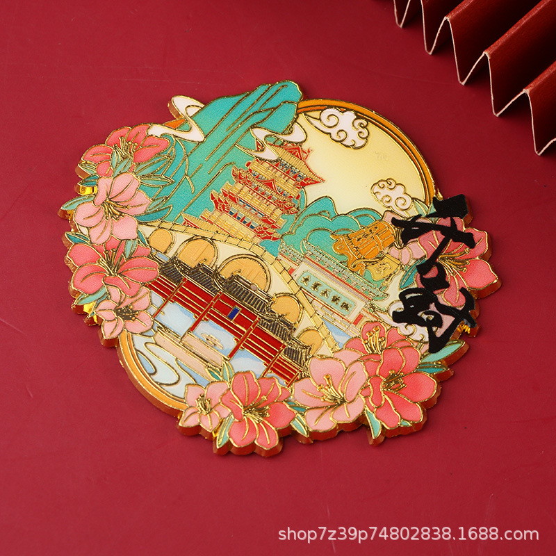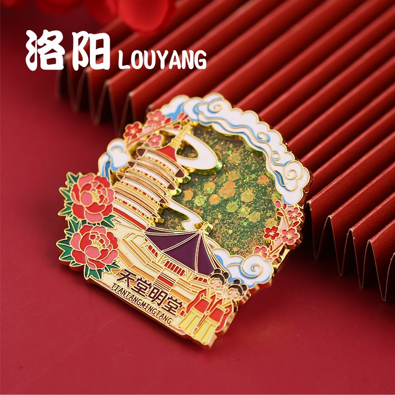 Metal refrigerator with flowing sand magnetic suction for city tourism, Kaifeng, Changsha, Luoyang, Laojun Mountain, Baima Temple, Yingtian Gate, cultural and creative