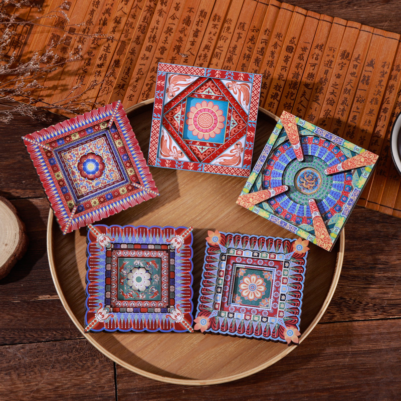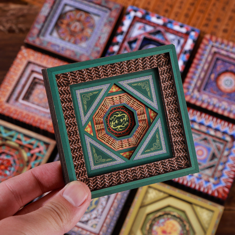 Top 10 Ancient Seaweed Well Series Five Layer Wooden Tourist Magnetic Refrigerator Sticker Souvenir Dunhuang Cultural and Creative Refrigerator Sticker