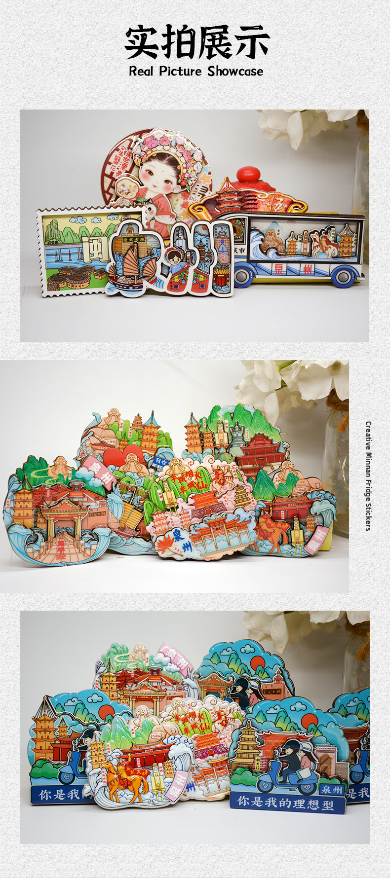 Quanzhou Tourist Refrigerator Sticks Xunpu Women's Hairpin Flower Headwear Lao Junyan Creative Magnetic Travel Cultural and Creative Souvenirs Collection
