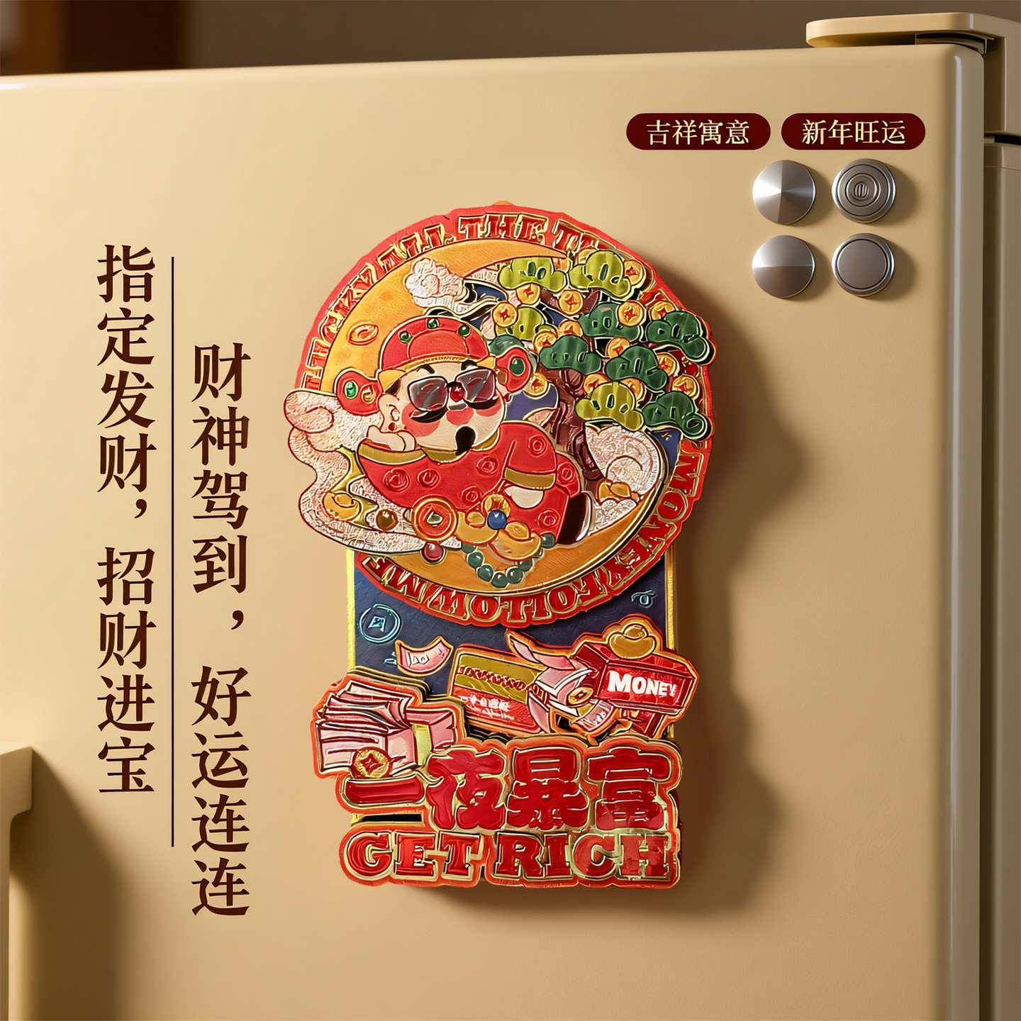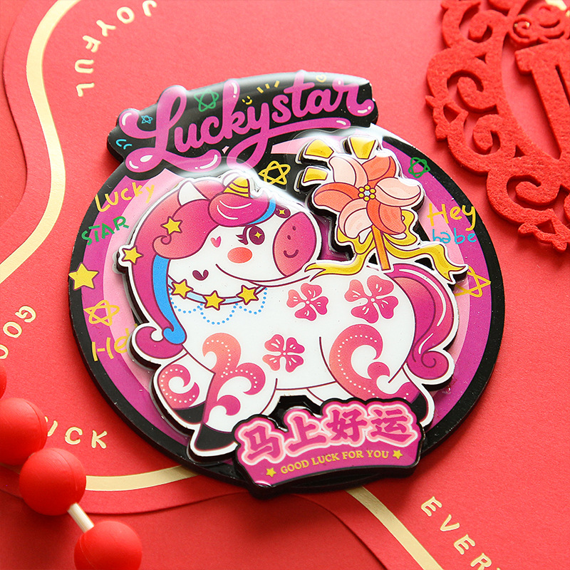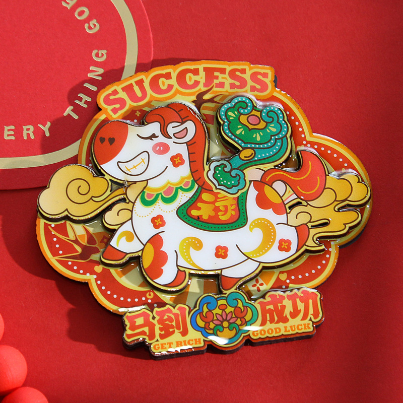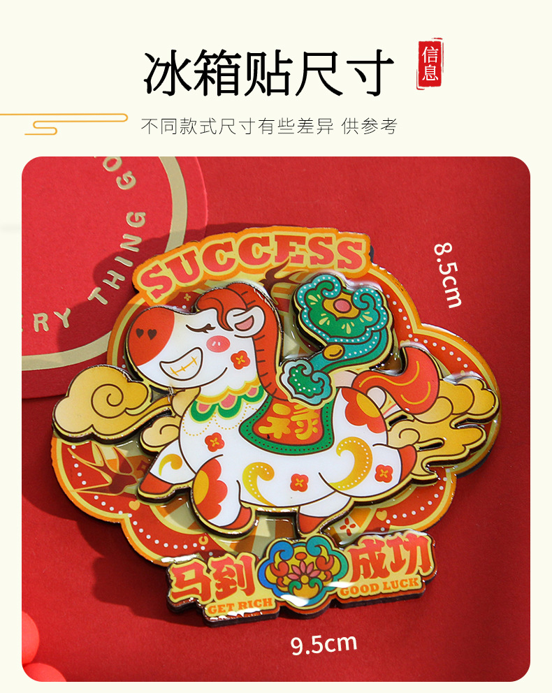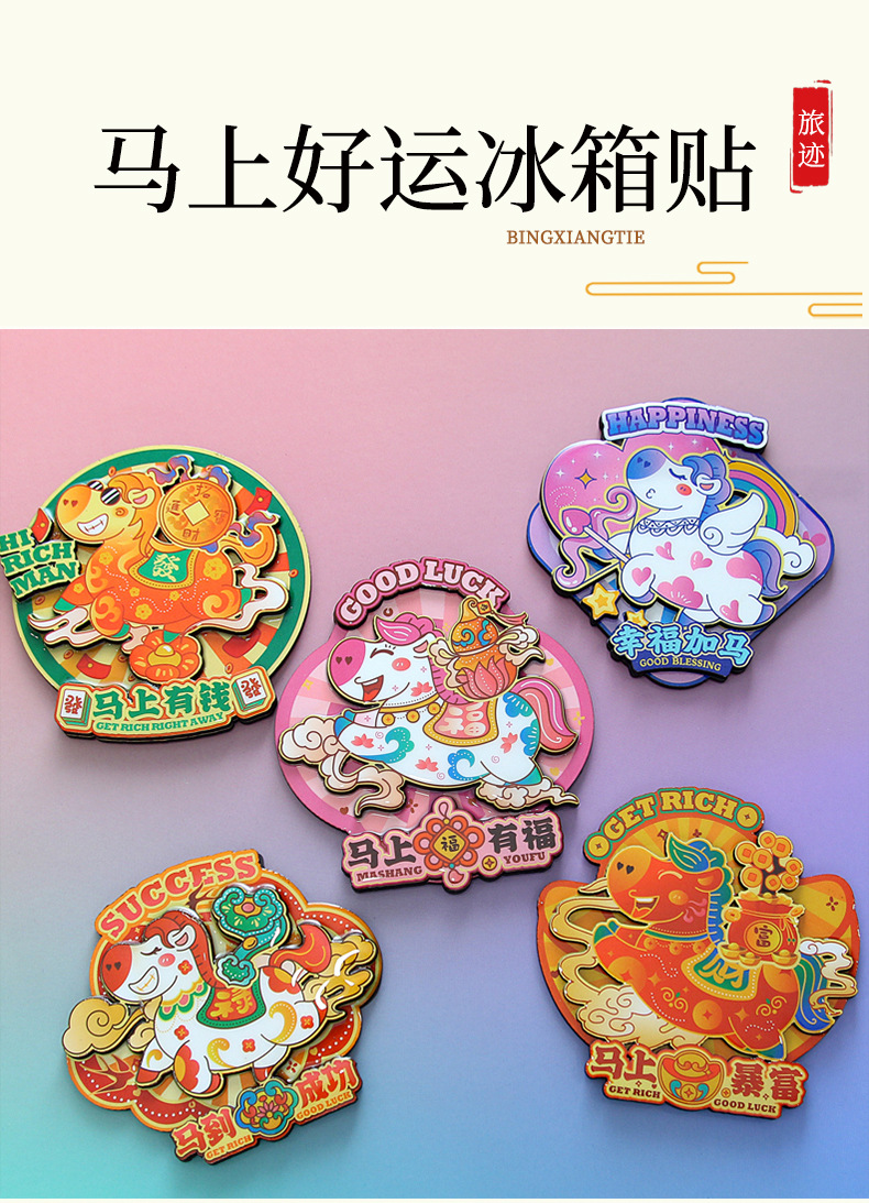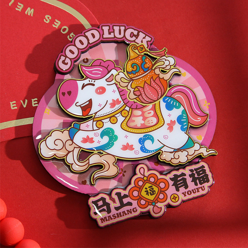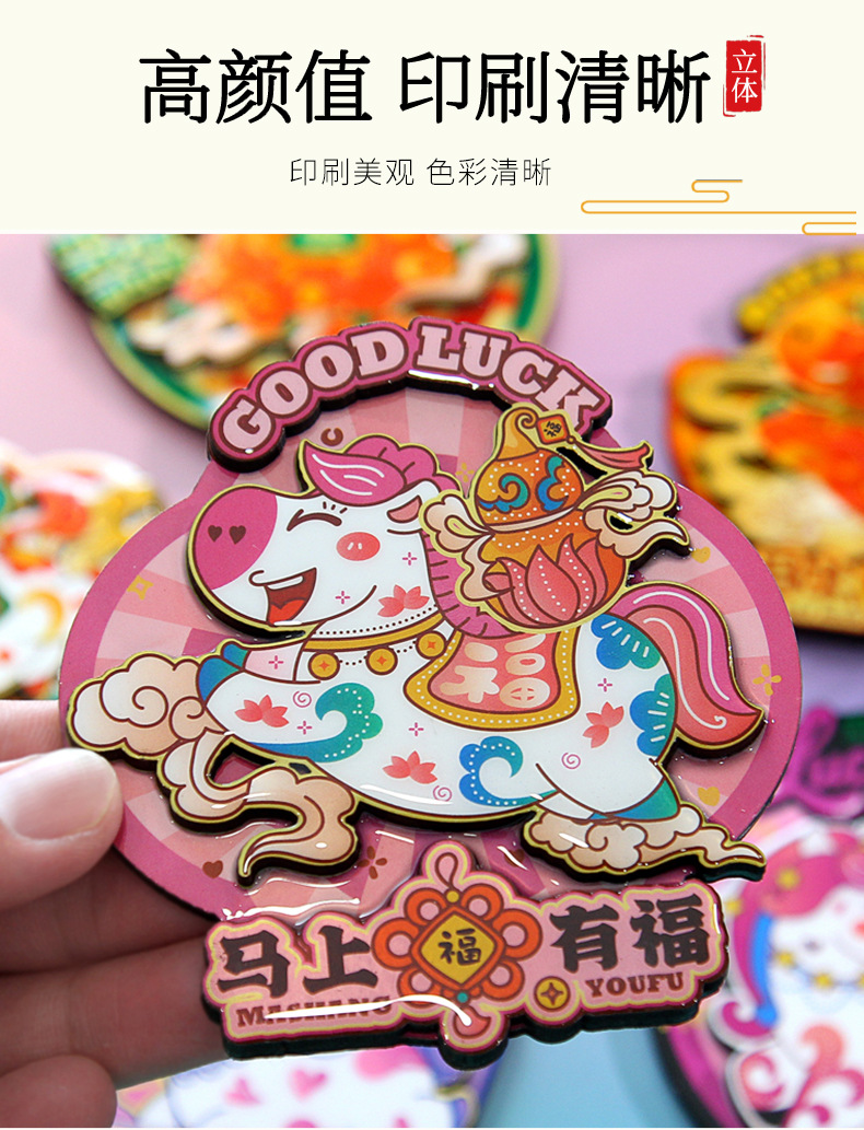 2026 Новый год Креативный год Лошадь Холодильники 5 дорог Богатые Боги Весны Мультфильмы Милые магнитные наклейки Деревянные споты