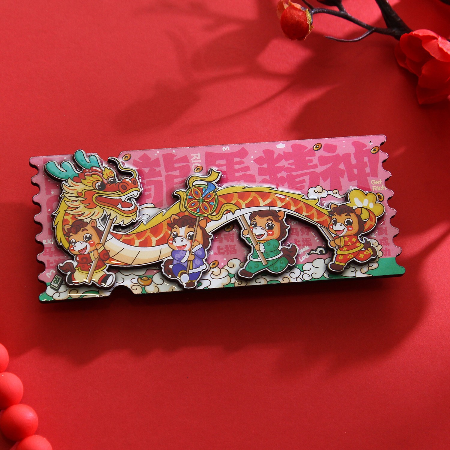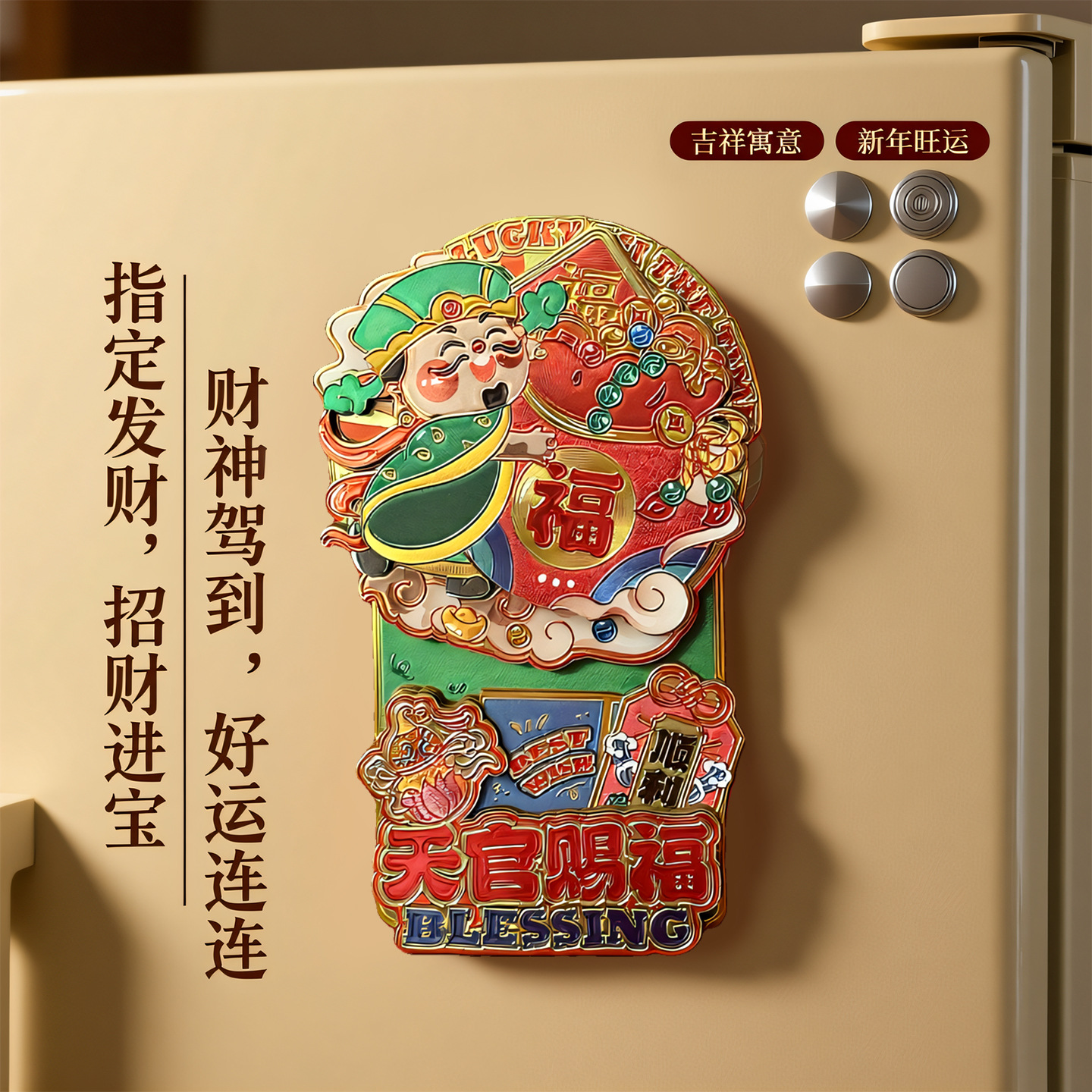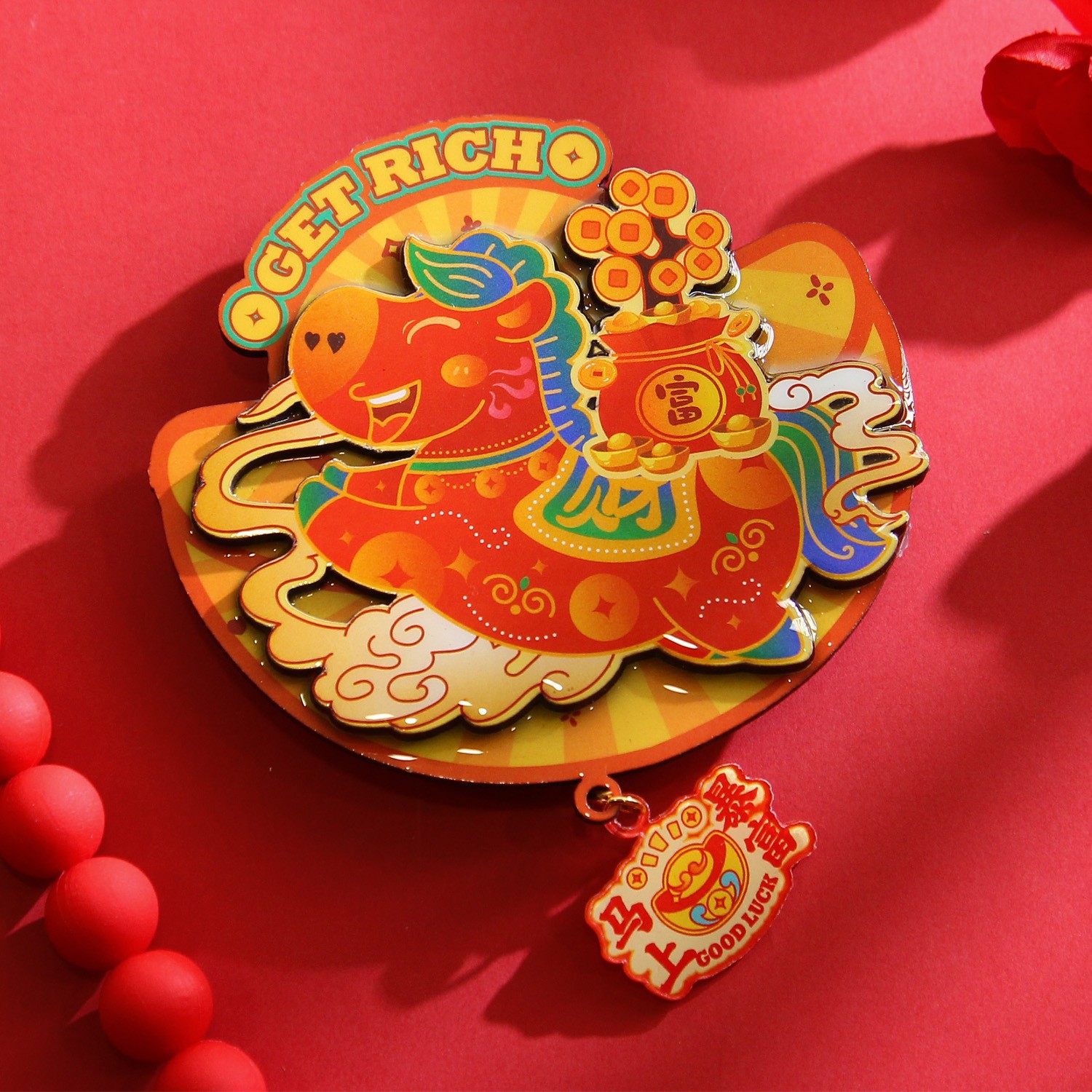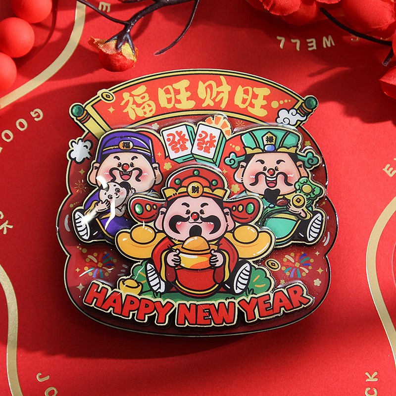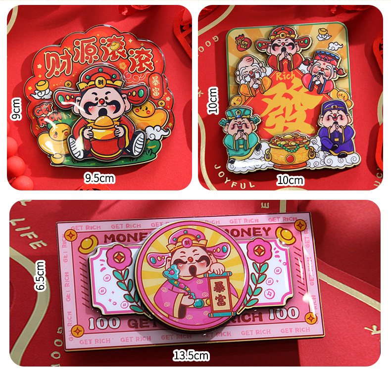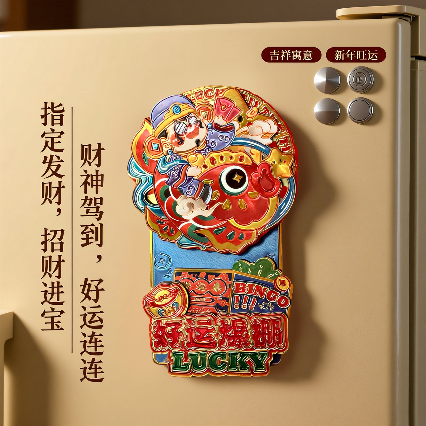 2026 Новый год Креативный год Лошадь Холодильники 5 дорог Богатые Боги Весны Мультфильмы Милые магнитные наклейки Деревянные споты