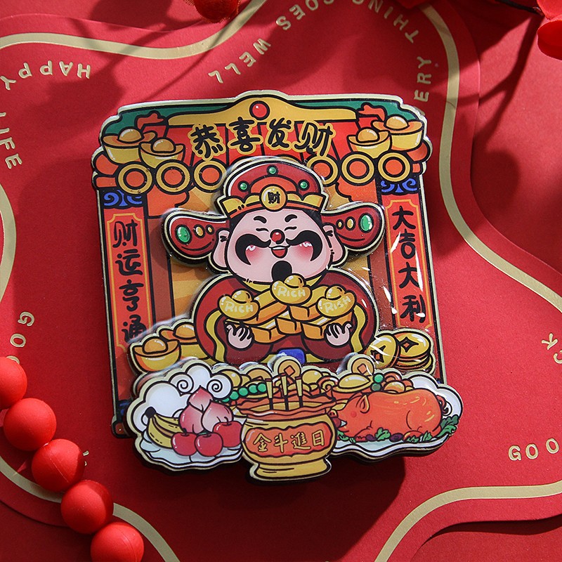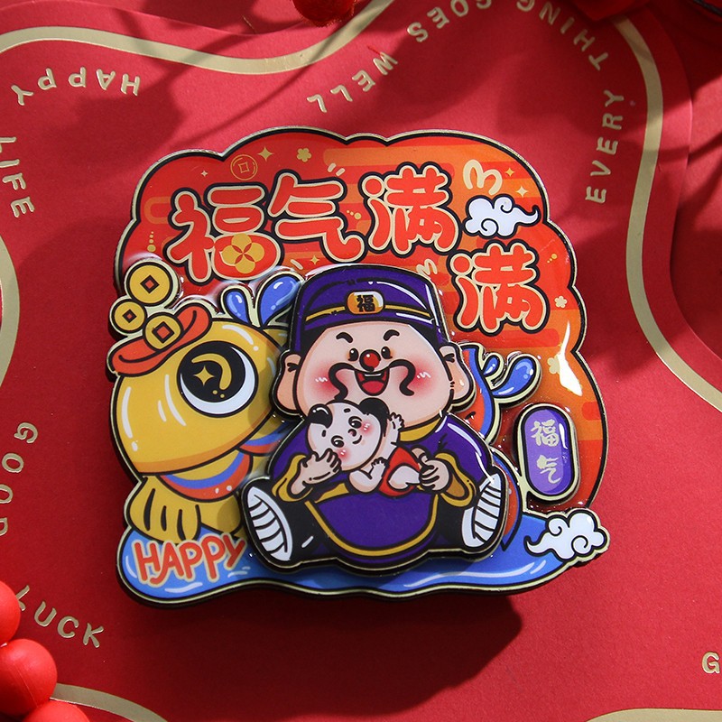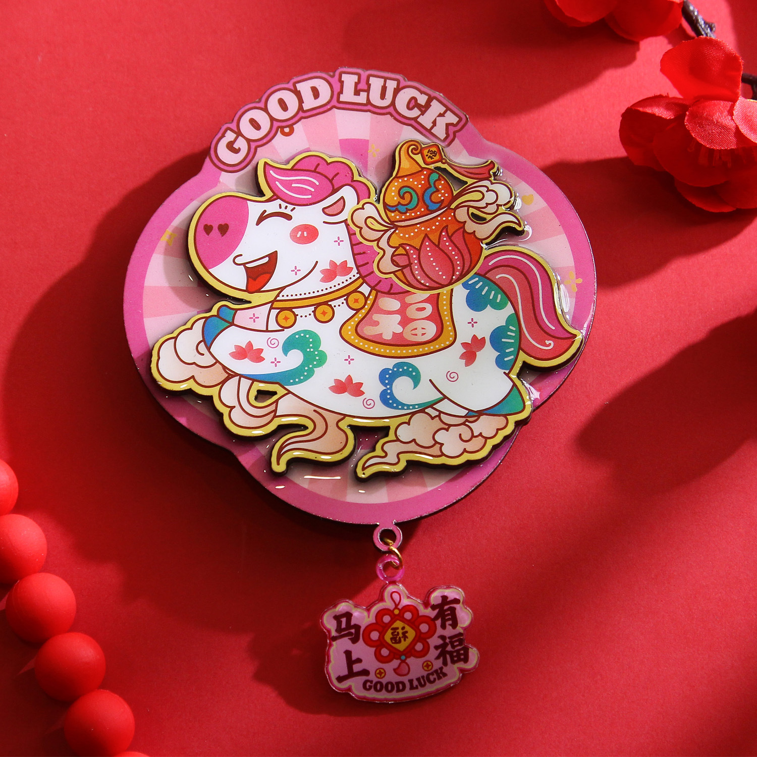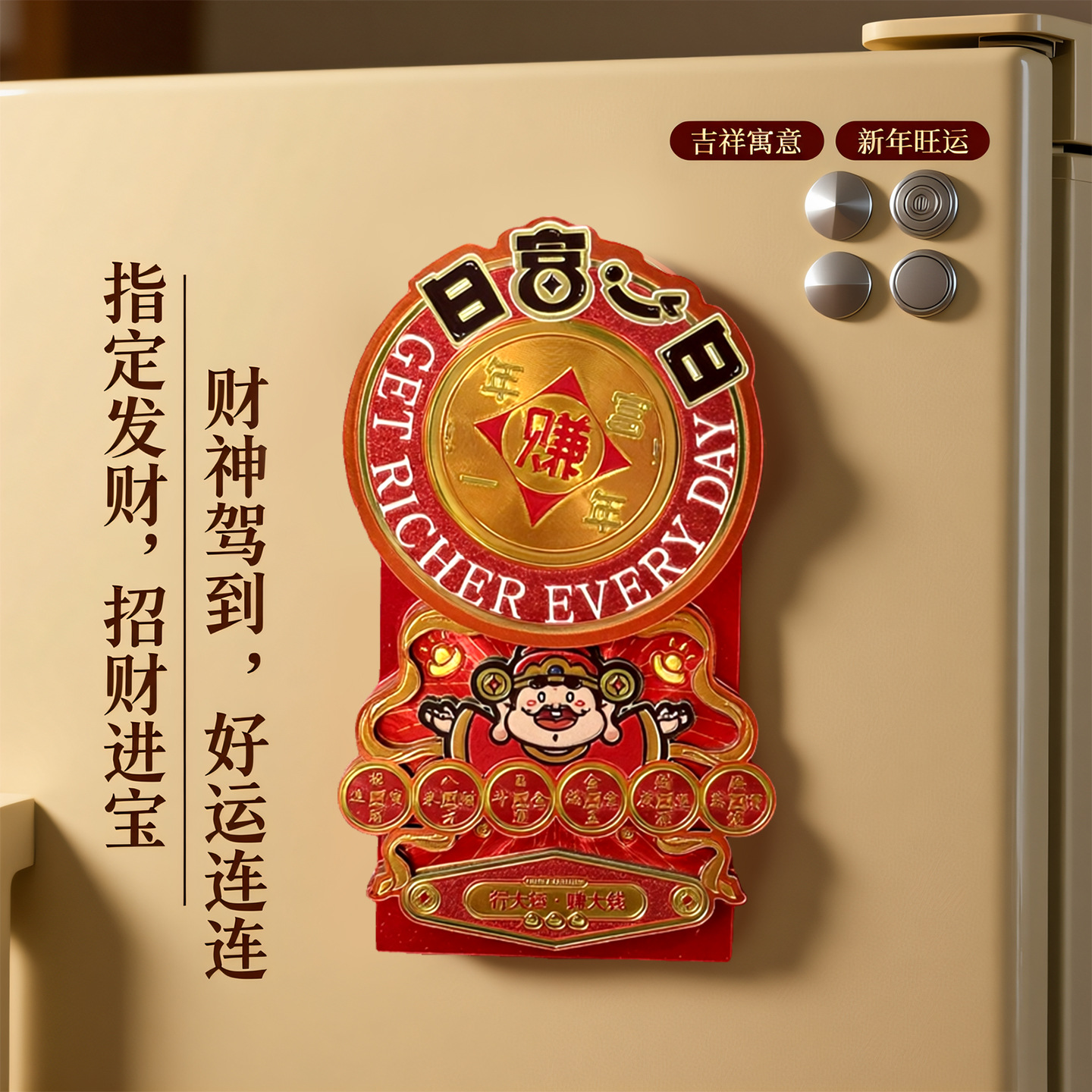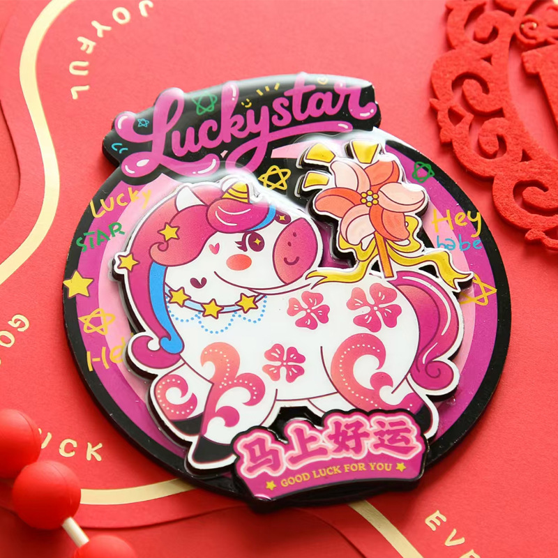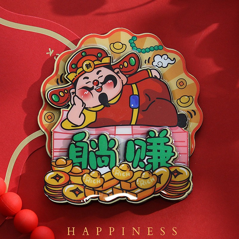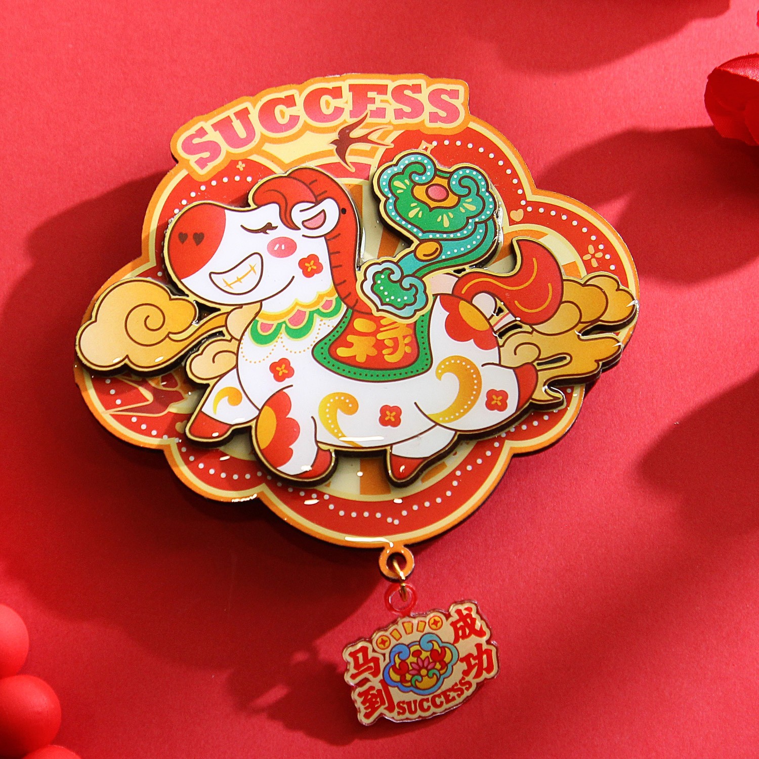 2026 Новый год Креативный год Лошадь Холодильники 5 дорог Богатые Боги Весны Мультфильмы Милые магнитные наклейки Деревянные споты