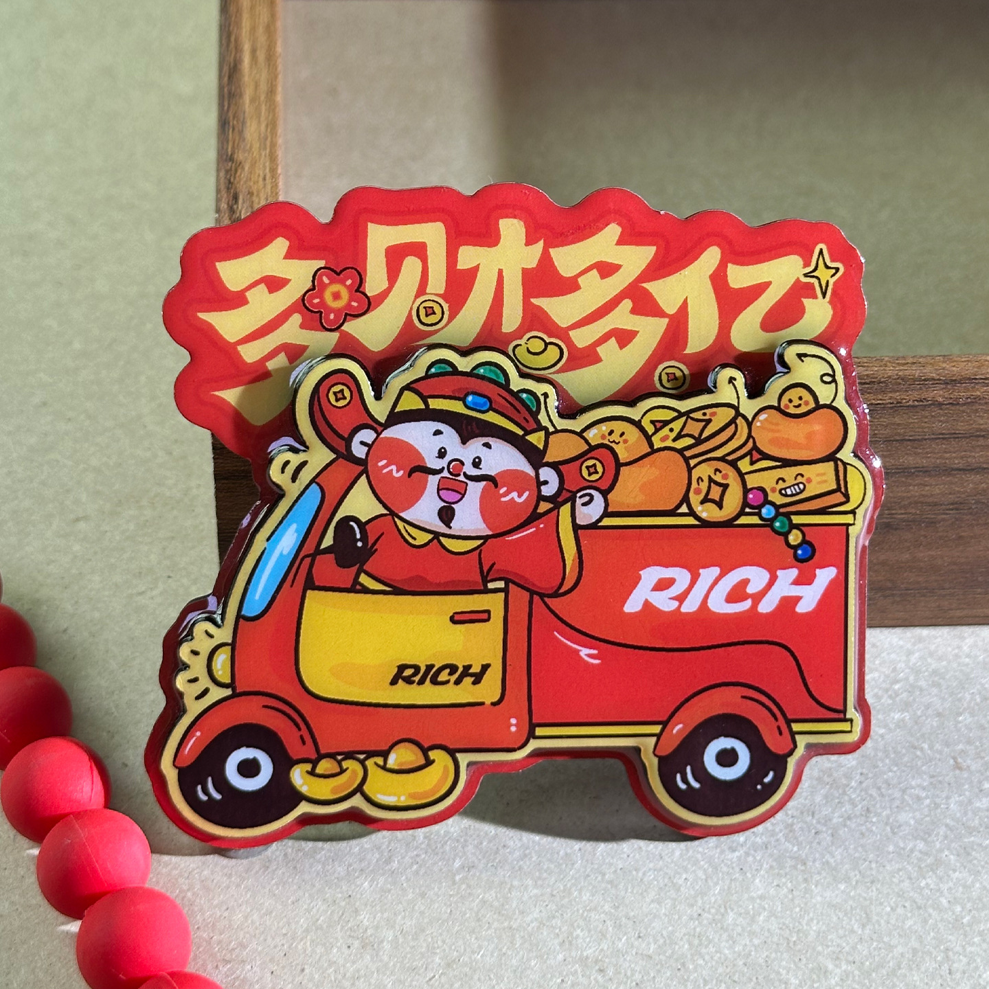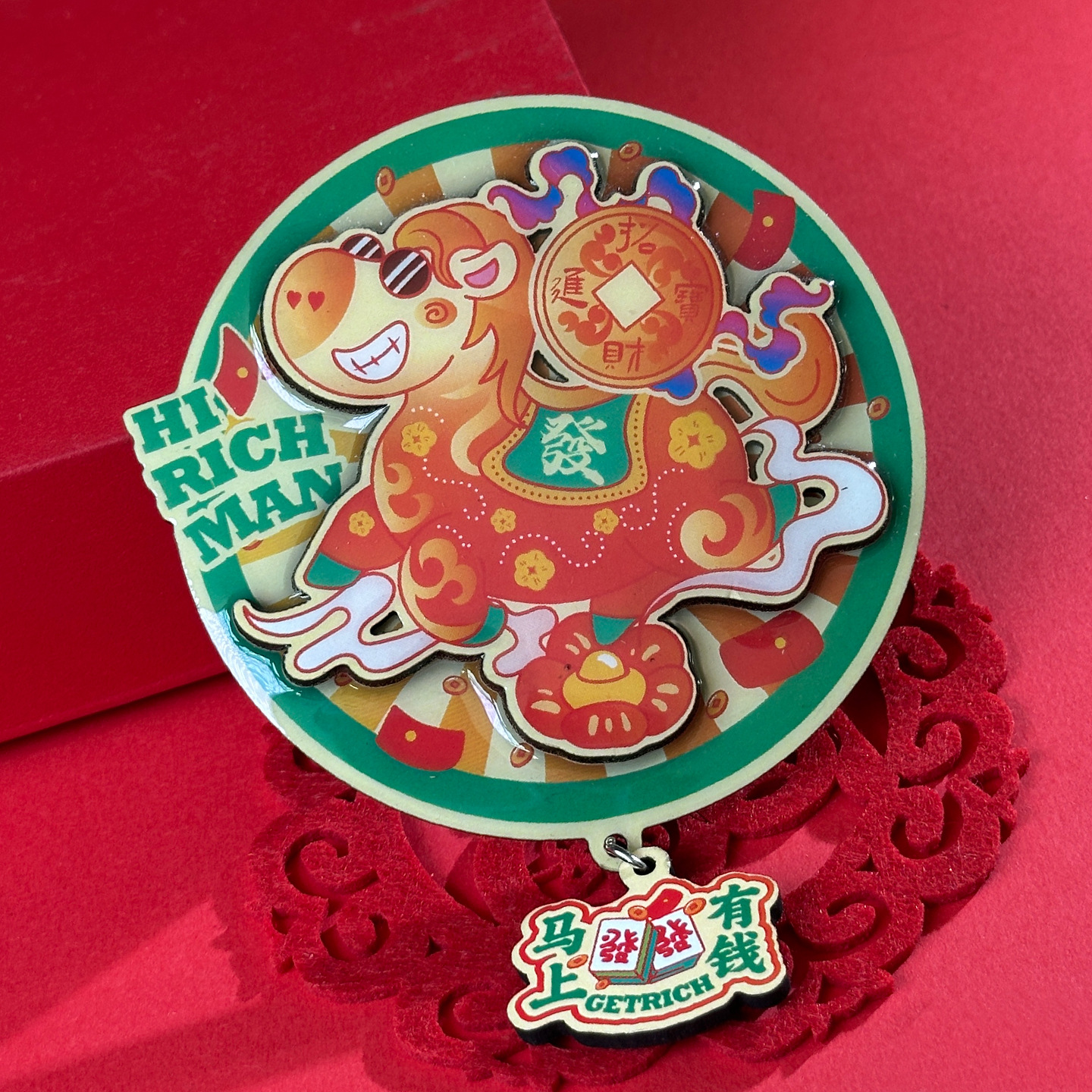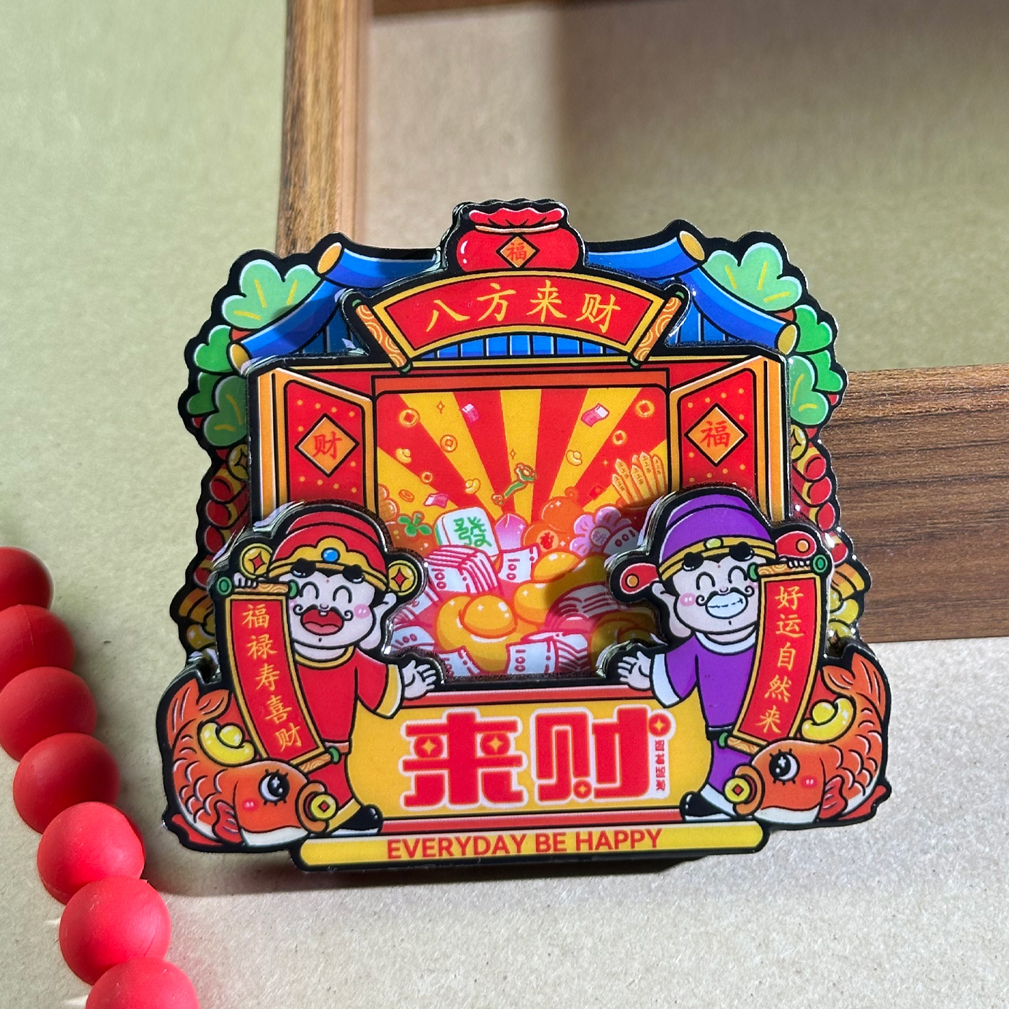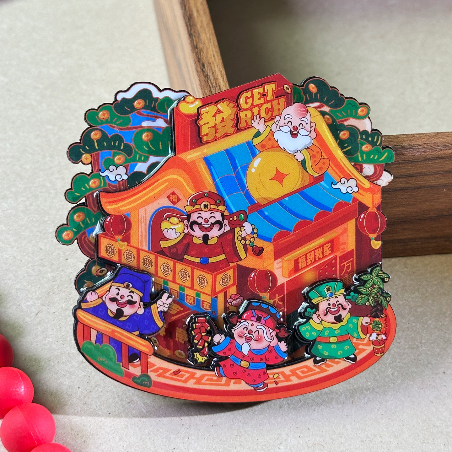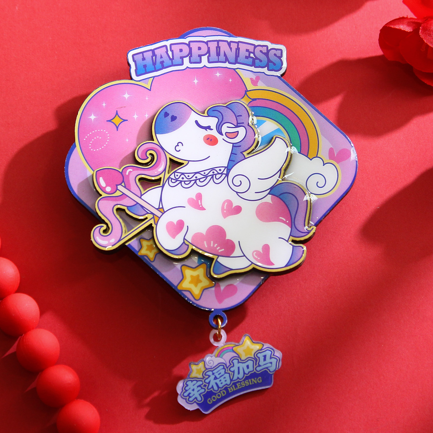 2026 Новый год Креативный год Лошадь Холодильники 5 дорог Богатые Боги Весны Мультфильмы Милые магнитные наклейки Деревянные споты