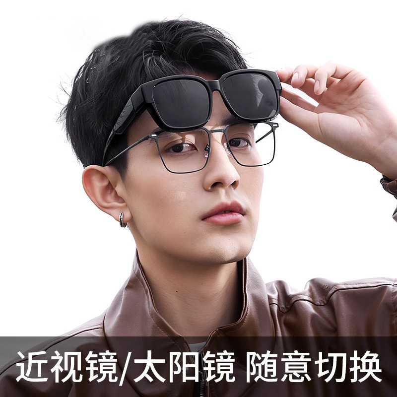 Men's nearsighted sunglasses with clip on lenses, polarized anti UV sunglasses for men's driving, suitable for women's use