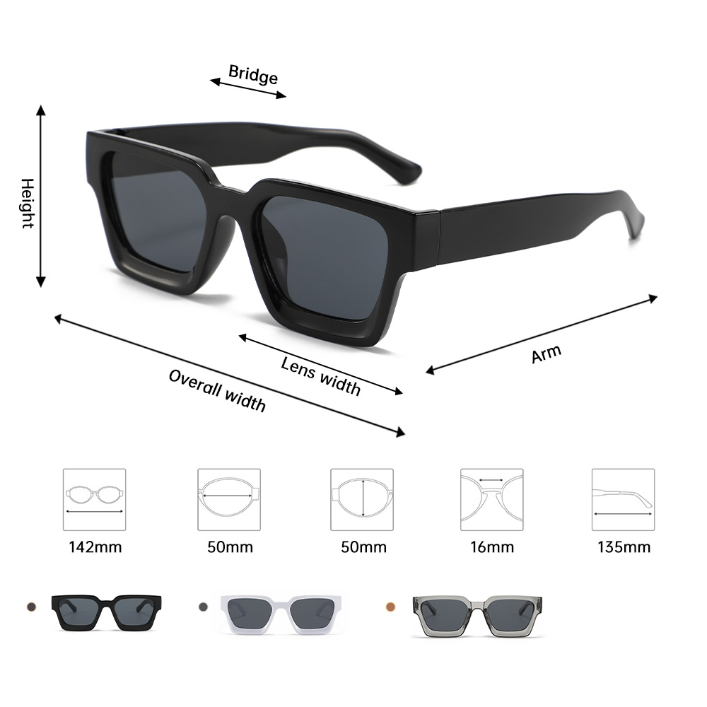 Classic Thick Box Sunglasses for Men Driving, UV Protection, Advanced Sense, Full Frame Sunglasses, Street Photography, Versatile Sunglasses
