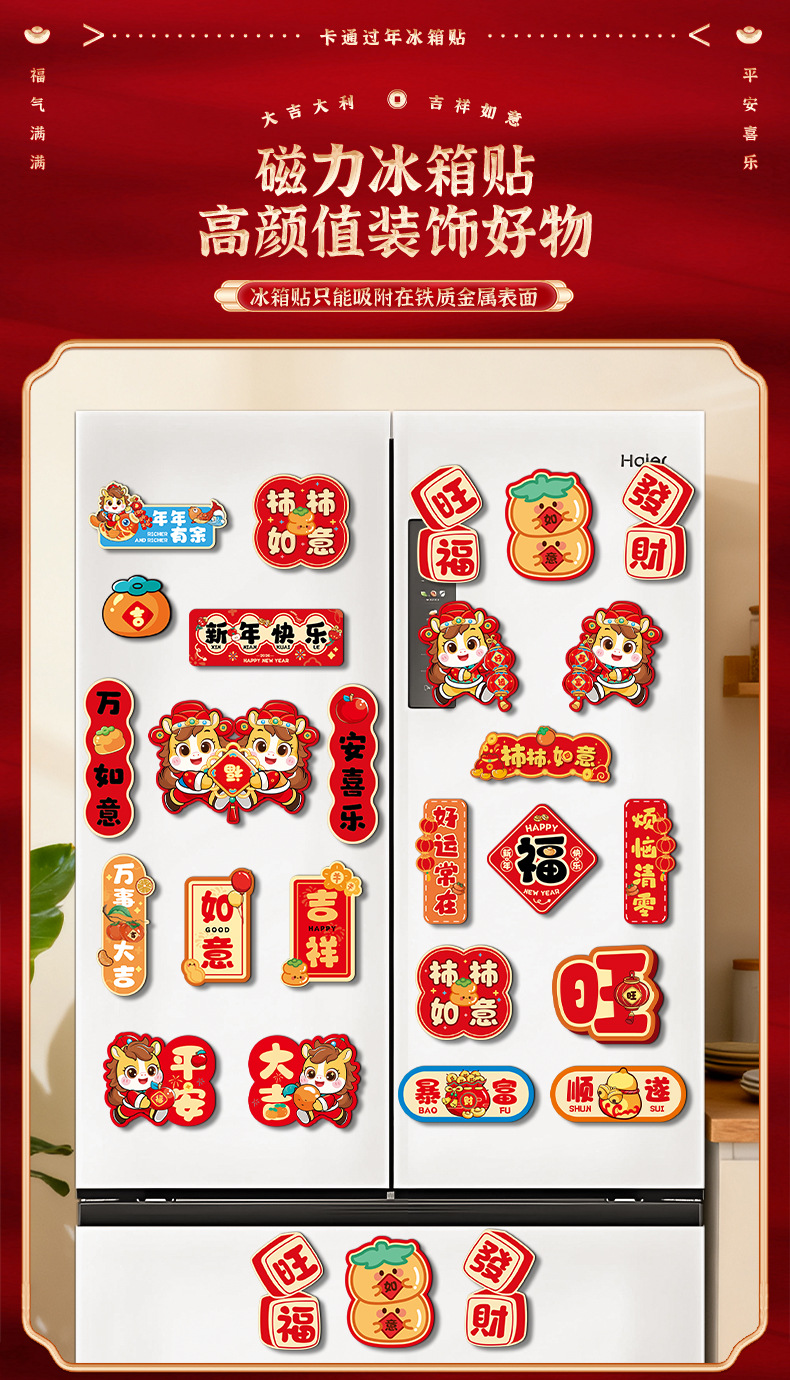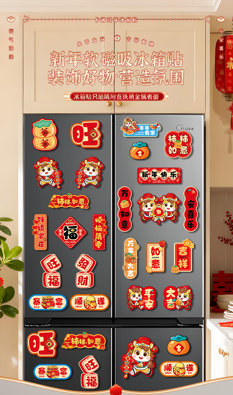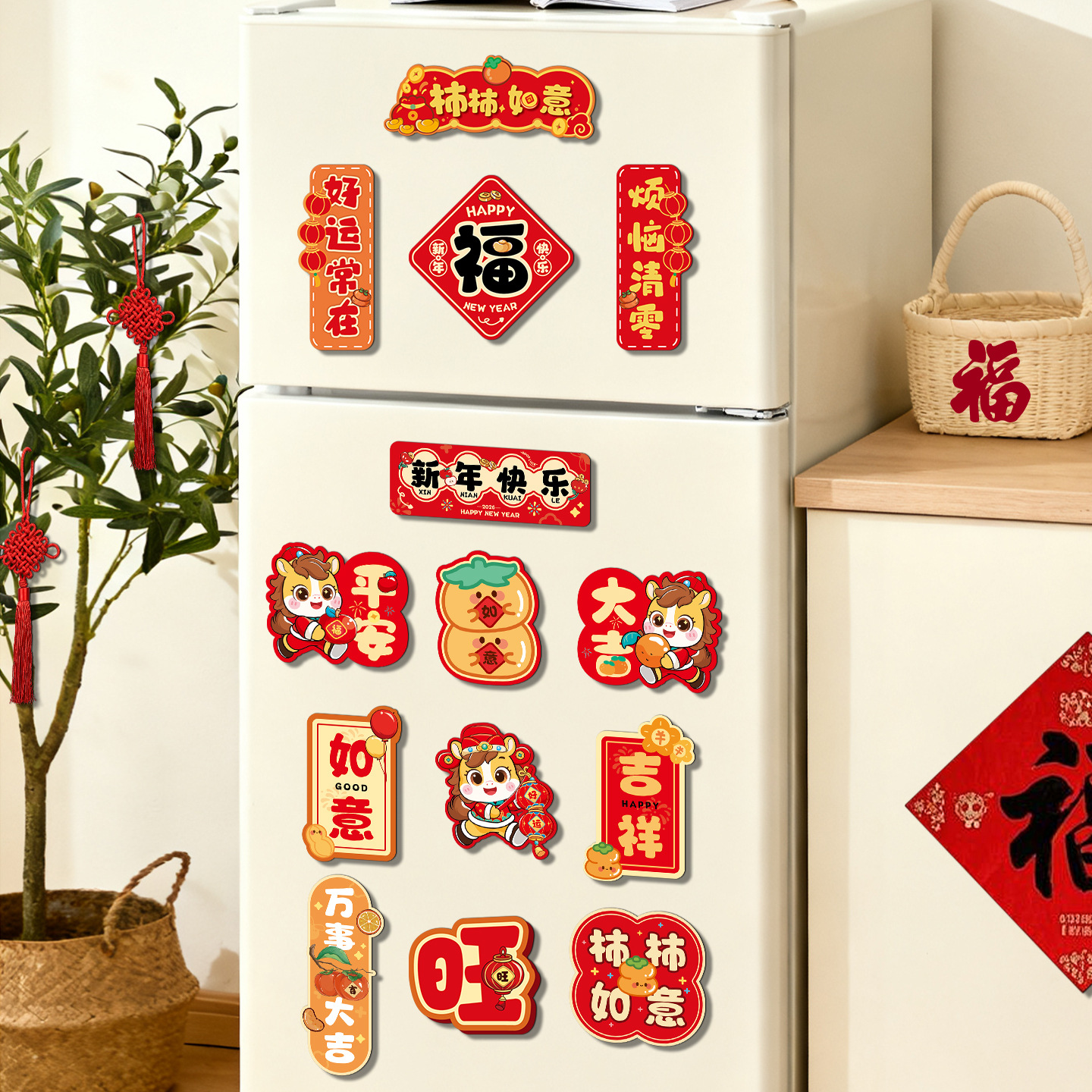 New refrigerator magnets for the Year of the Horse 2026, personalized and creative magnetic suction stickers, cute decorations for the New Year and Chinese New Year