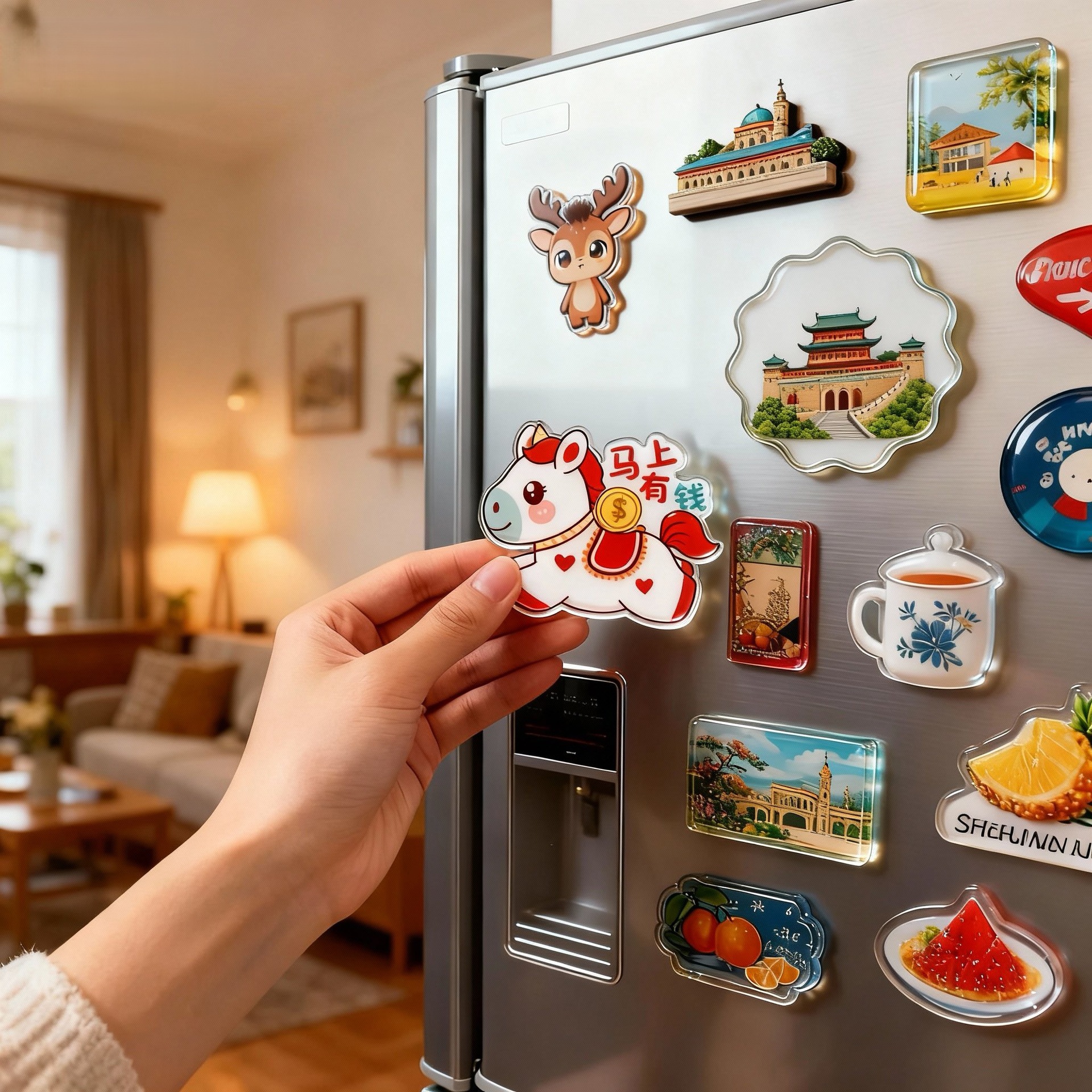 Акрил холодильник на заказ Подарки на год лошади Новый год Малый магнитный пластырь Создатель скоро будет богат Креативный холодильник