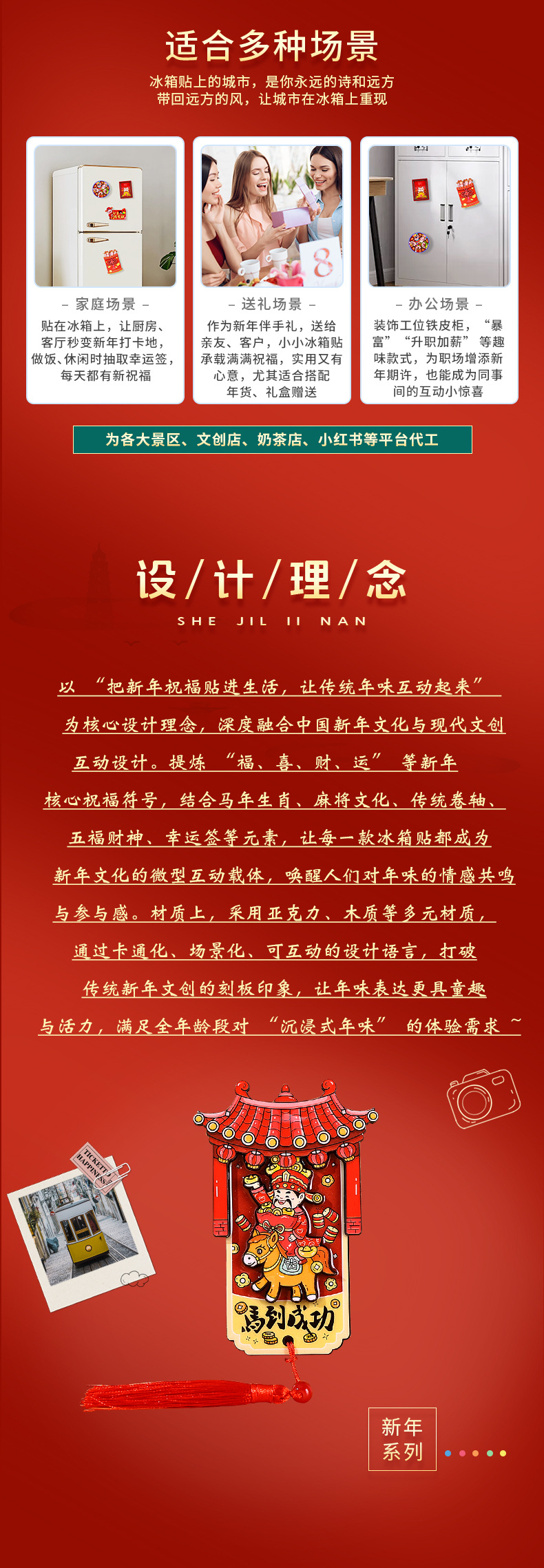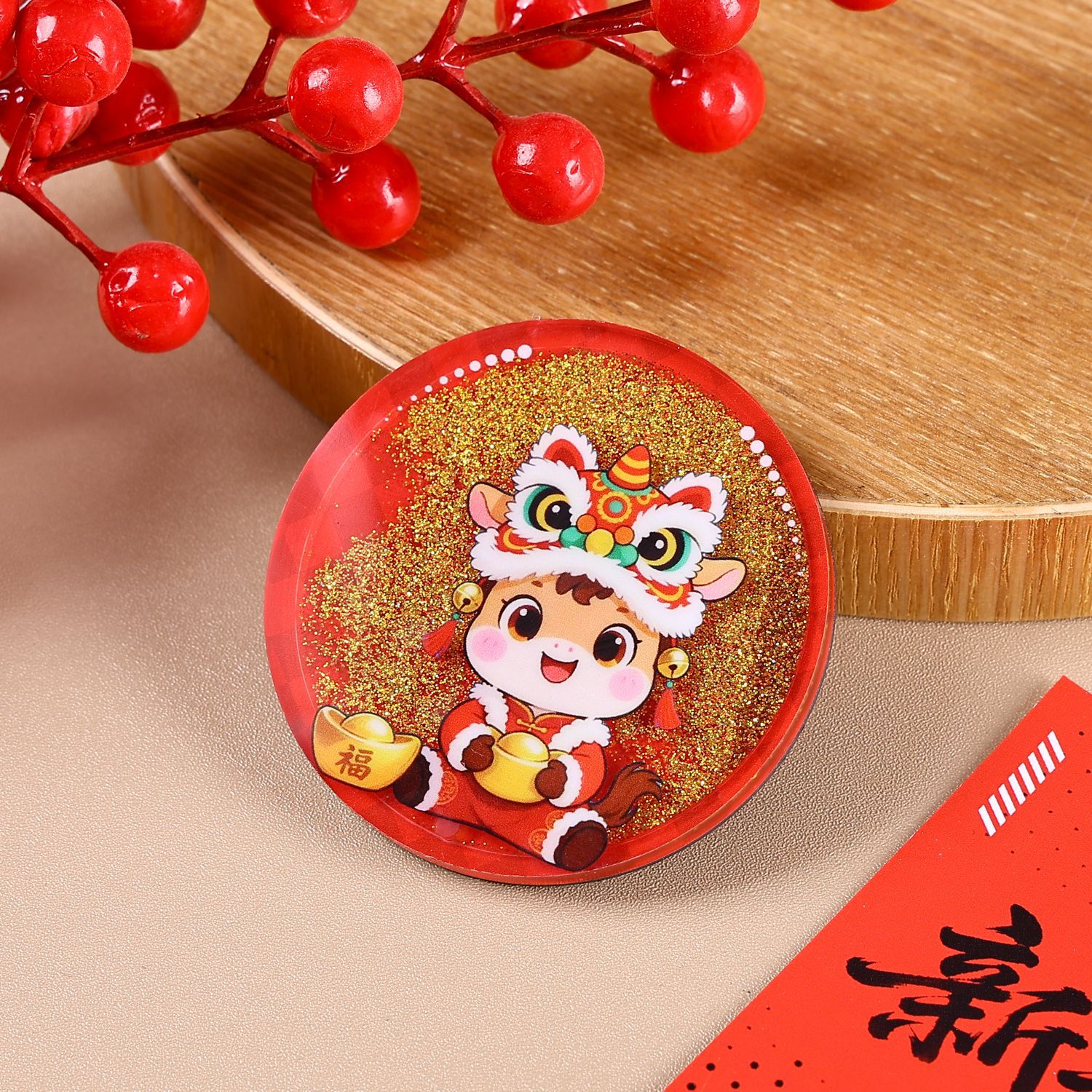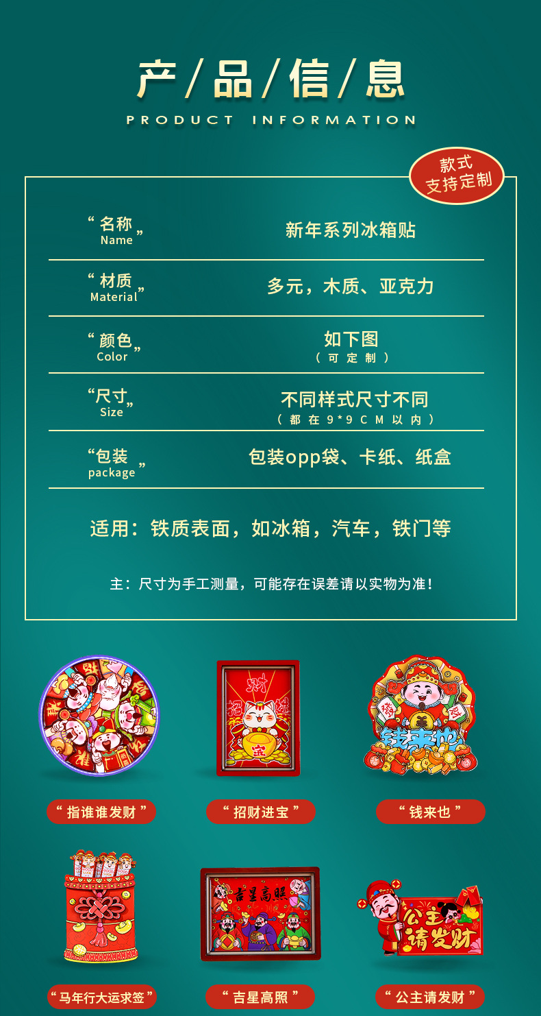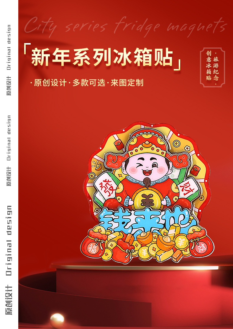 Немедленно разбогатейте Новогодний холодильник с милым акриловым холодильником с магнитным всасыванием