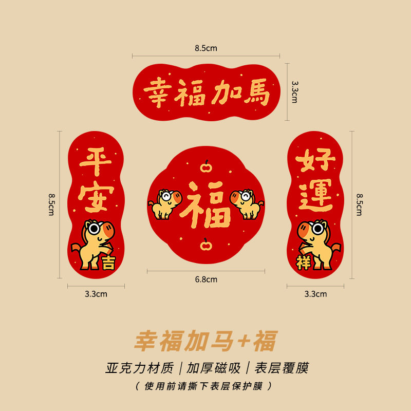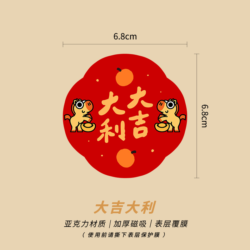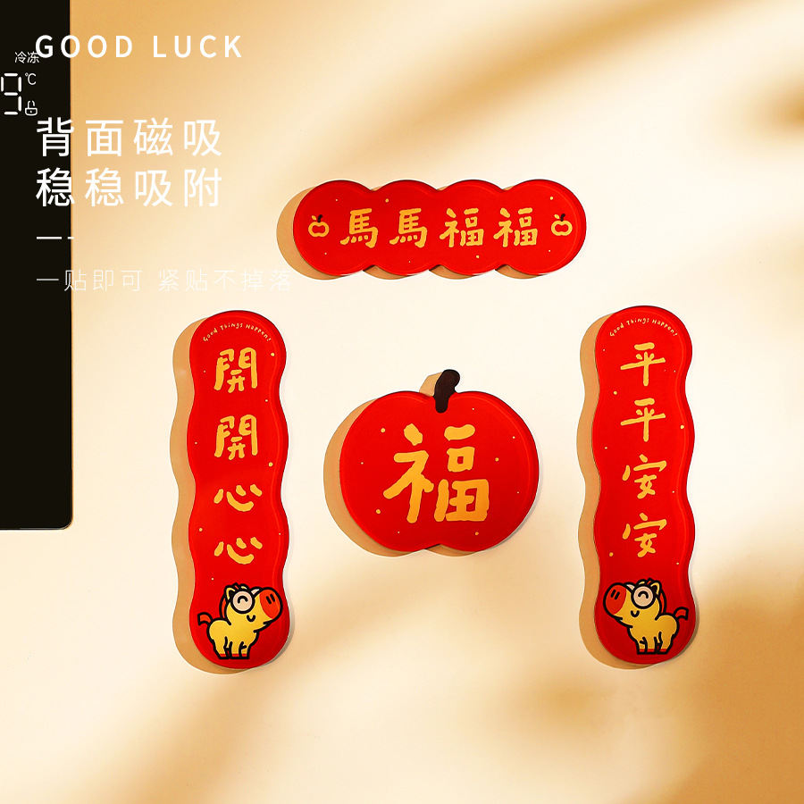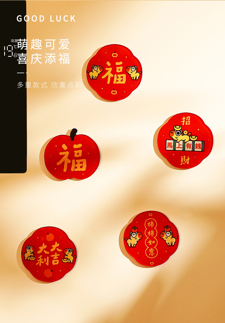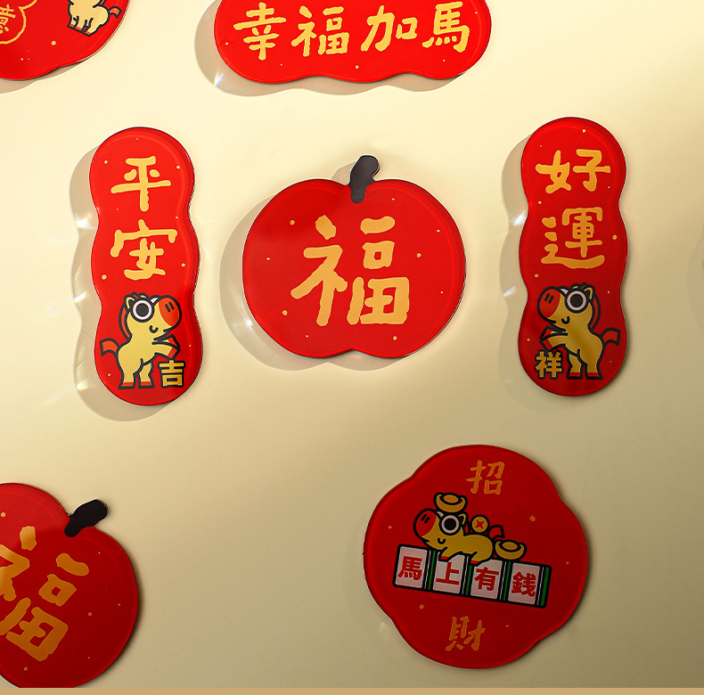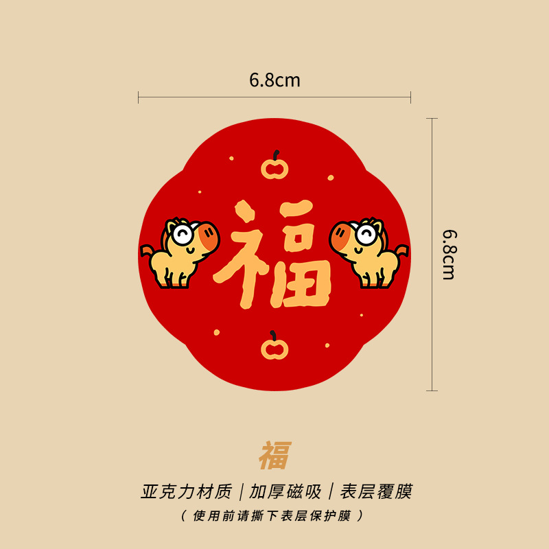 New Year of the Horse 2026 Fuzi magnetic refrigerator sticker creative acrylic celebrate China-Chic Spring Festival decoration New Year