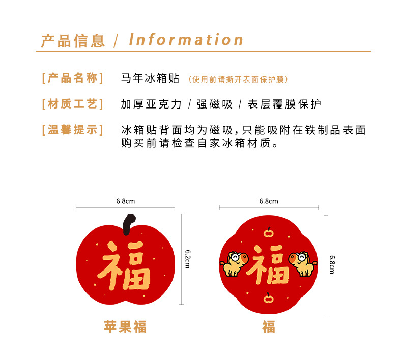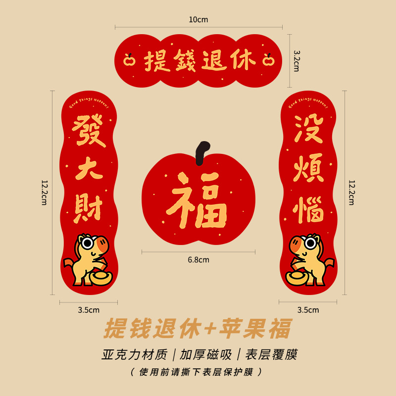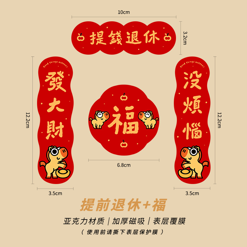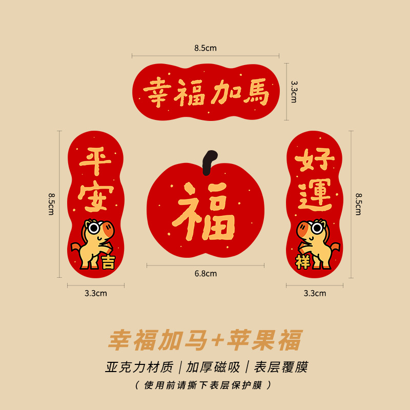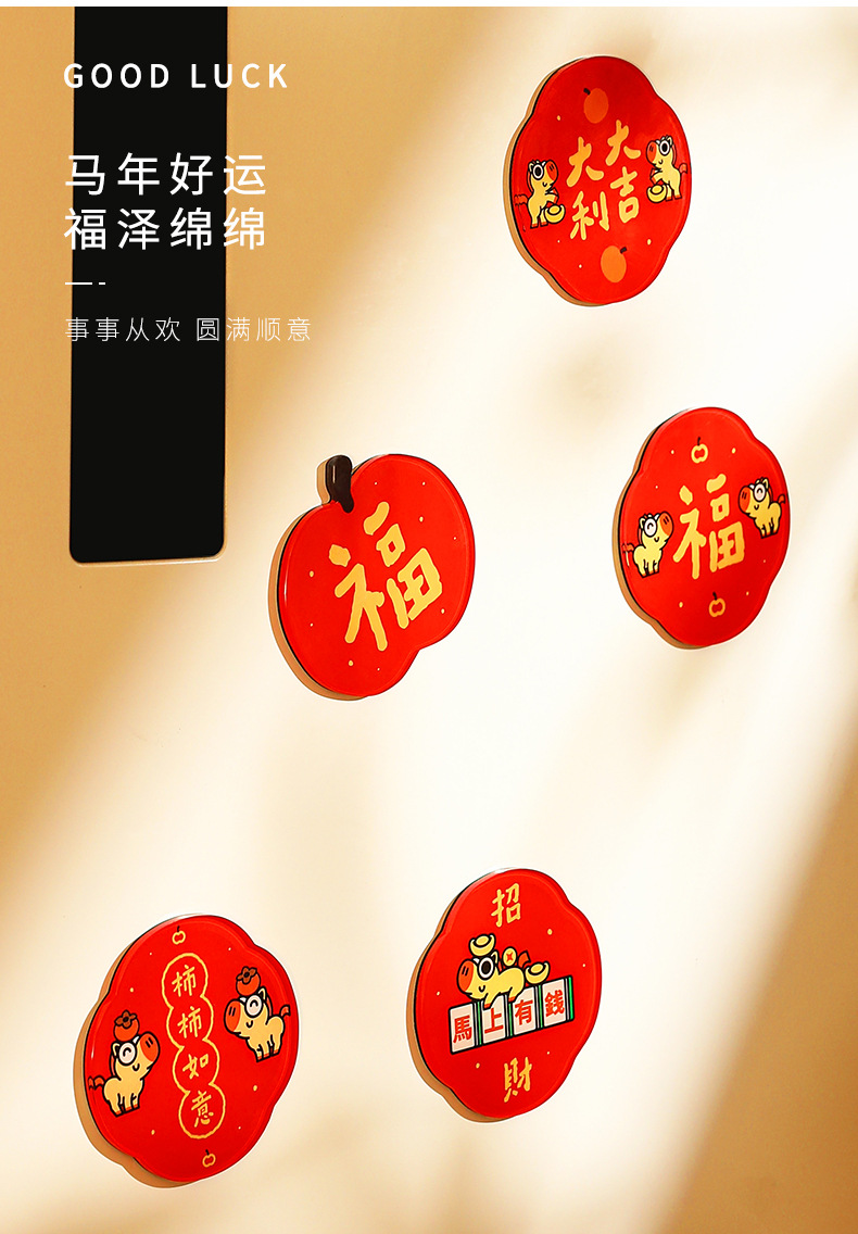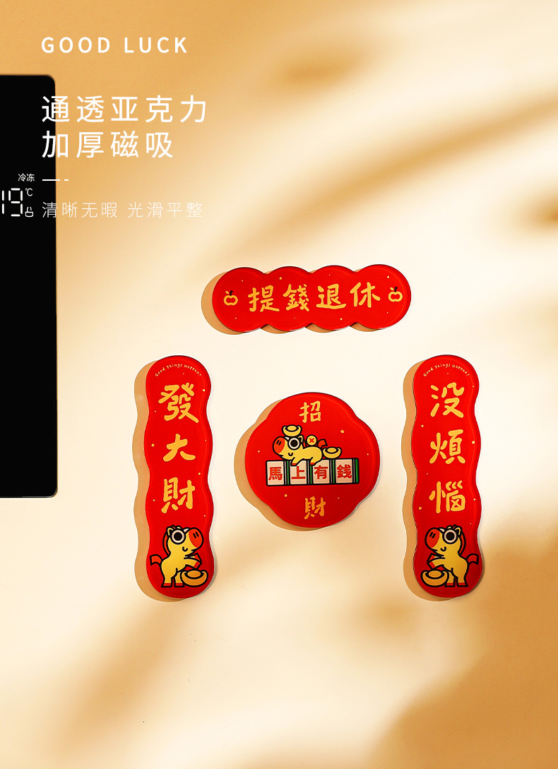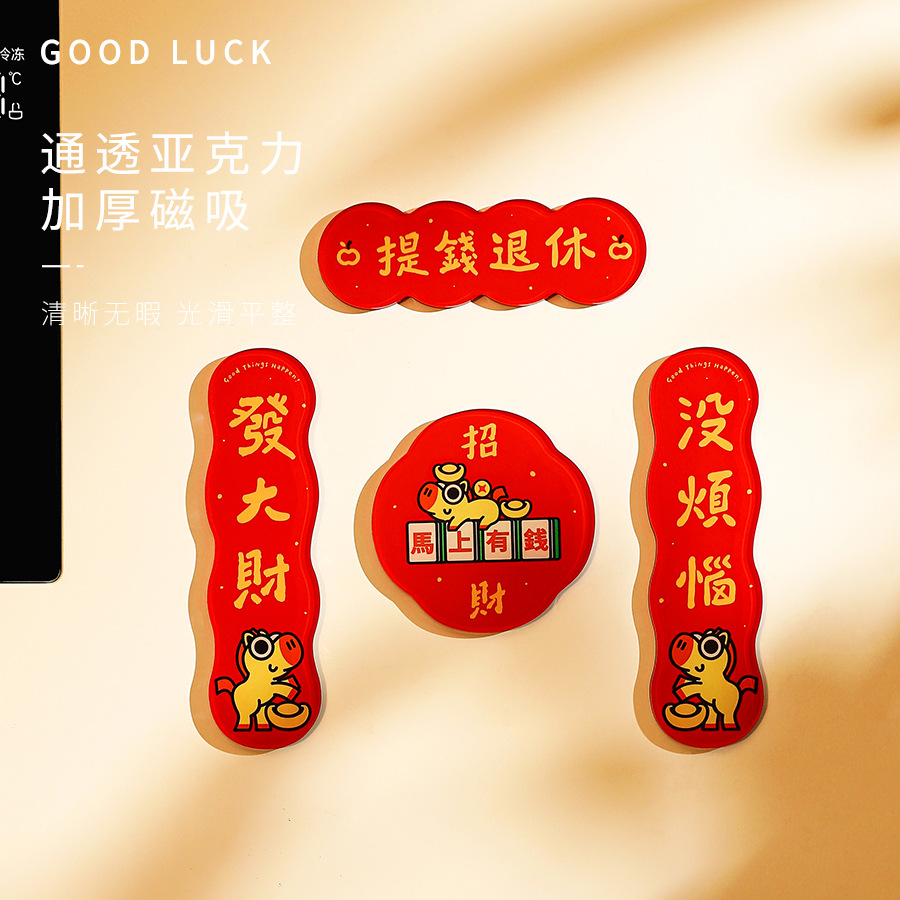 New Year of the Horse 2026 Fuzi magnetic refrigerator sticker creative acrylic celebrate China-Chic Spring Festival decoration New Year