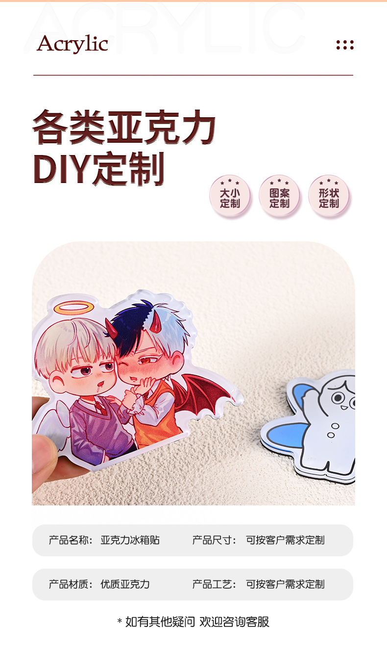 Cute cartoon character acrylic drip glue refrigerator sticker customized creative personality magnetic suction sticker DIY refrigerator decoration sticker