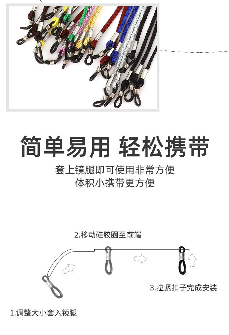 Thick and tight rope, fashionable glasses chain, presbyopia glasses anti slip rope, colorful children's black glasses hanging rope, anti loss