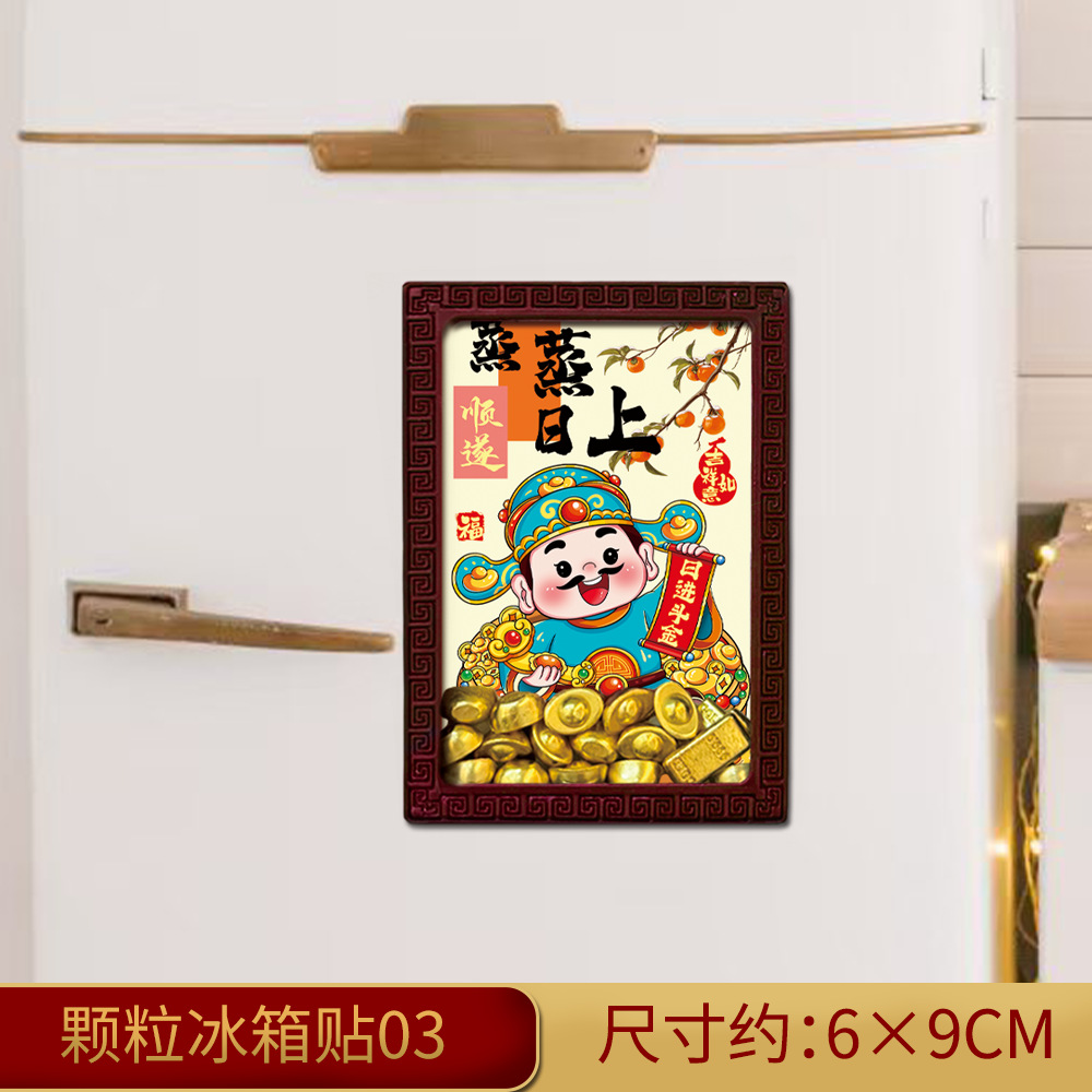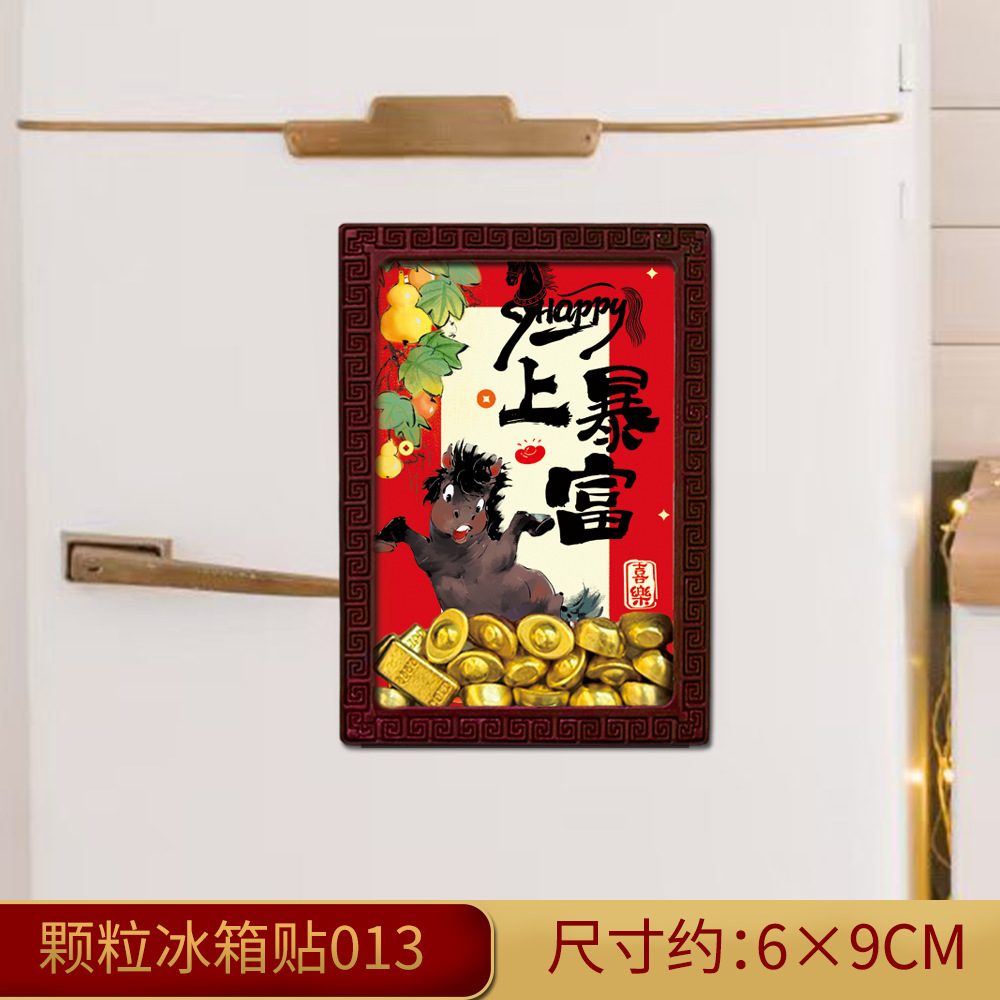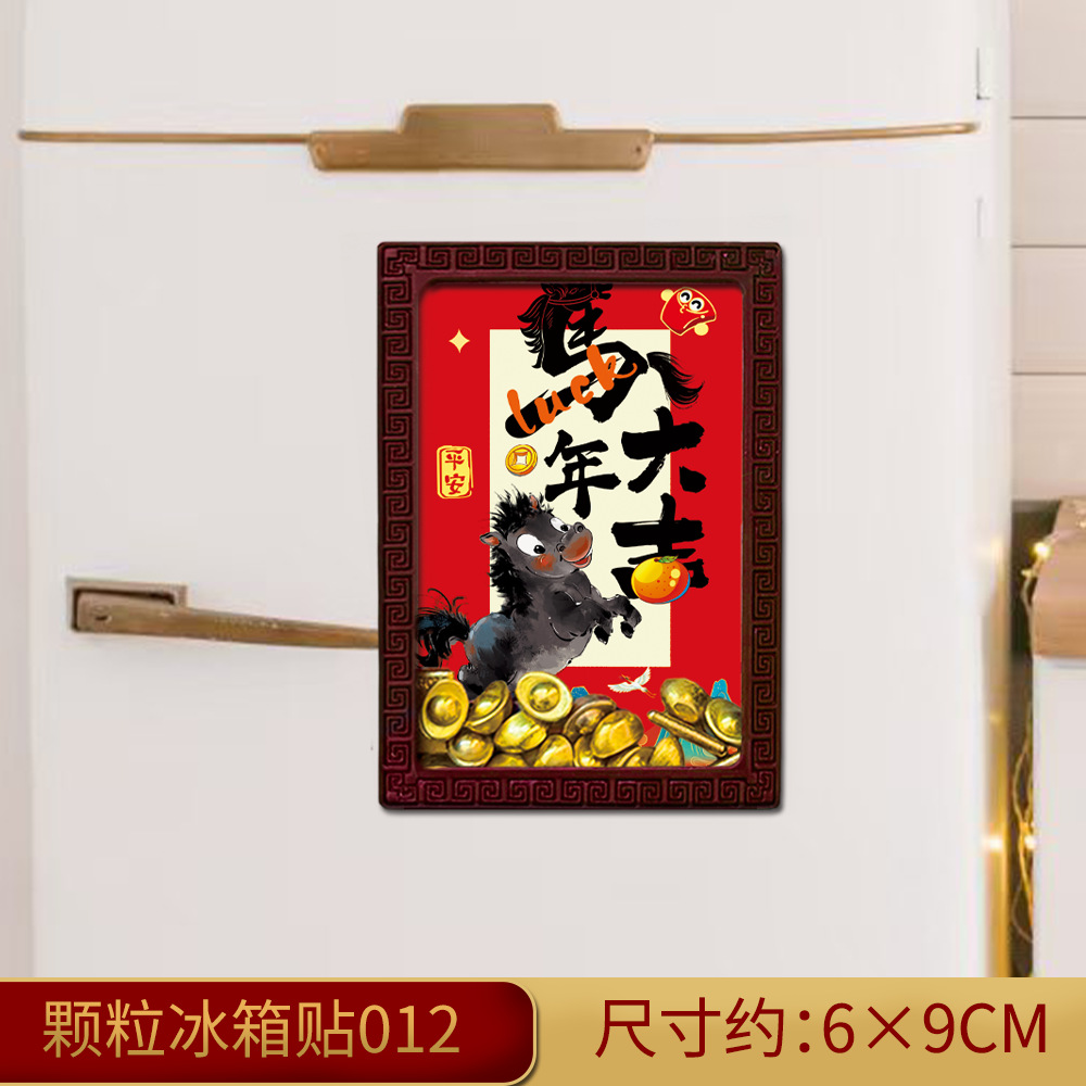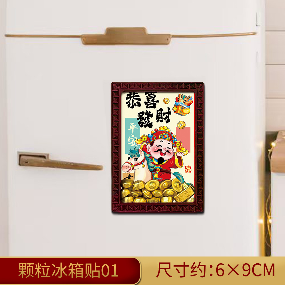 Year of the Horse, God of Wealth, Gold Ingot, Refrigerator Sticker with Chinese Style, Three Dimensional Creative Celebration, Cultural and Creative New Year, Magnetic Decorative Sticker