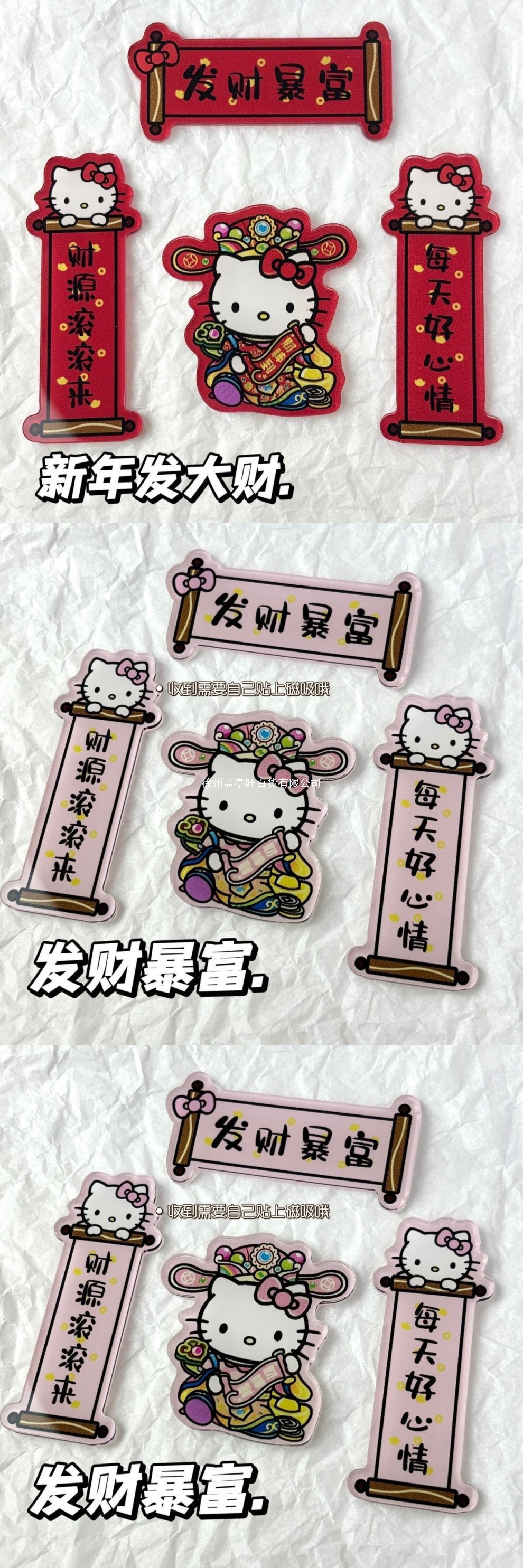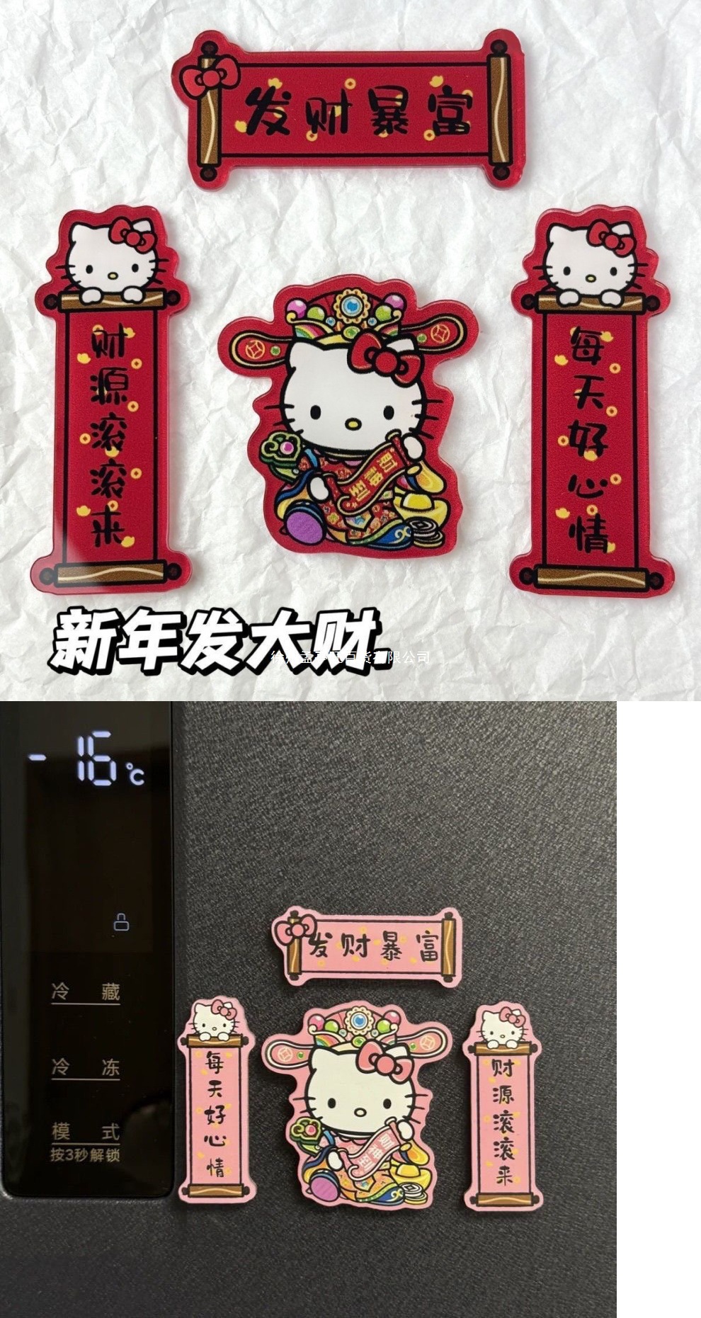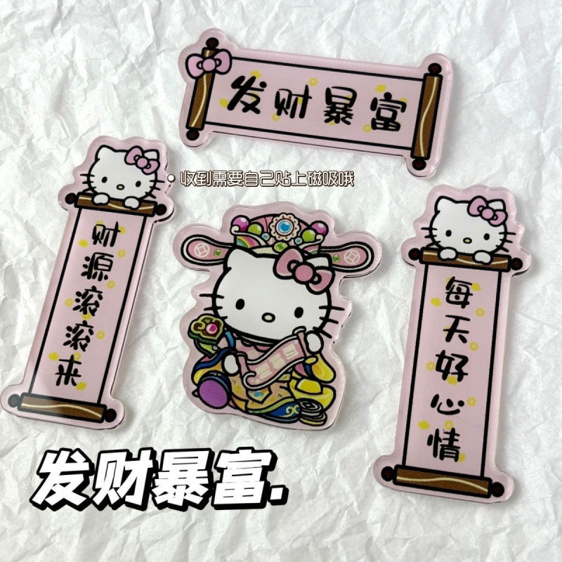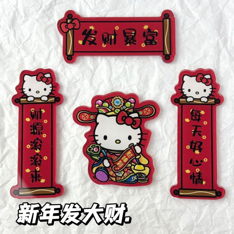 Kitty Cat God of Wealth Recruits Wealth Refrigerator Sticks Magnetic Acrylic Couplets Creative Happy New Year Mini Couplets Ins