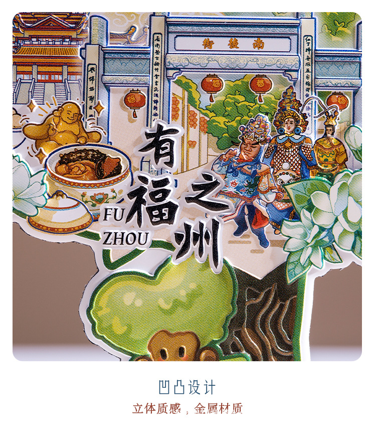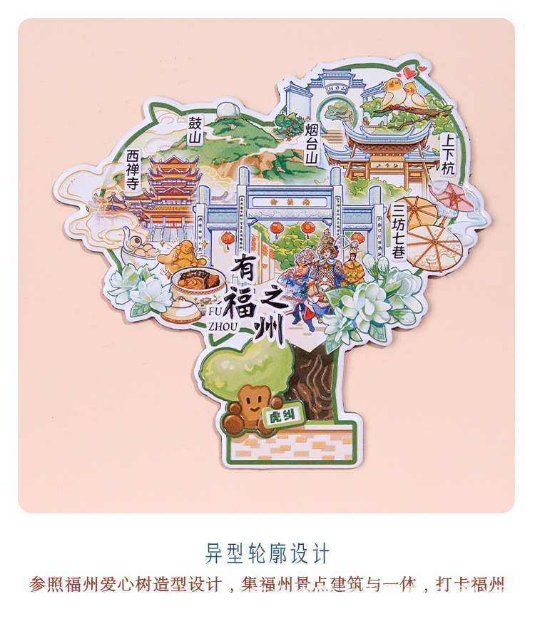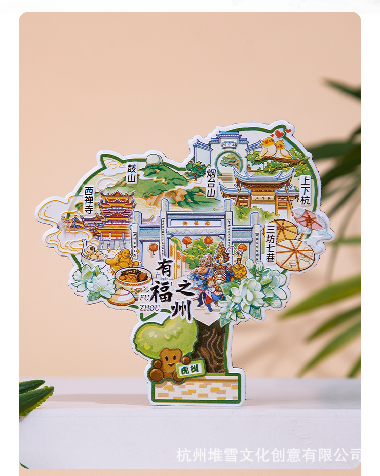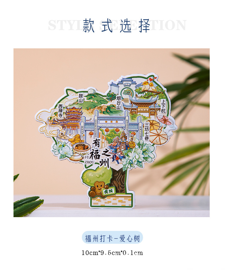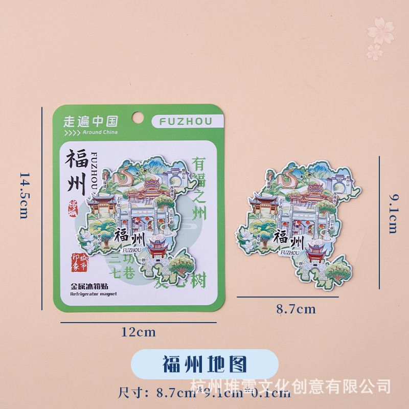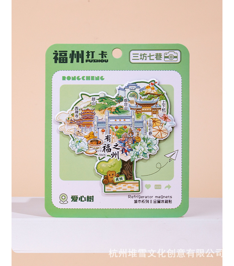 Fuzhou Metal Refrigerator Sticks Three Fang Seven Lane Drum Tower Love Tree Up and Down Hangzhou Cultural and Creative Tourism Check in Cultural and Creative Souvenirs
