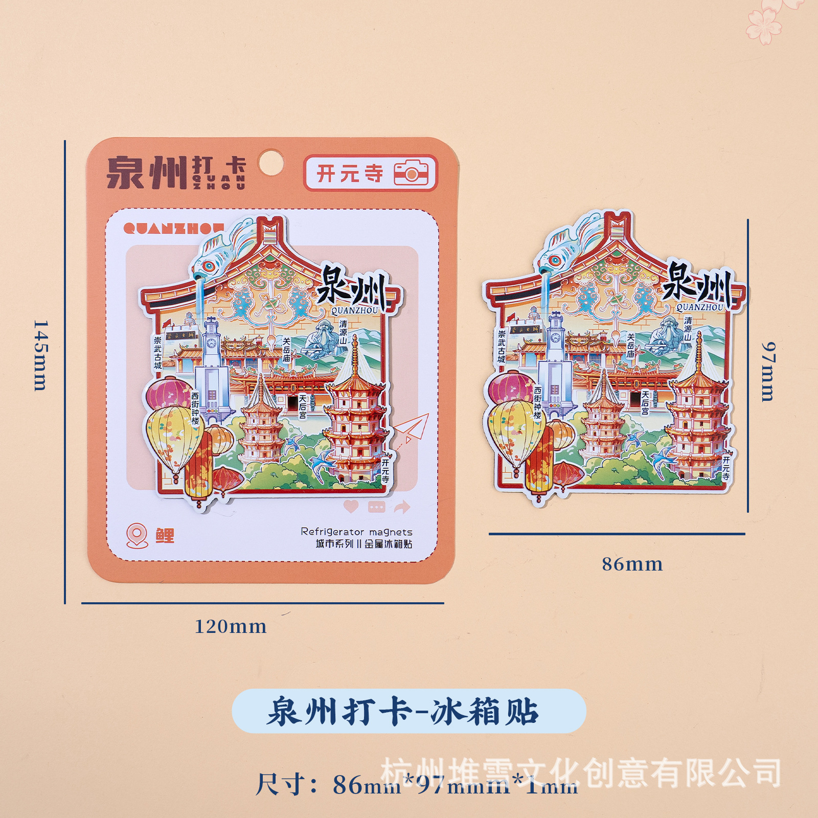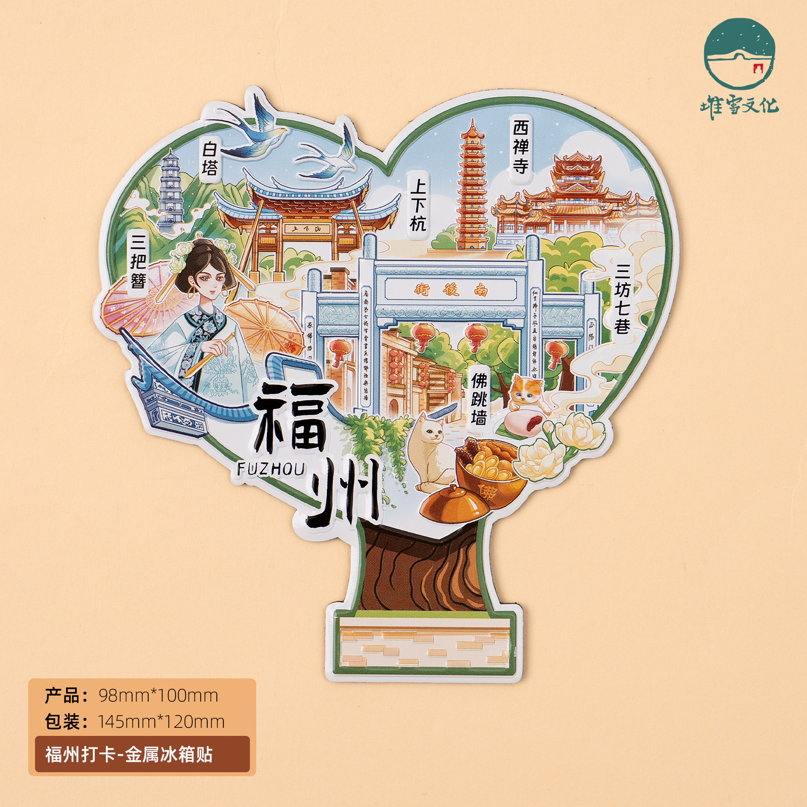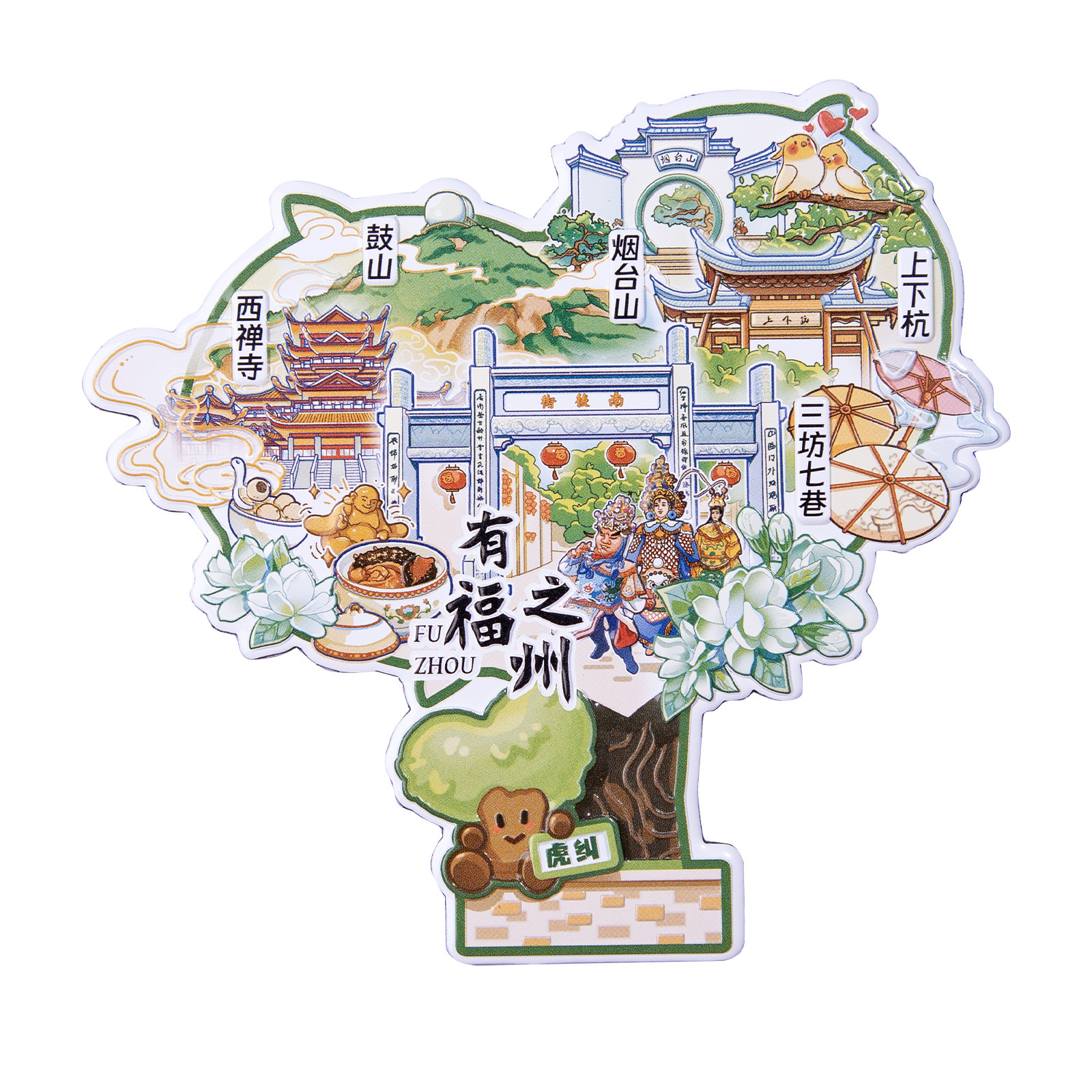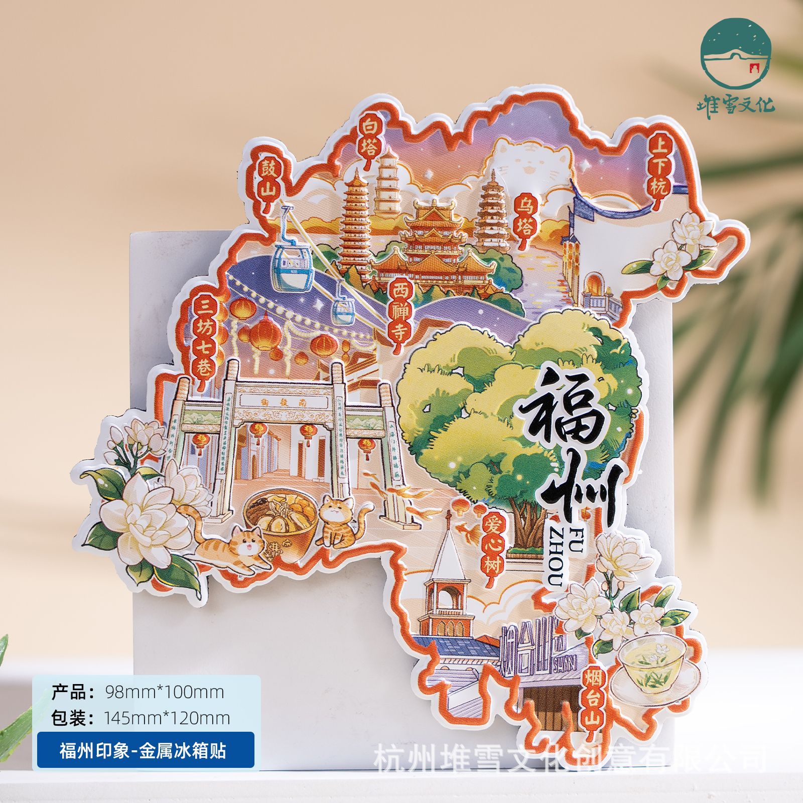 Fuzhou Metal Refrigerator Sticks Three Fang Seven Lane Drum Tower Love Tree Up and Down Hangzhou Cultural and Creative Tourism Check in Cultural and Creative Souvenirs