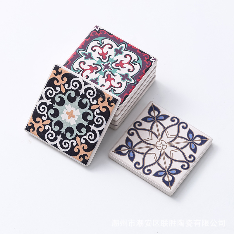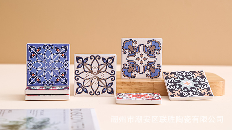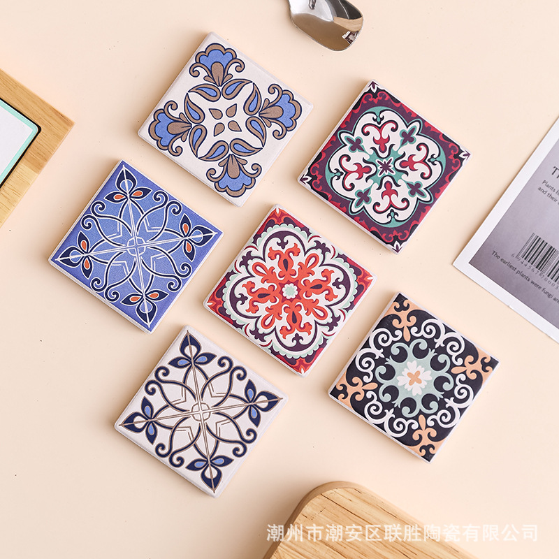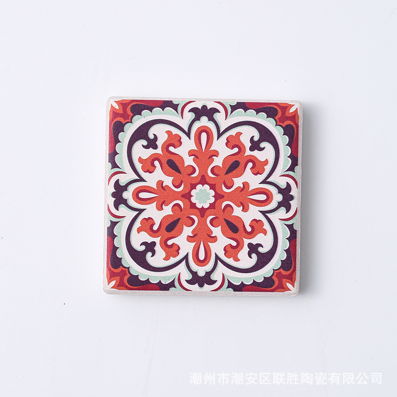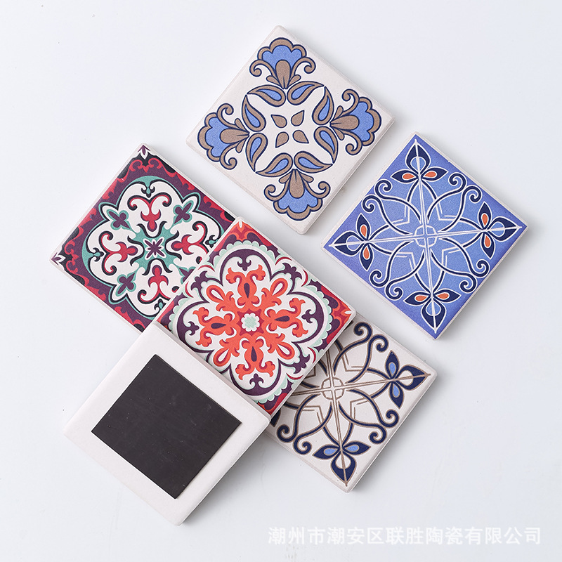 5.7cm retro tile ceramic refrigerator sticker wholesale DIY ethnic style UV printing Amazon cross-border square creative
