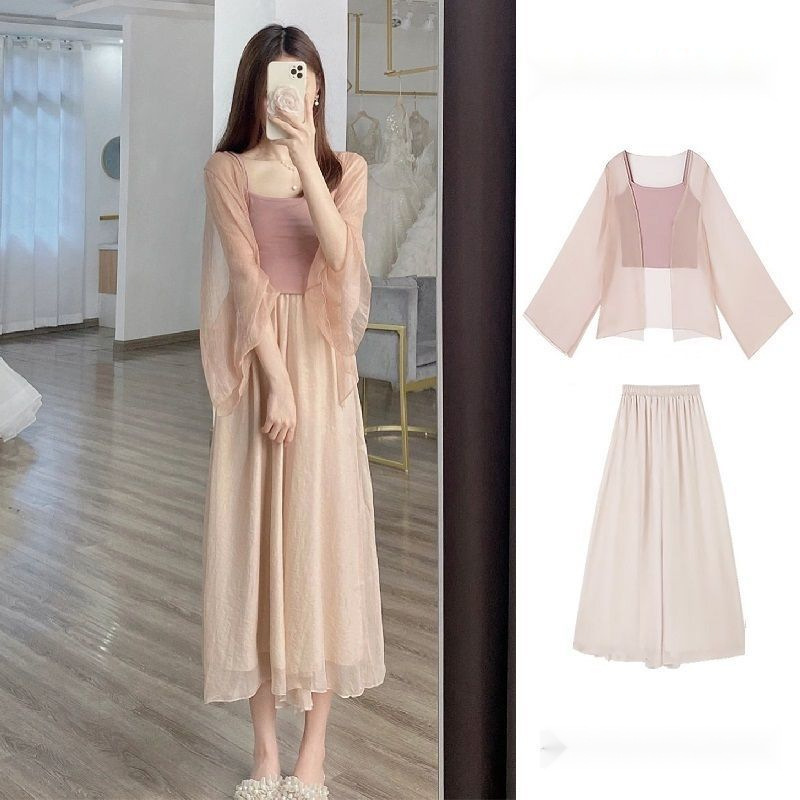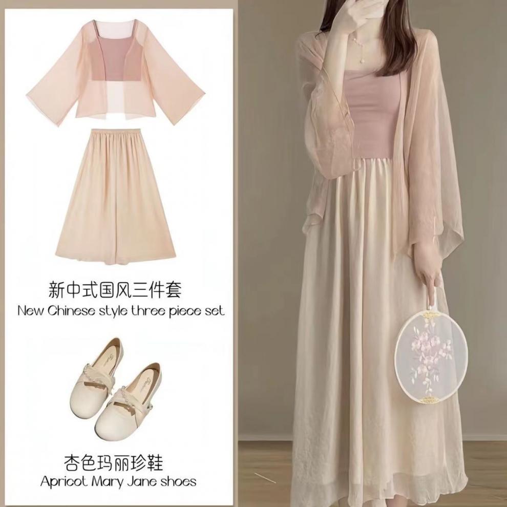 Маленький человек, высокий летний костюм, нежный летний набор из трех китайских ветряных платьев, клейкий ветер, соленый костюм, солнцезащитный костюм