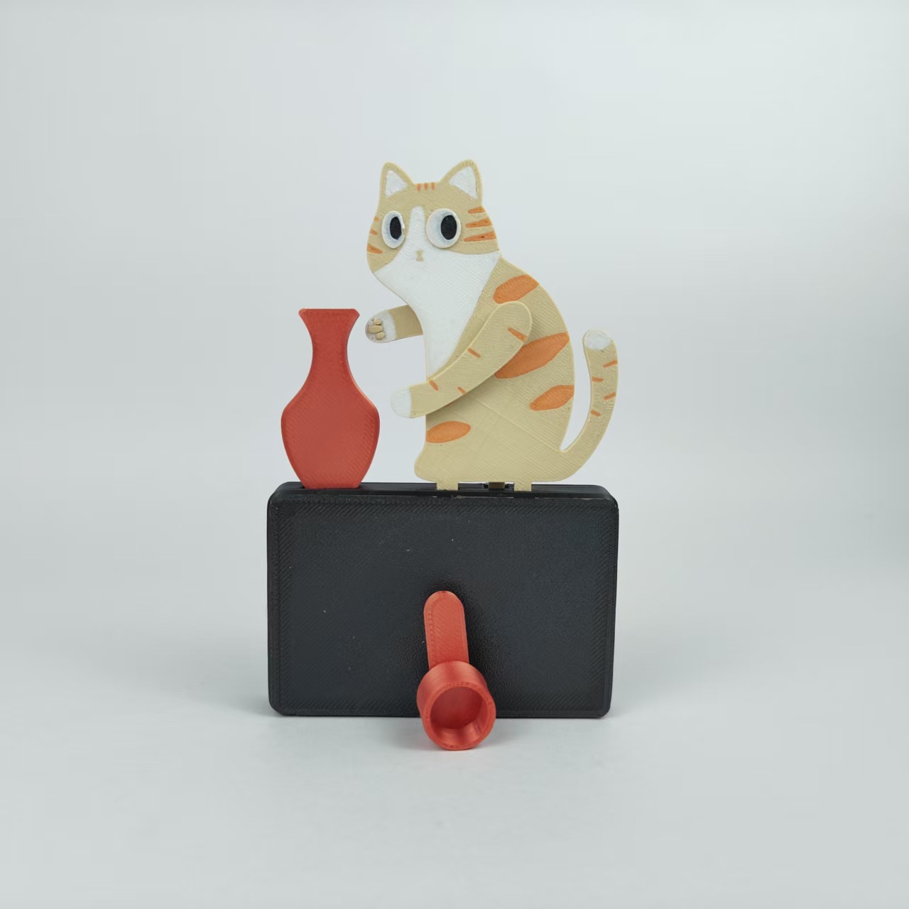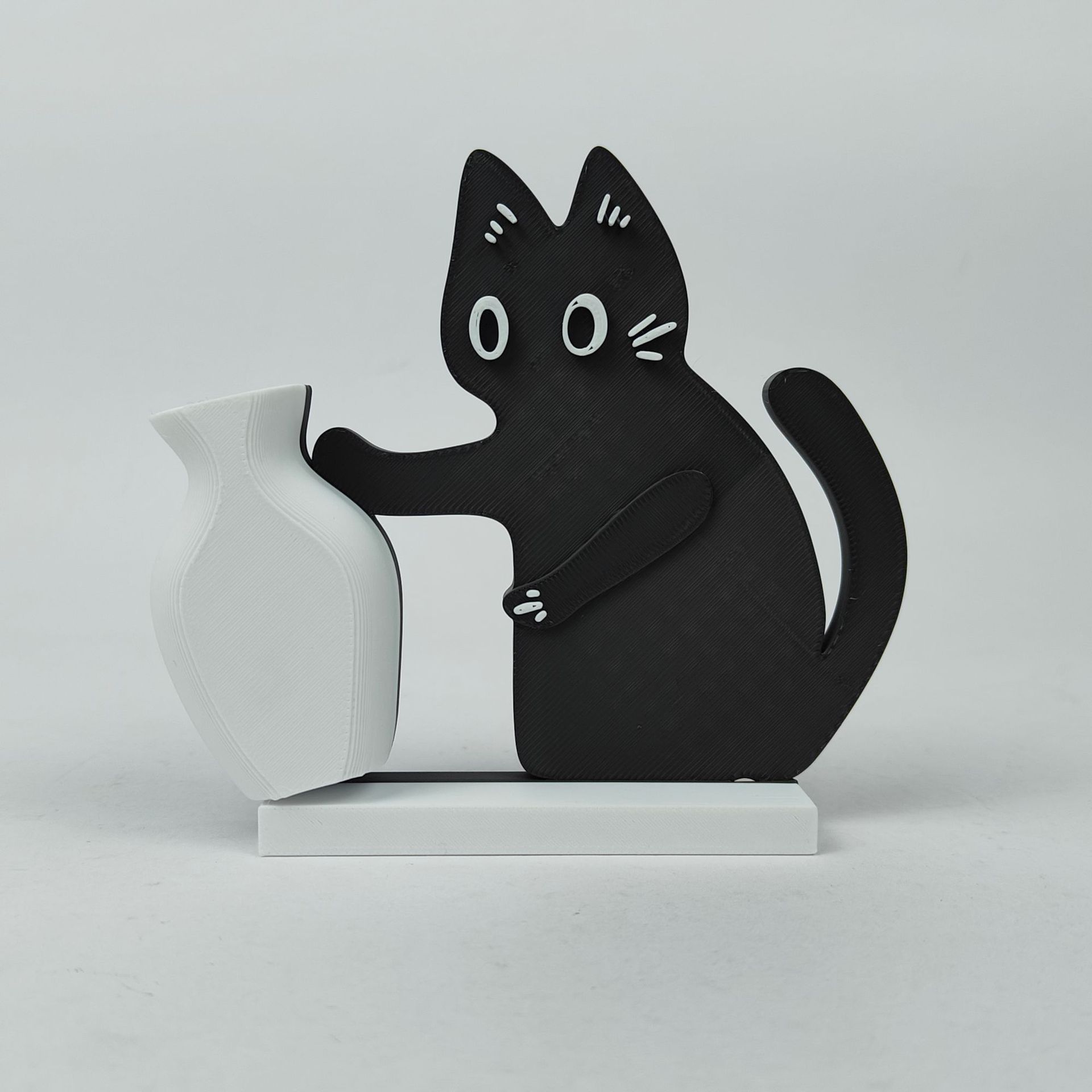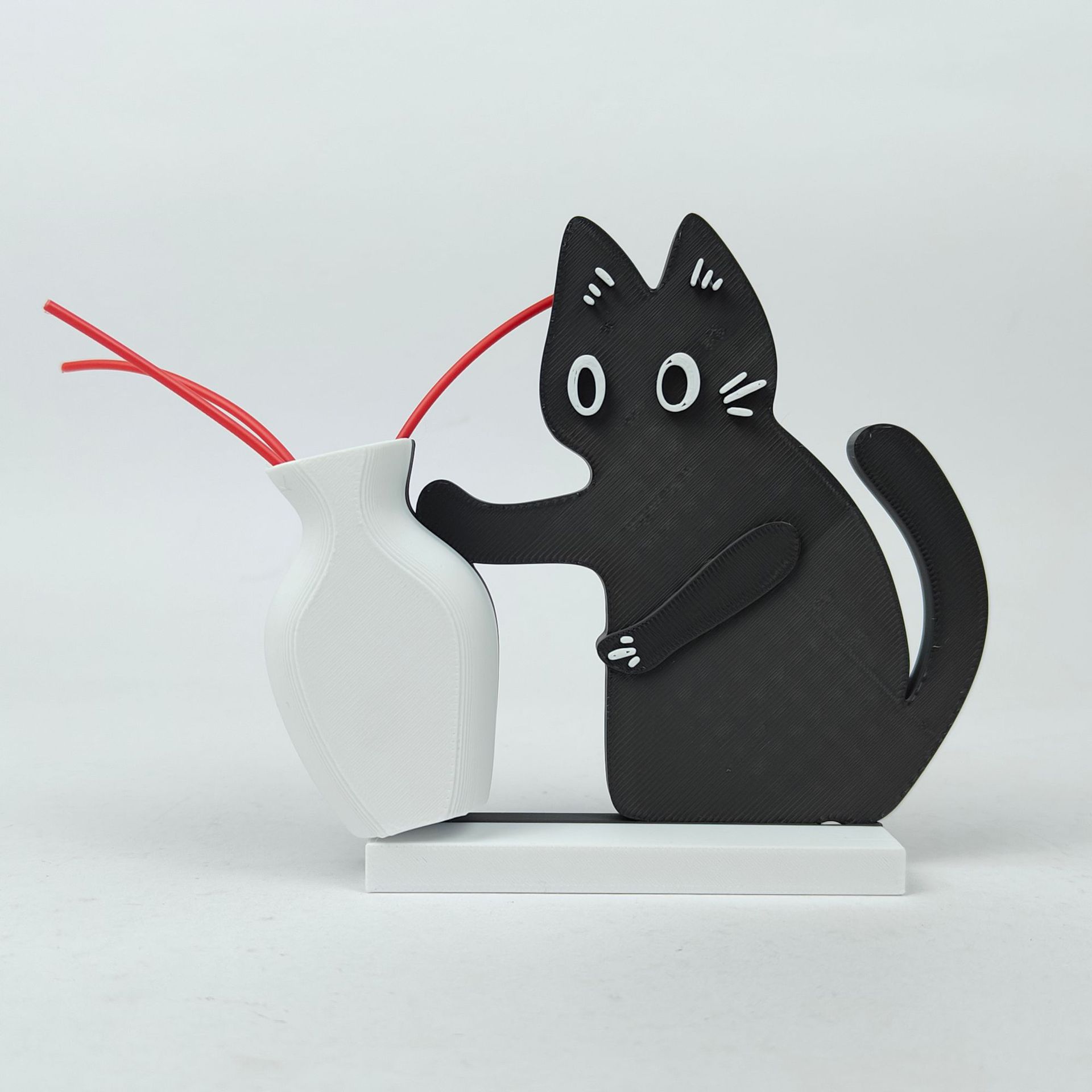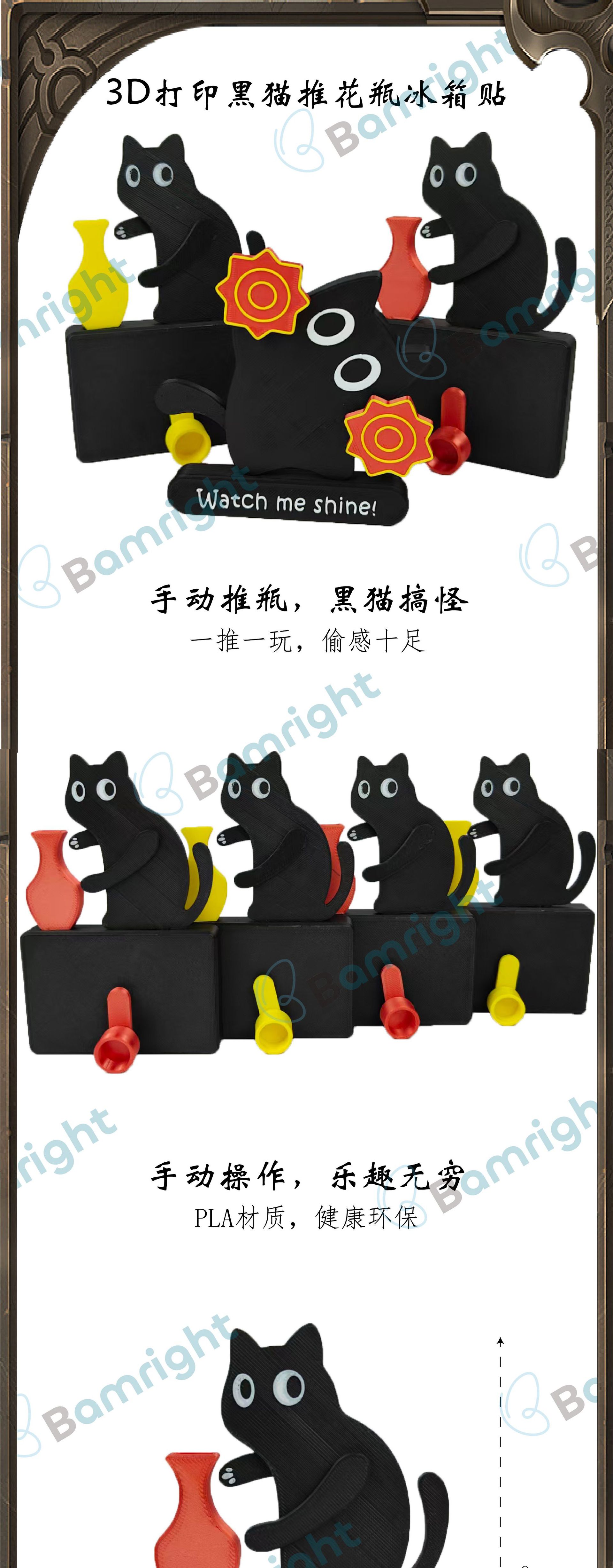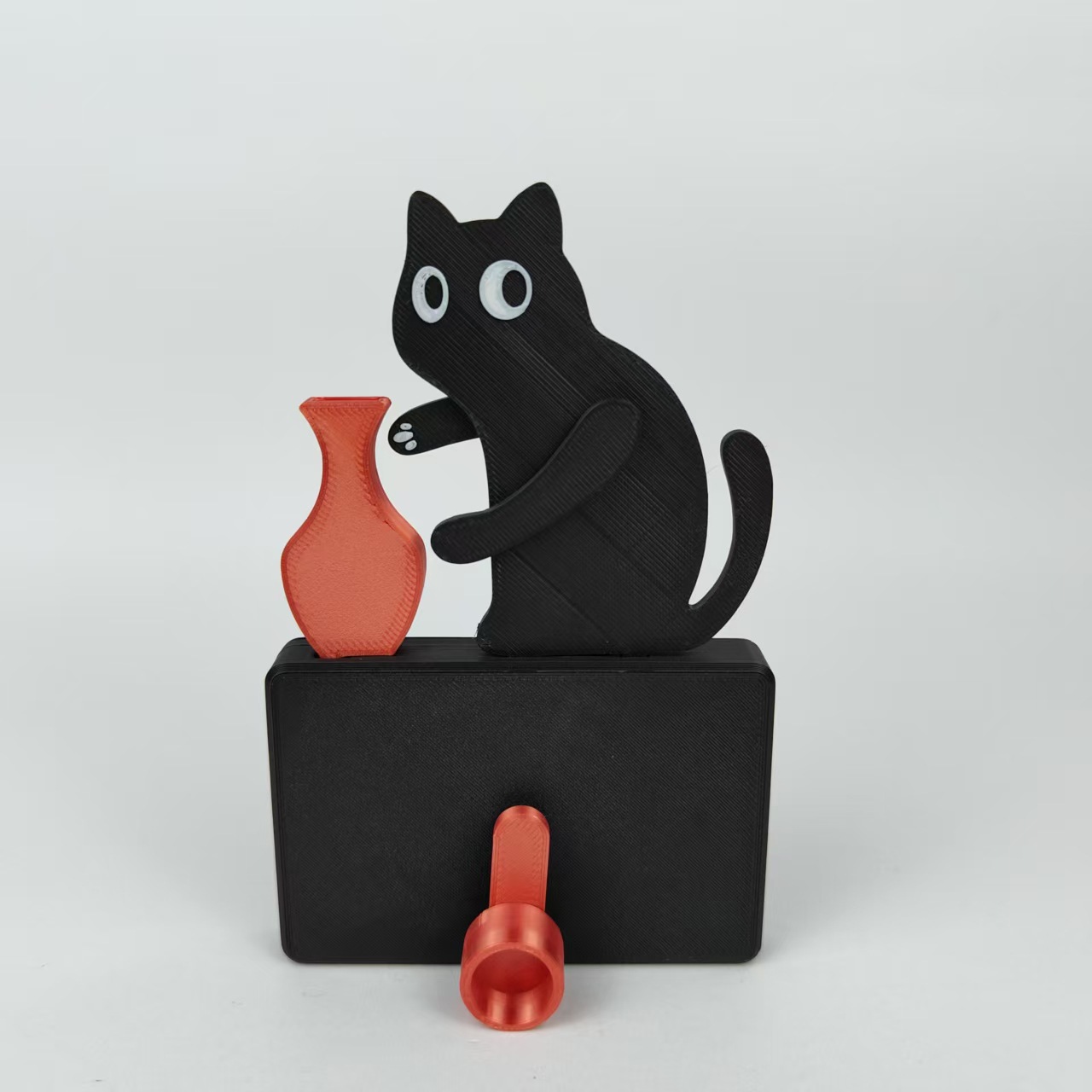 3D - печать Маленькая черная кошка толкает вазу с высоким цветом Красная книга Взрывная магнитная соска холодильник украденный полный симпатичный маятник