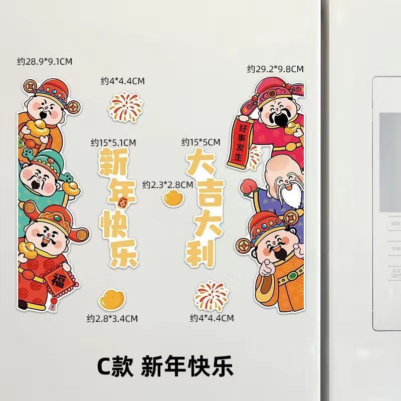 财神爷冰箱贴个性创意新款福禄寿双开门冰箱面板贴乔迁之喜装饰贴