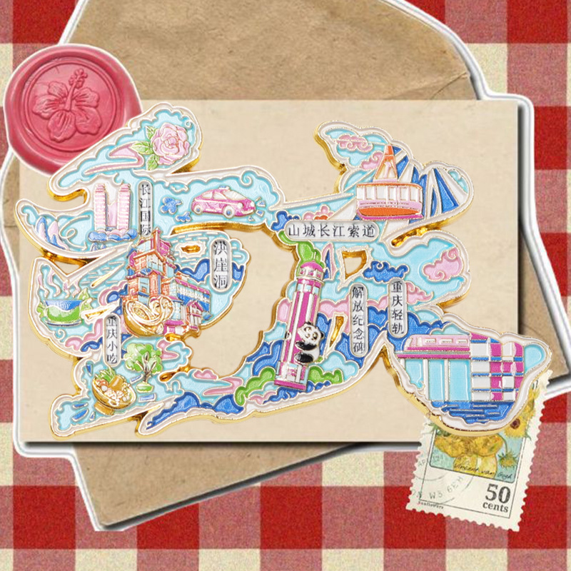 National calligraphy, painting, cultural and creative refrigerator stickers, travel souvenirs, metal cities, Chongqing, Shanghai, Baoding, spot wholesale