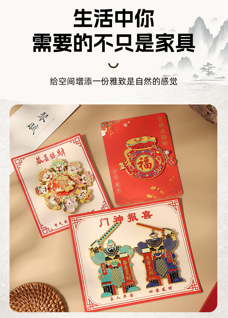 China-Chic Fulai Operation Refrigerator Sticker Creativity Lucky Lucky Lucky Bag Refrigerator Sticker Household Decoration Door God Refrigerator Sticker