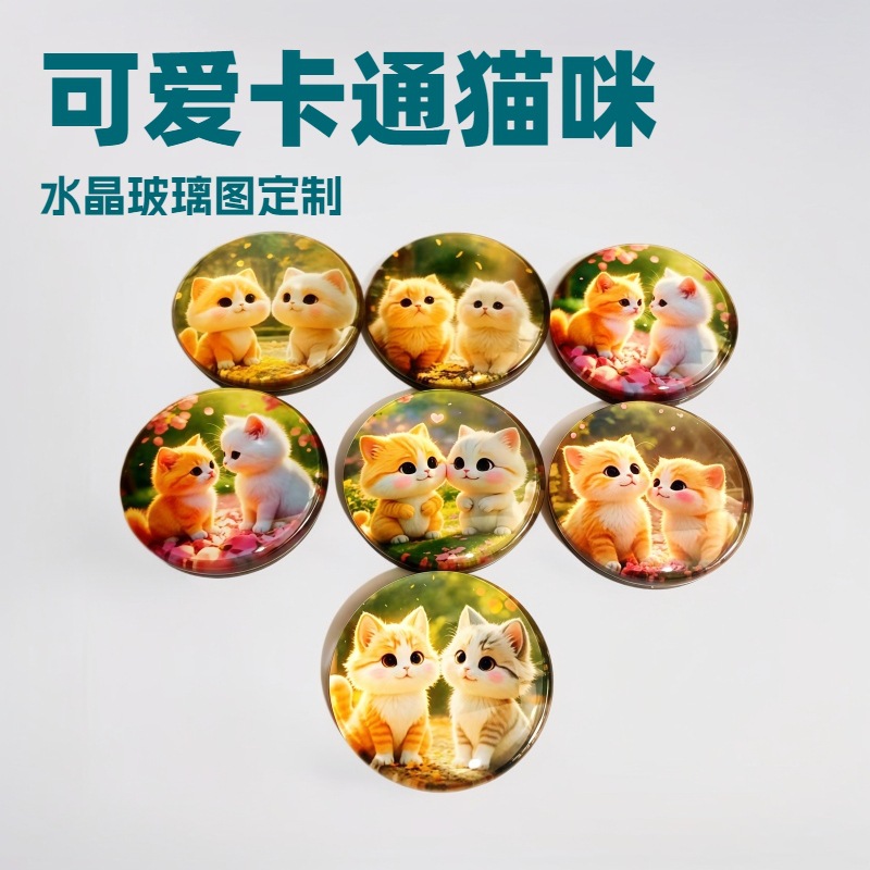Manufacturer Love Cat Crystal Glass Refrigerator Sticker Creative Cartoon Time Gemstone DIY Souvenir Magnetic Sticker Crystal