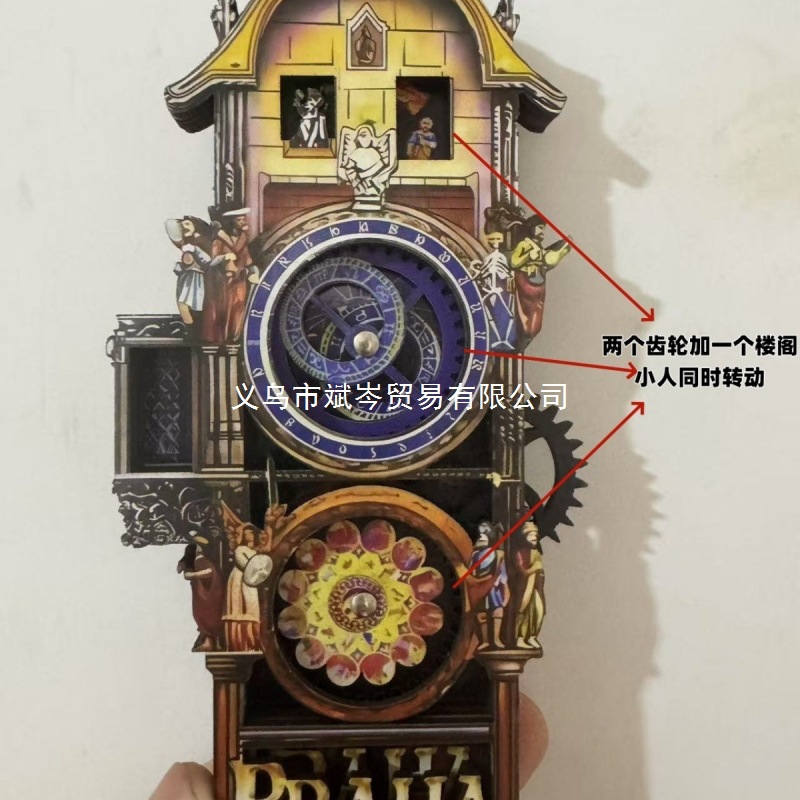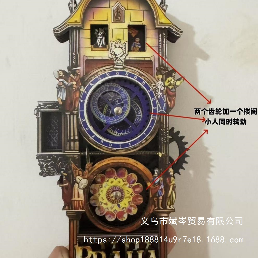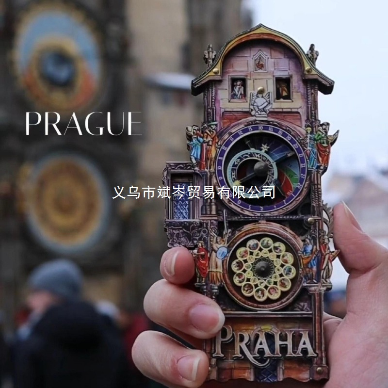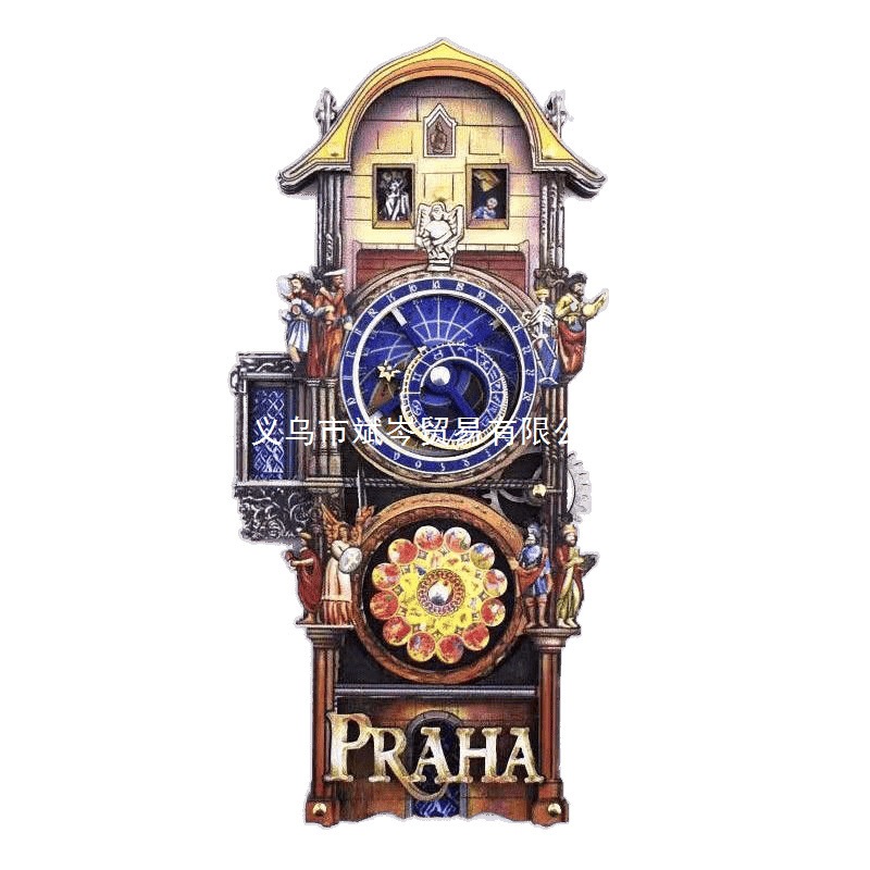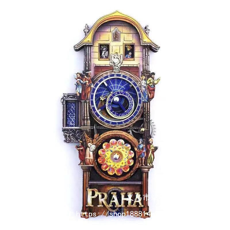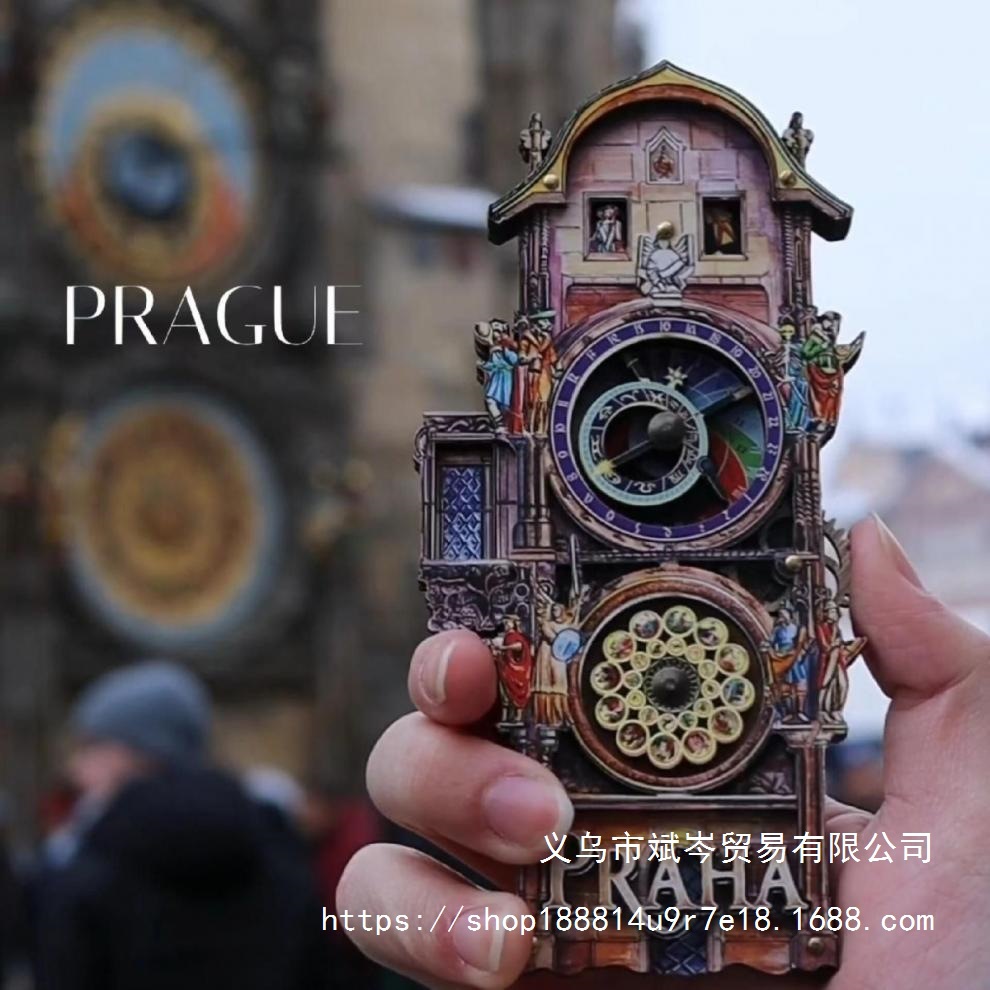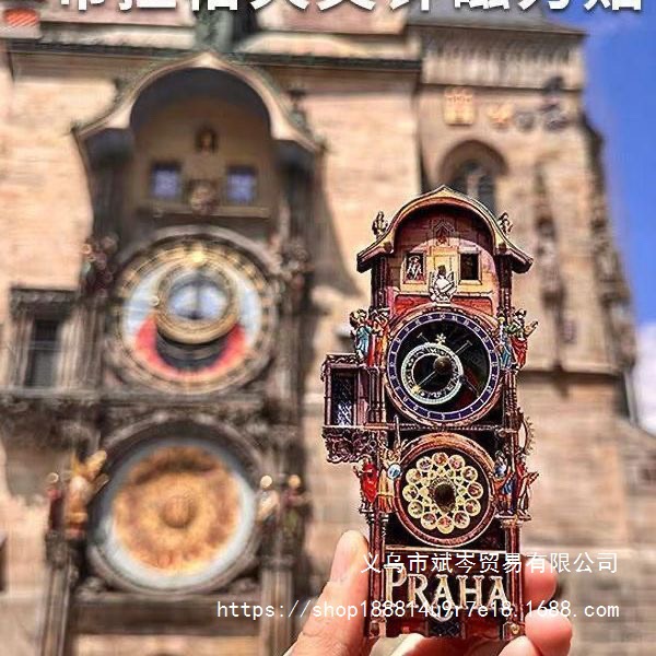 Tourist souvenir souvenir souvenir souvenir Macau style Czech Republic Prague Square astronomical clock refrigerator sticker wooden three turn