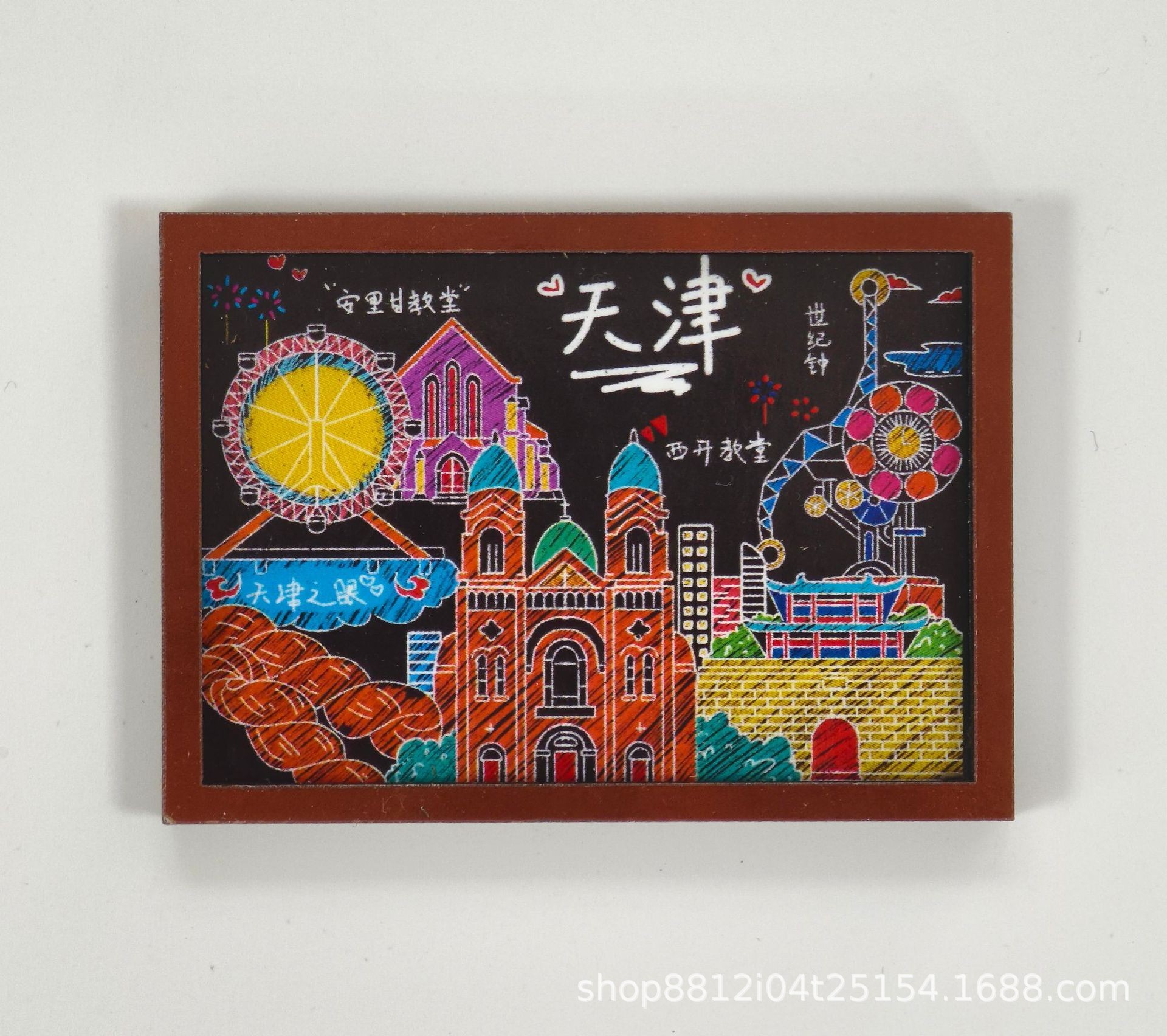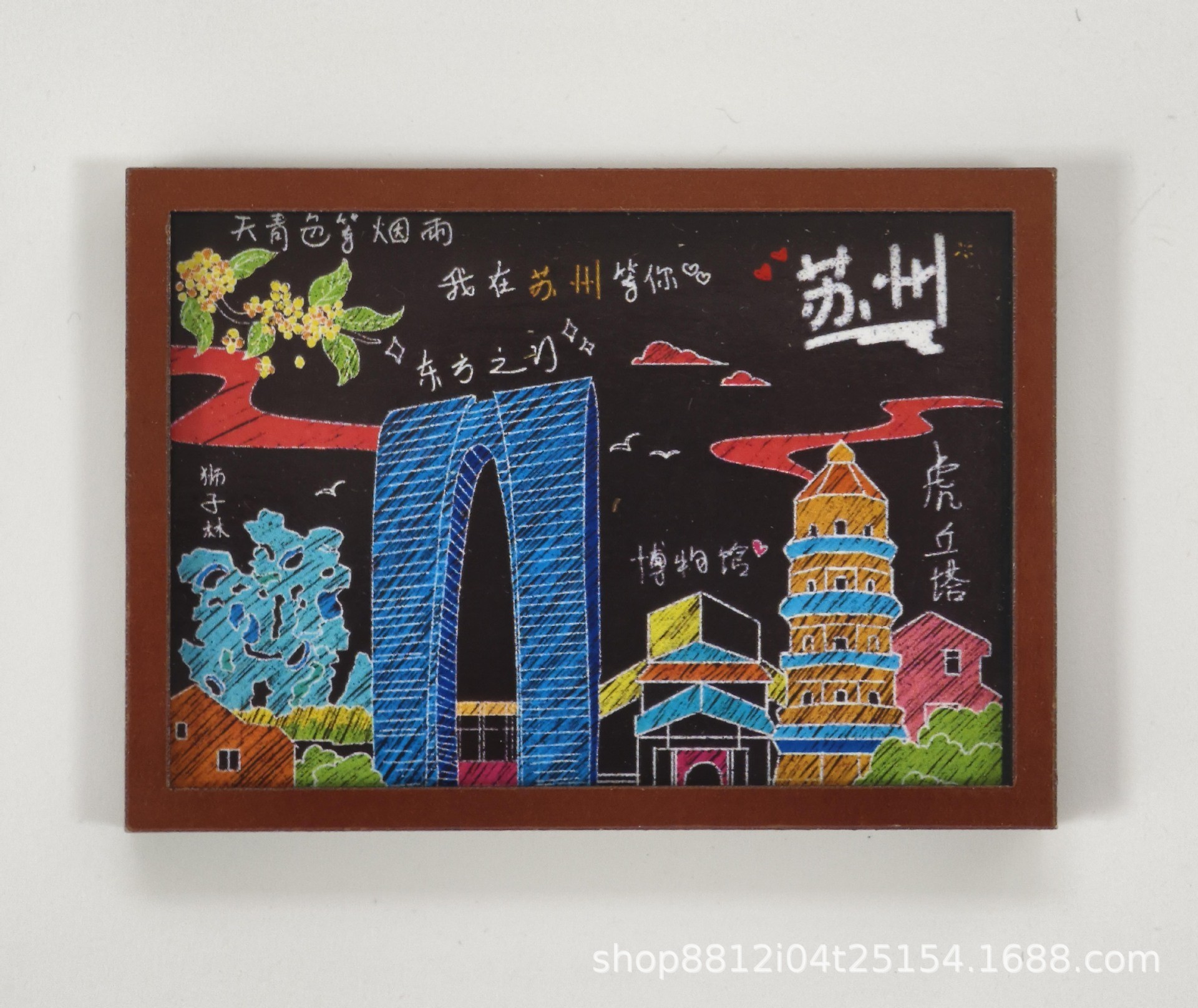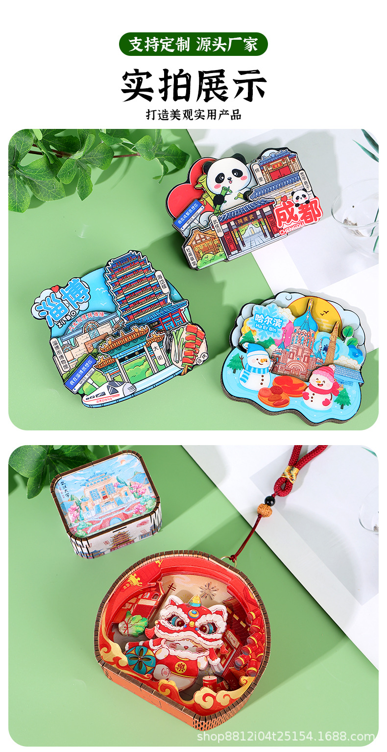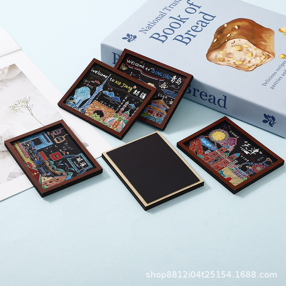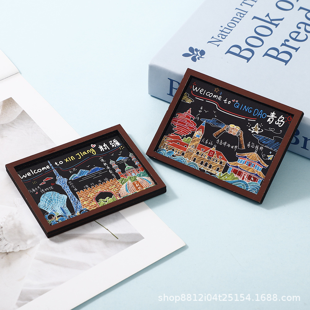 Spot wooden small blackboard cultural and creative refrigerator sticker Customized Chinese city China-Chic travel Qingdao creative soft magnetic sticker