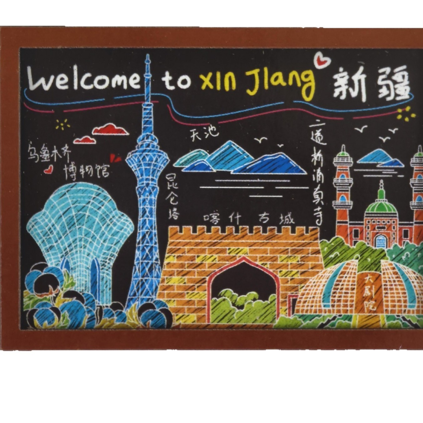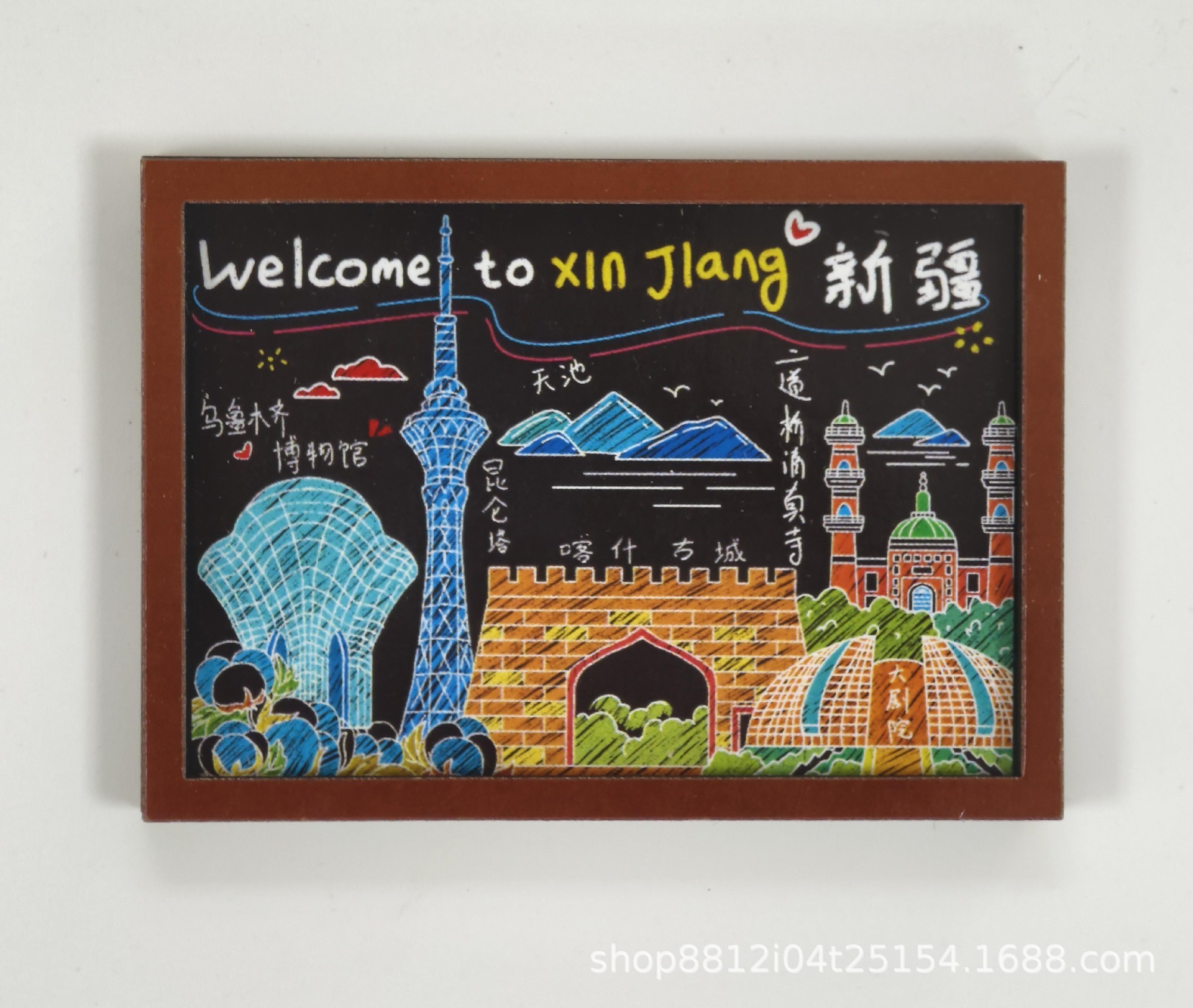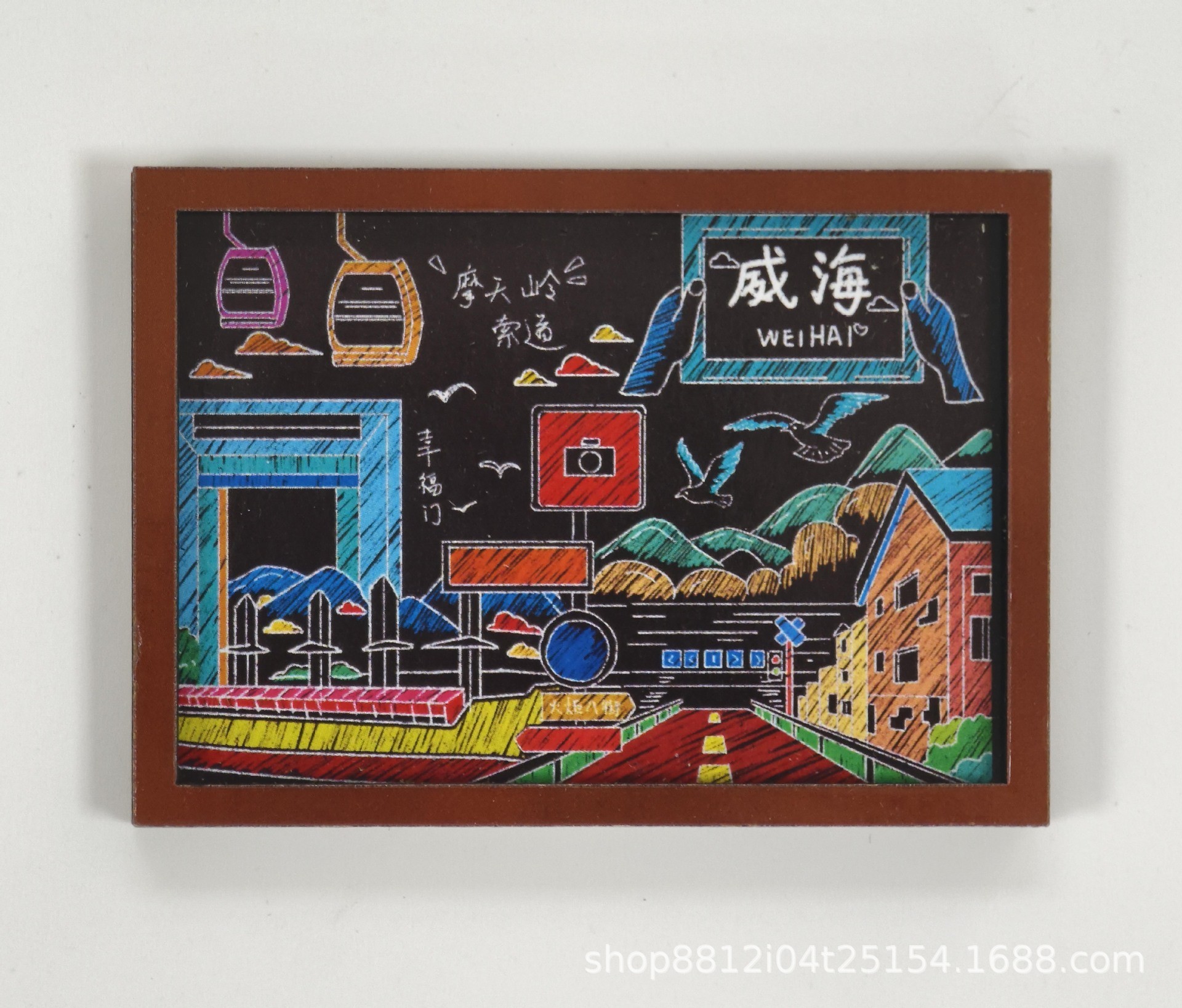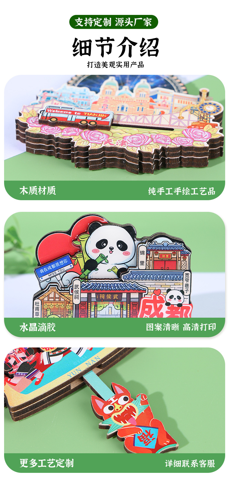 Spot wooden small blackboard cultural and creative refrigerator sticker Customized Chinese city China-Chic travel Qingdao creative soft magnetic sticker