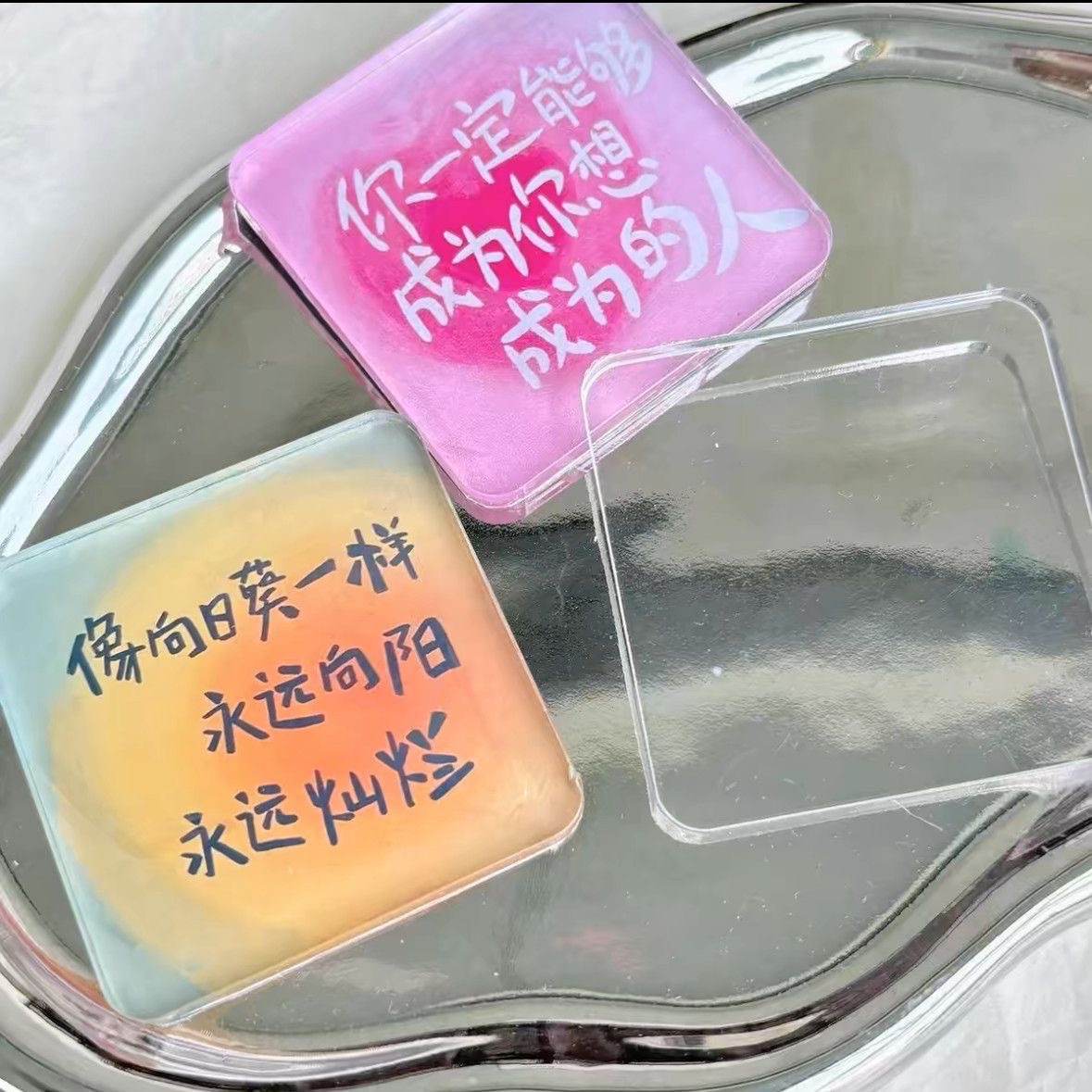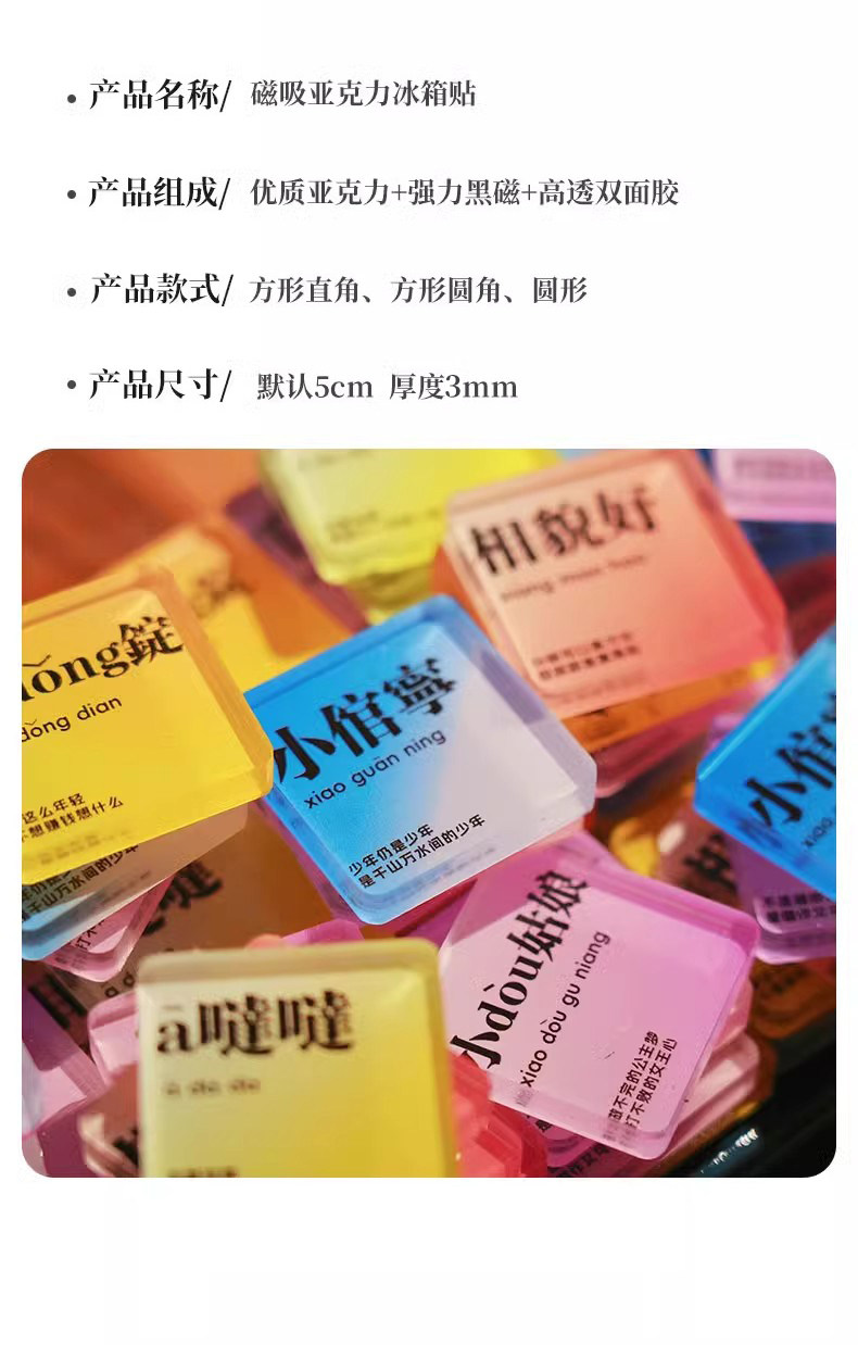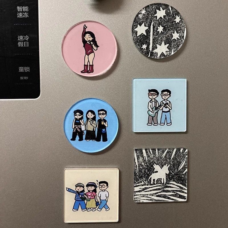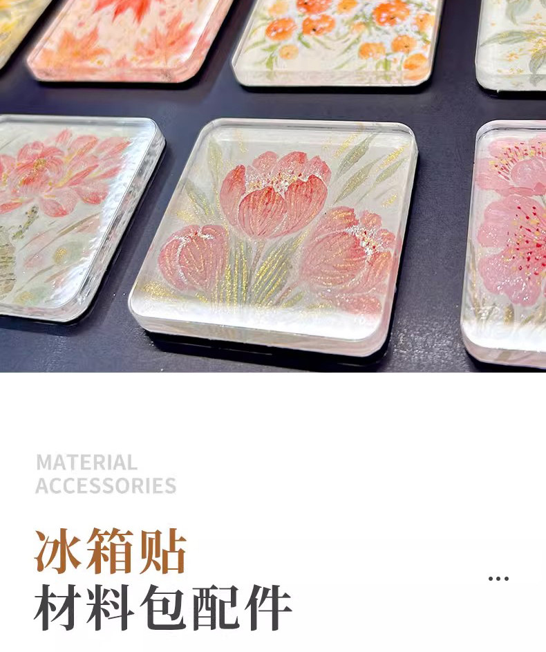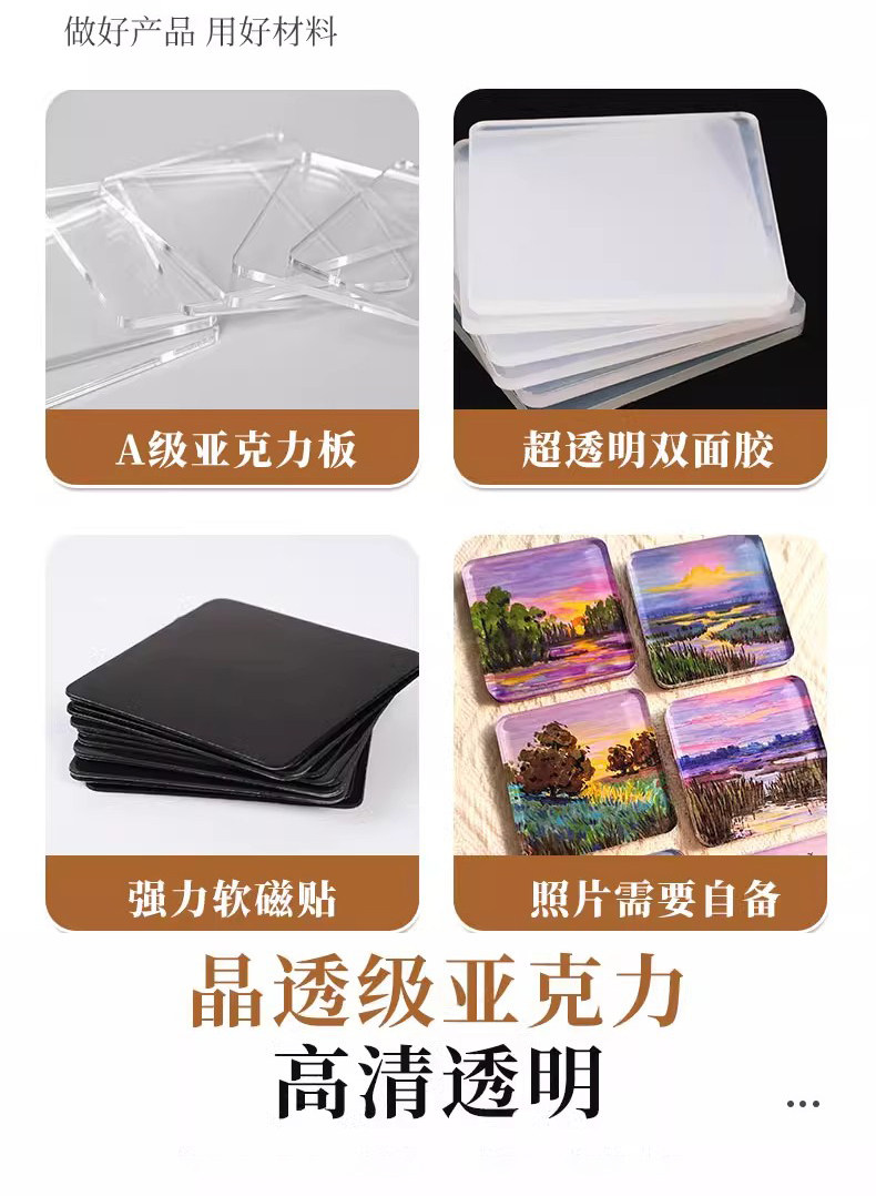 自制冰箱贴亚克力diy手四方透明方砖ins正方形带磁片圆形材料包