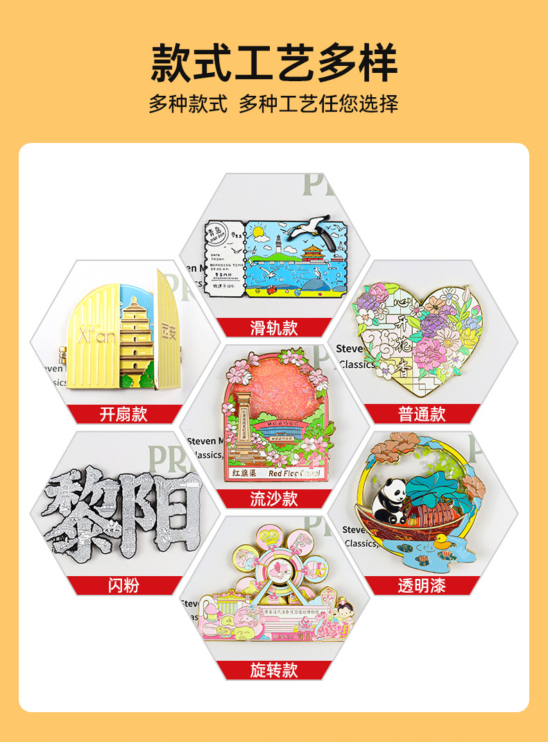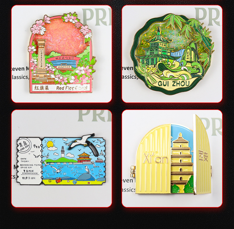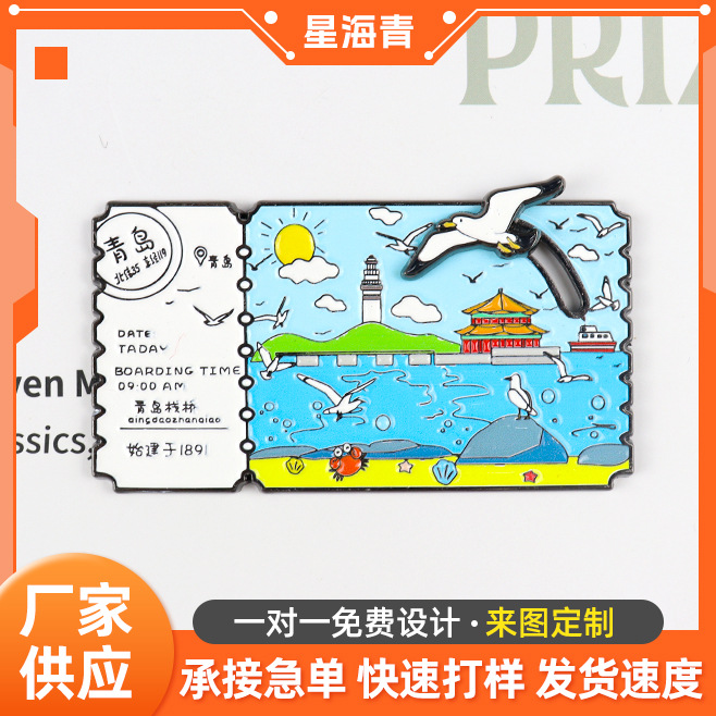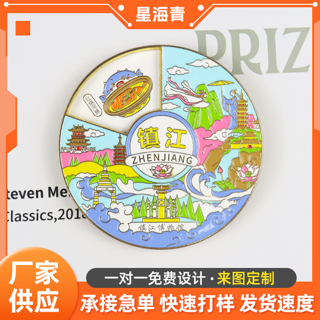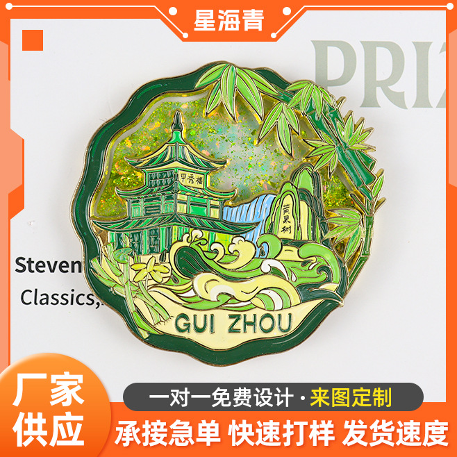 Customized metal refrigerator sticker, flowing sand style, urban cartoon creative commemorative coin, DIY magnetic attraction, scenic area refrigerator sticker customization