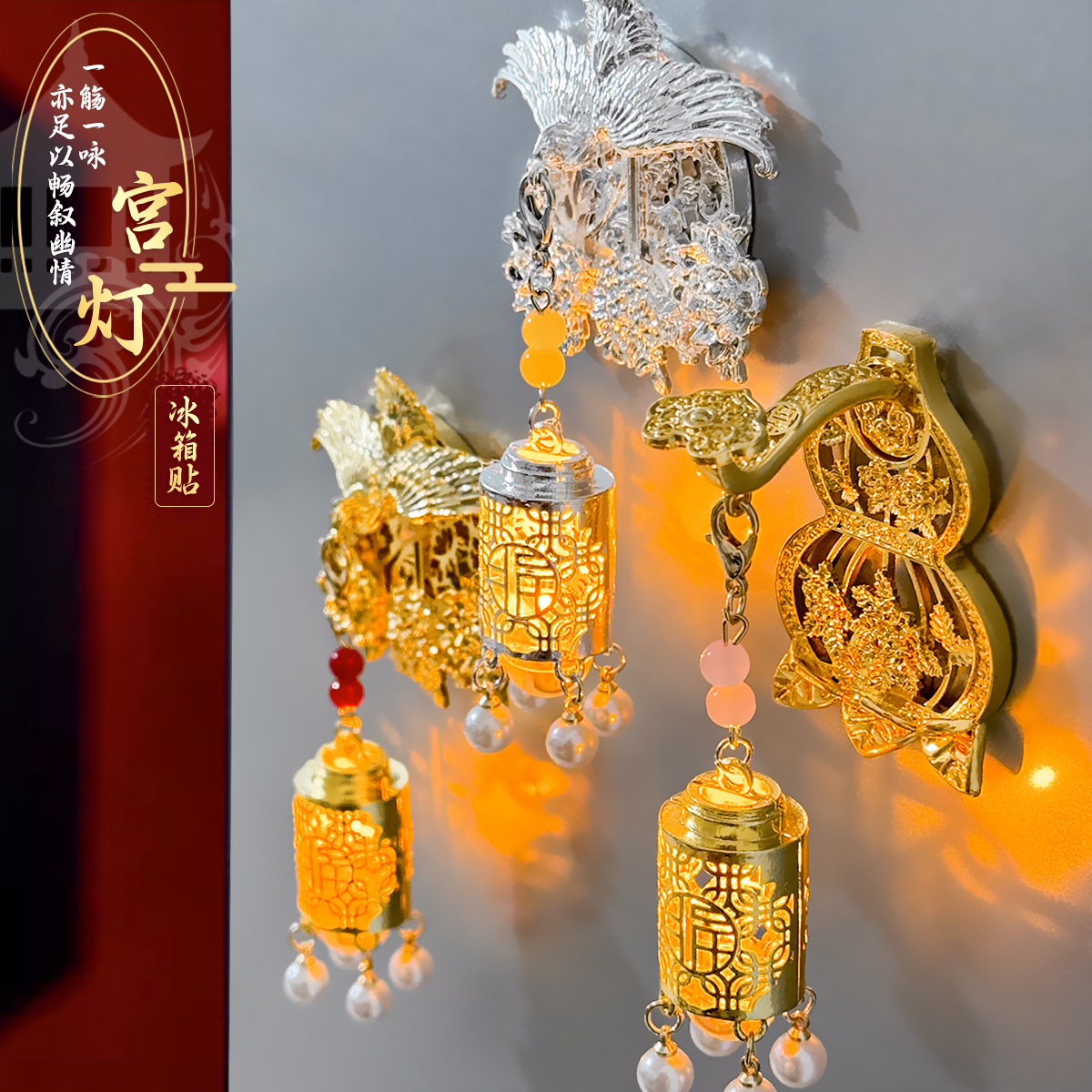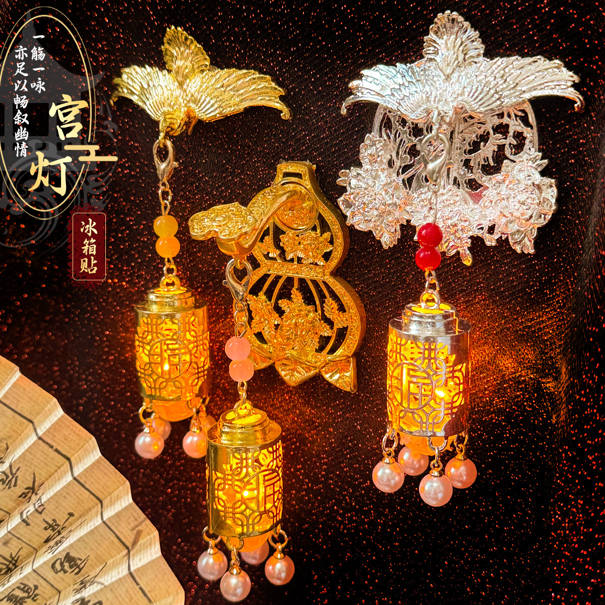 New Chinese style ancient style glowing palace lanterns, Forbidden City cultural and creative refrigerators, phoenix peony tassels, tourist souvenirs