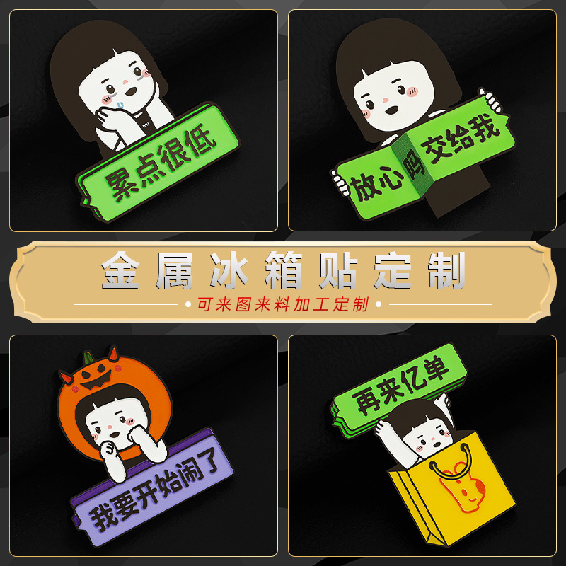 Customized metal refrigerator stickers, creative decompression, fun text, metal DIY shaped standing card puzzle keychain customization