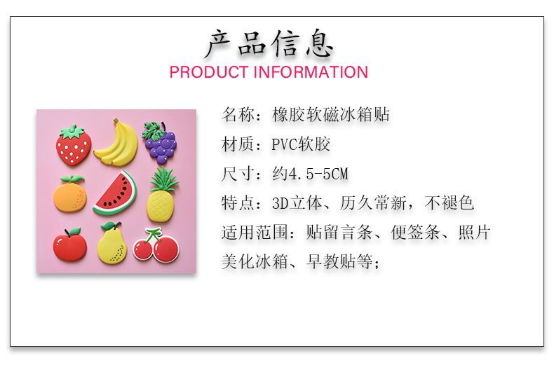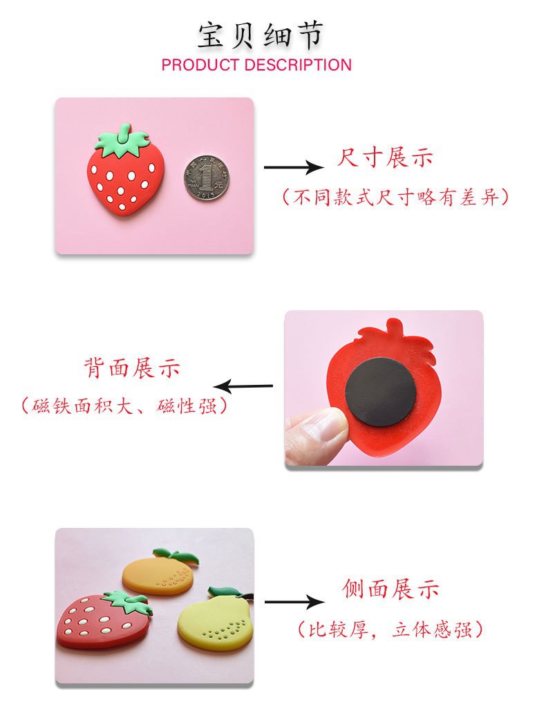 Cute cartoon fruit creative soft rubber magnetic stickers, early education stickers, magnetic stickers wholesale, children's creative magnetic suction stickers, refrigerator stickers