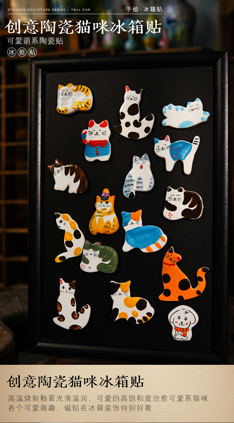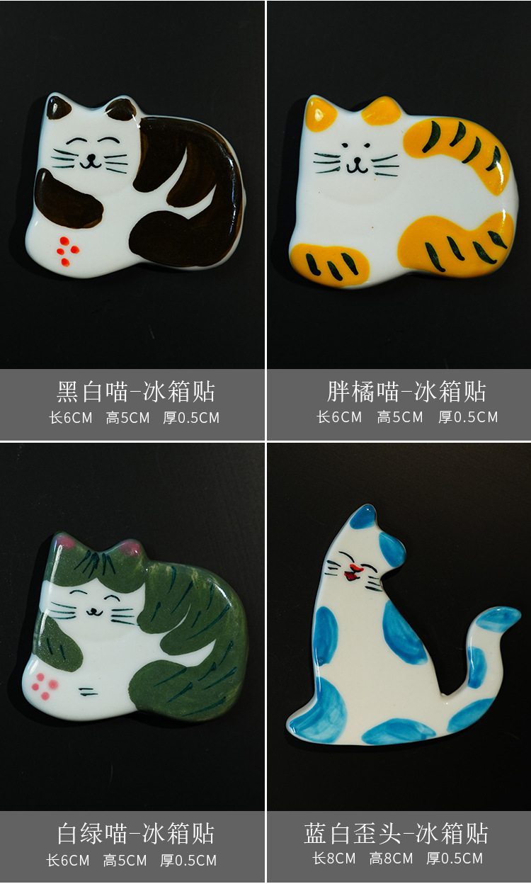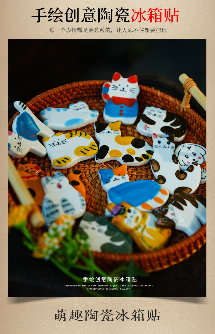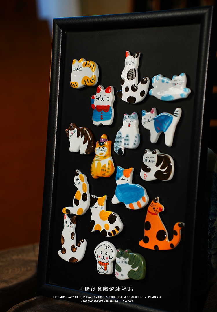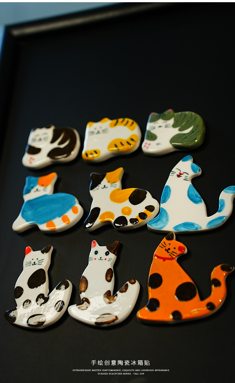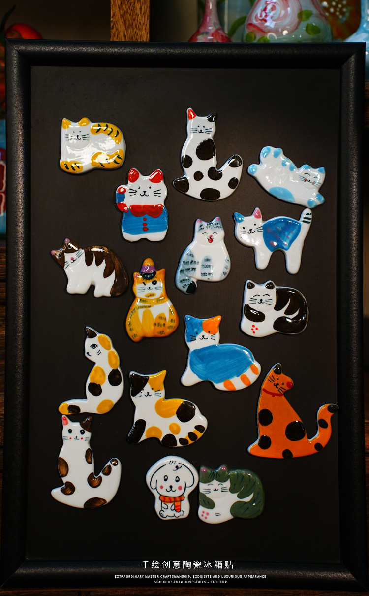 创意陶瓷猫咪冰箱贴装饰文创景德镇咖啡店工艺品定制批发创意手绘