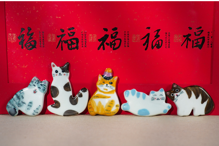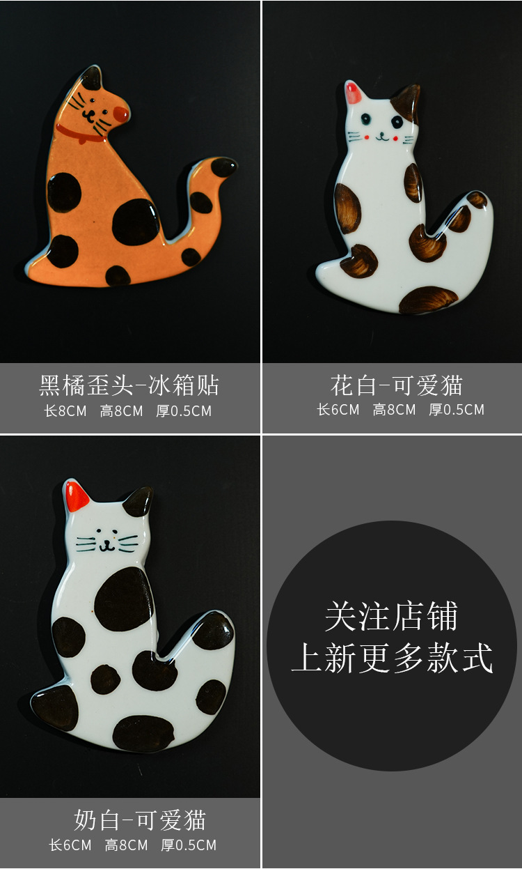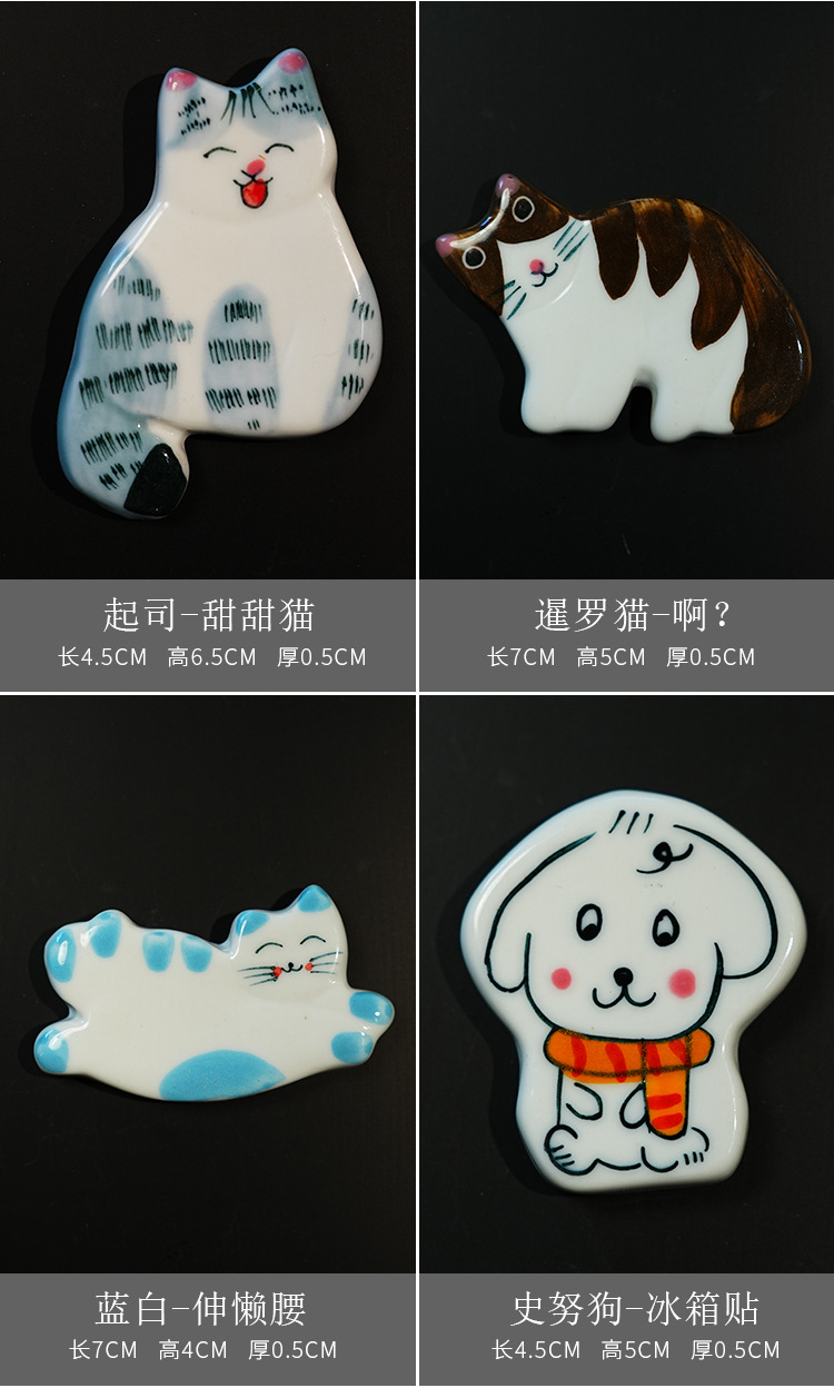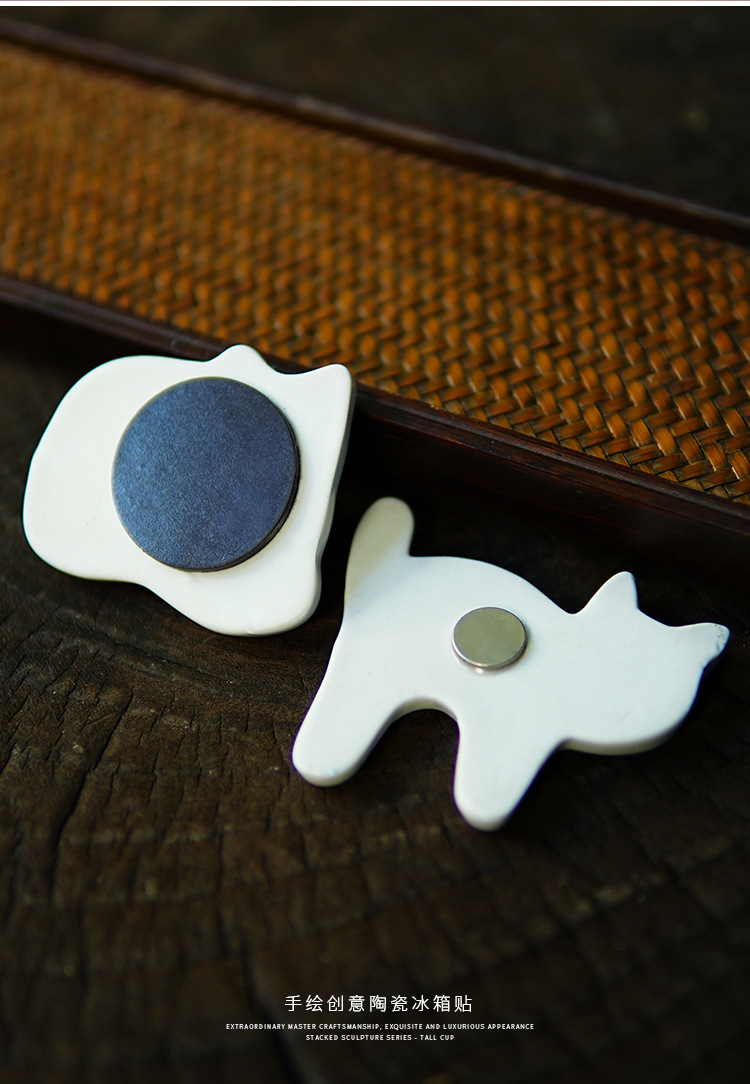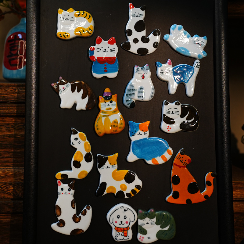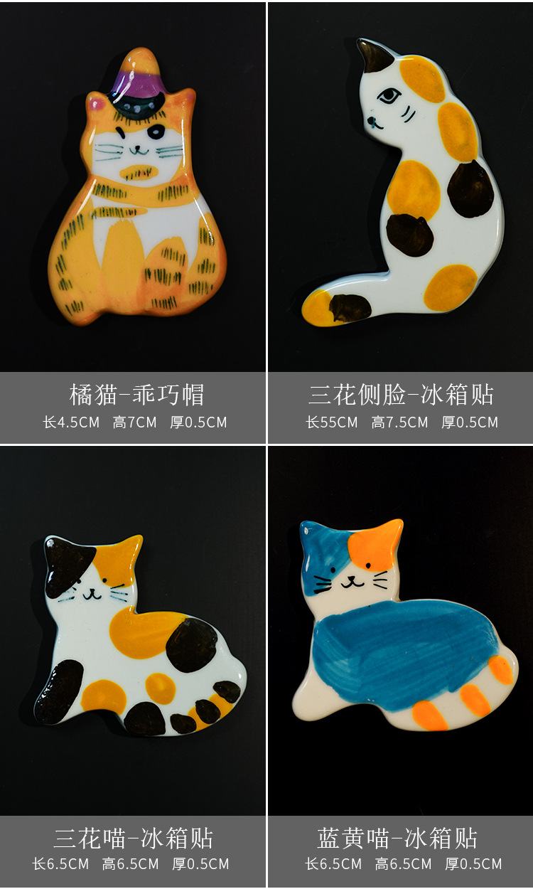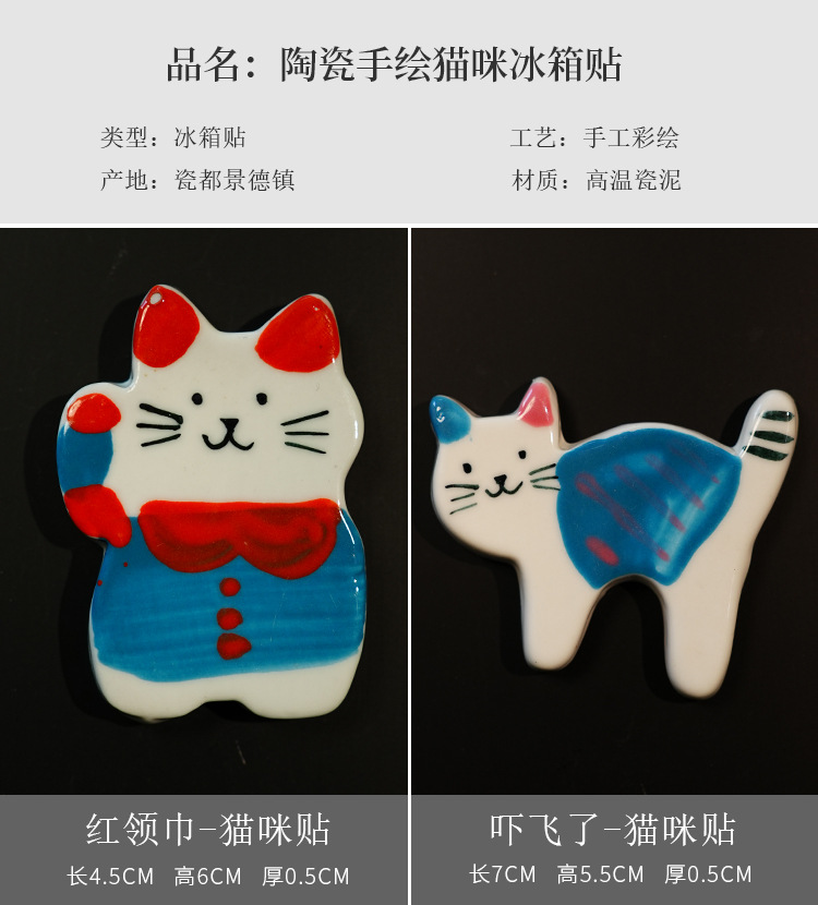 创意陶瓷猫咪冰箱贴装饰文创景德镇咖啡店工艺品定制批发创意手绘