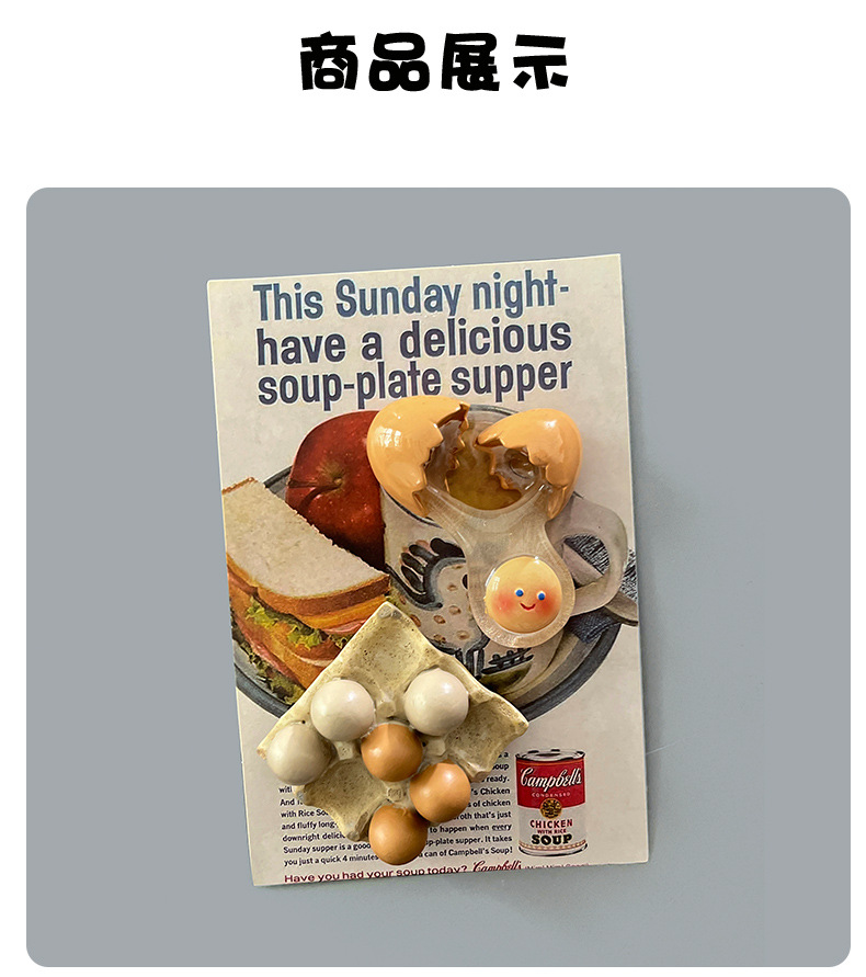 Creative cartoon egg refrigerator sticker, simulated resin magnetic sticker, message sticker, entrance door magnetic suction blackboard decoration accessories
