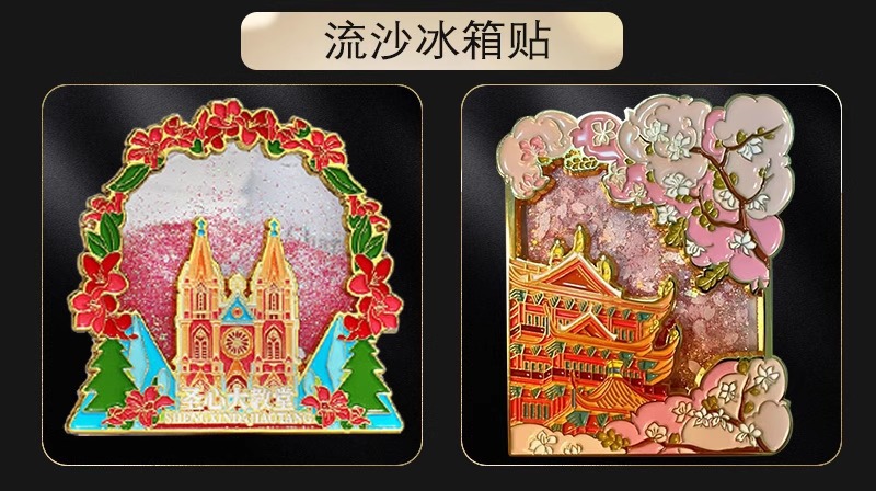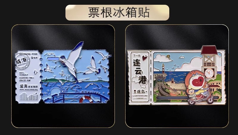 Customized metal refrigerator stickers, scenic tourist souvenirs, creative magnetic suction baking paint refrigerator stickers, urban cultural and creative customization