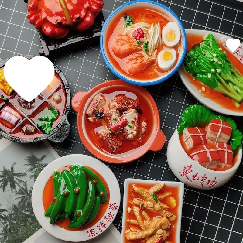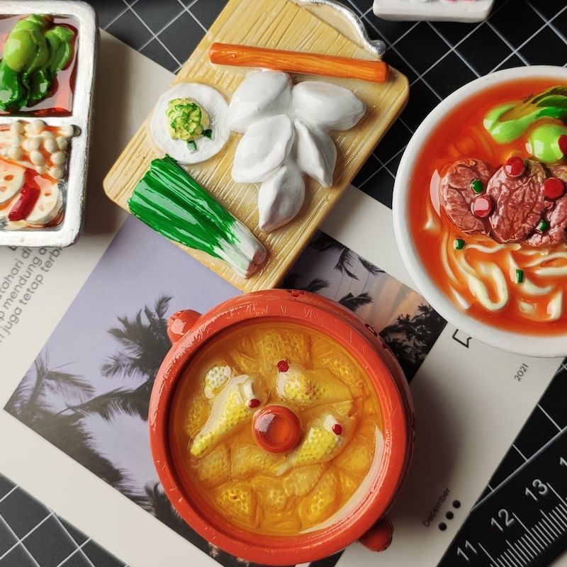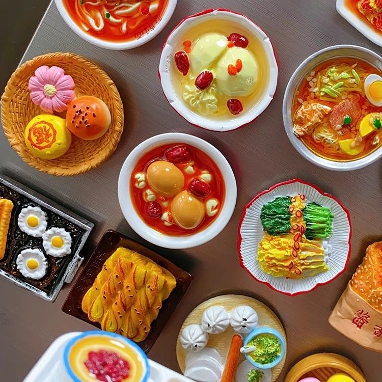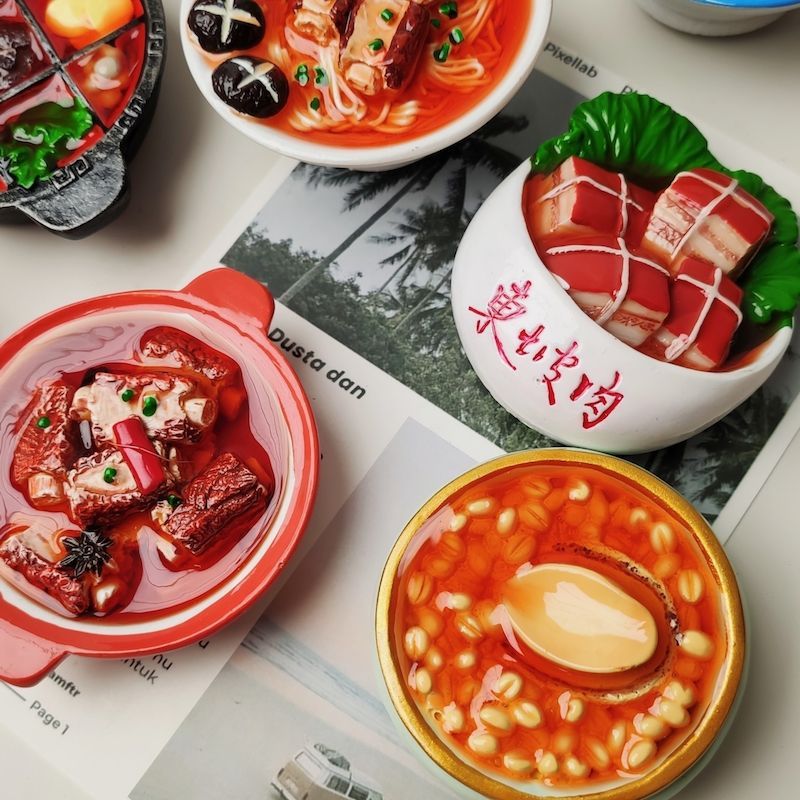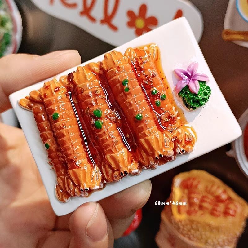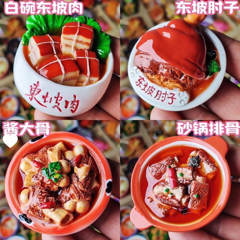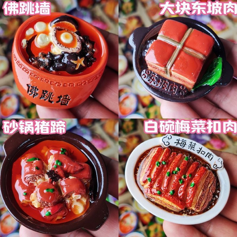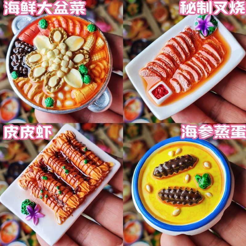 Food refrigerator stickers, local delicacies, dishes, three-dimensional resin desserts, snacks, magnetic decorations, hot selling direct selling manufacturers
