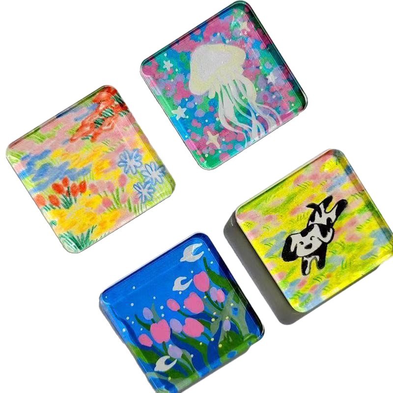 自制手工冰箱贴透明ins正方形带磁片高透亚克力diy材料包高颜值