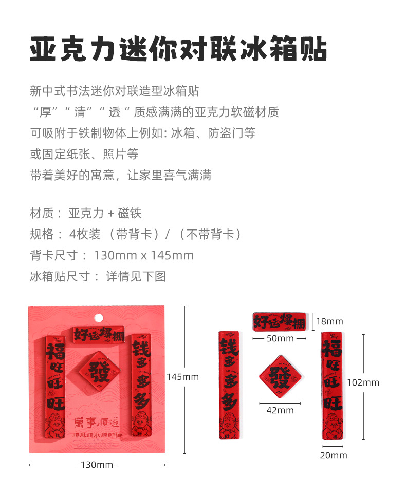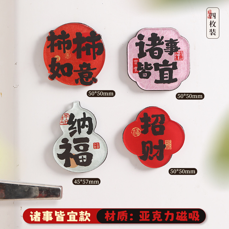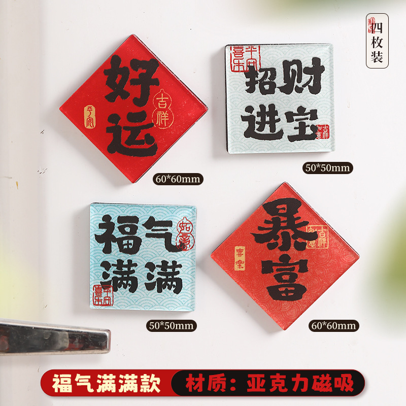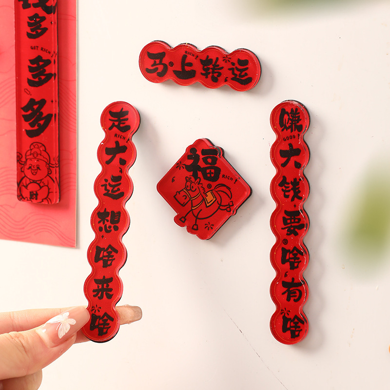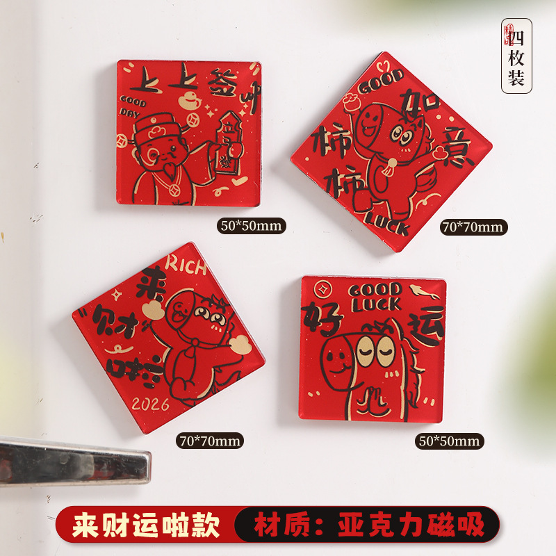 Mini acrylic magnetic refrigerator sticker 2026 New Year holiday new China-Chic magnetic sticker New Year decoration batch